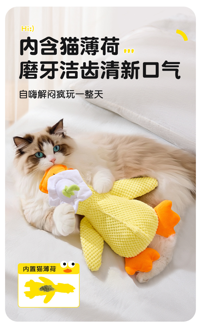 작은 노란색 오리 장난감, 물림 방지 및 소리가 나는 고양이 장난감, 자기 자극 및 지루함 해소 도구, 에너지 소비 애완 고양이 장난감스토어 가기