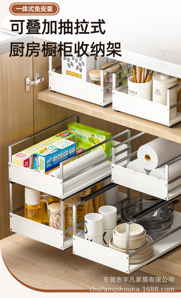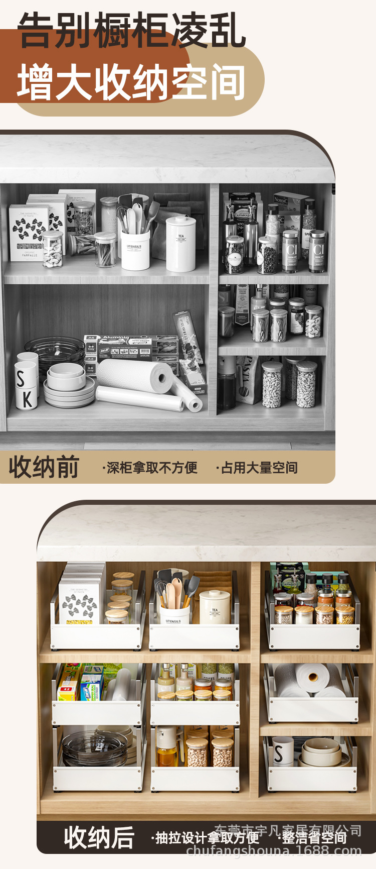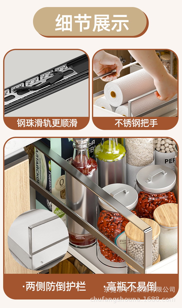 주방 다기능 슬라이딩 수납 선반 다층 조리기구 선반 양념병 보관 선반 캐비닛 서랍 바구니