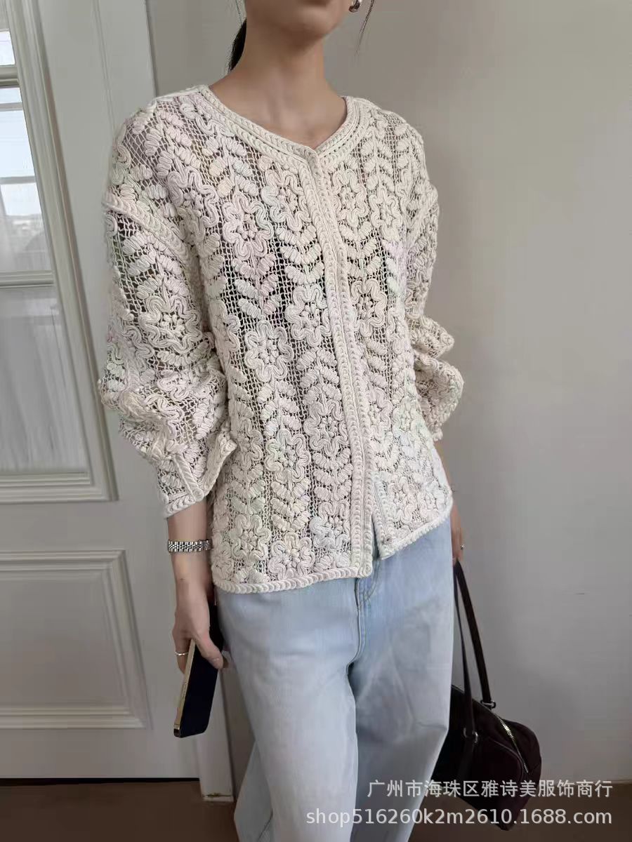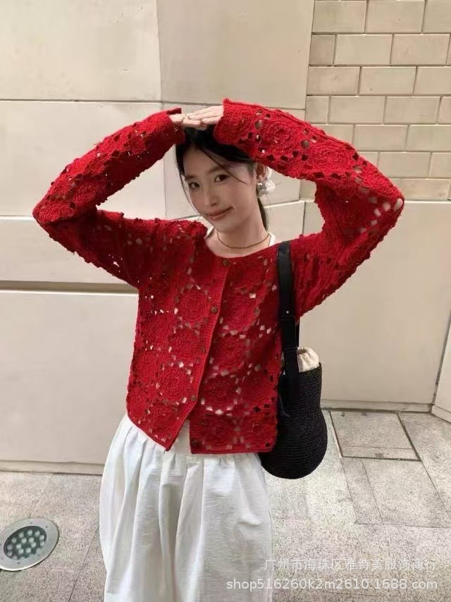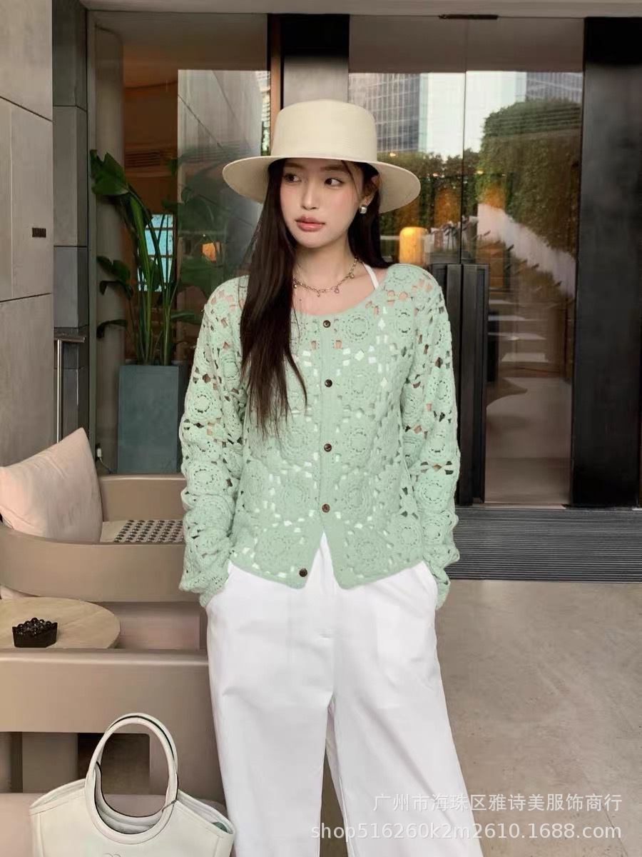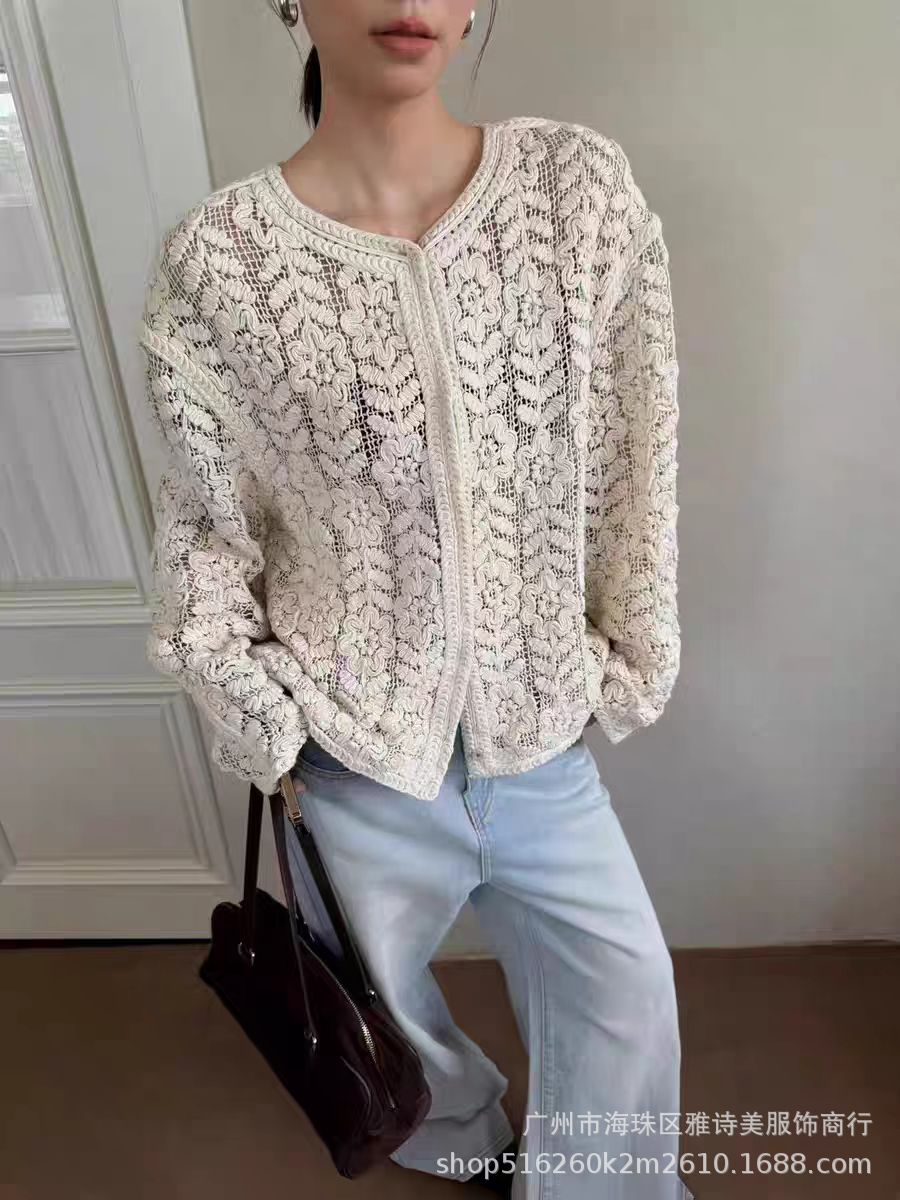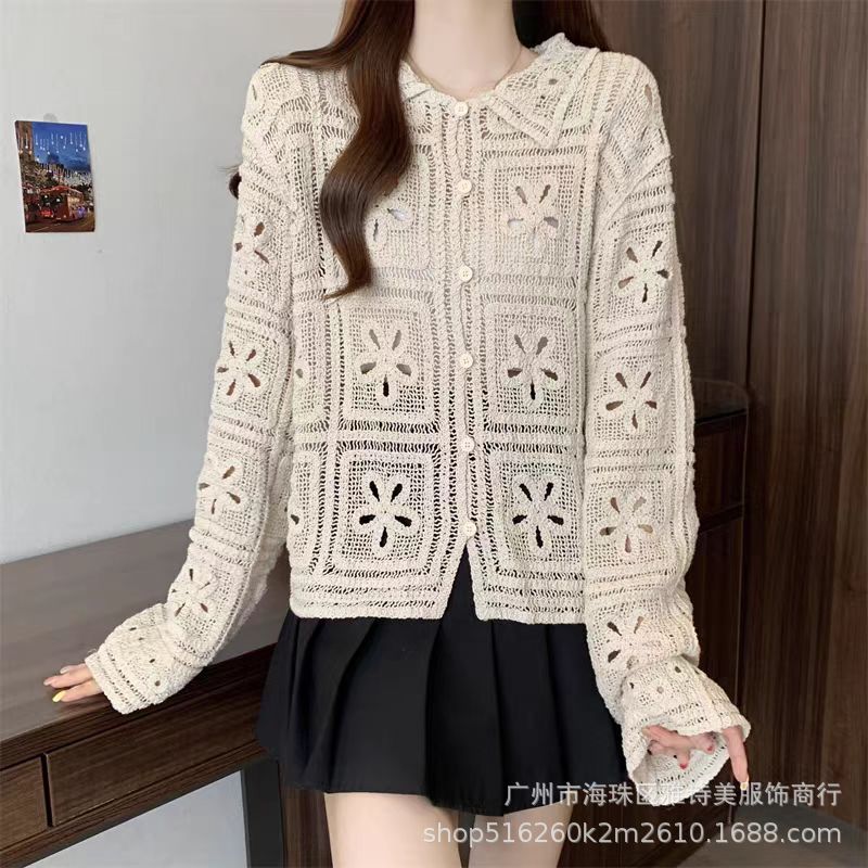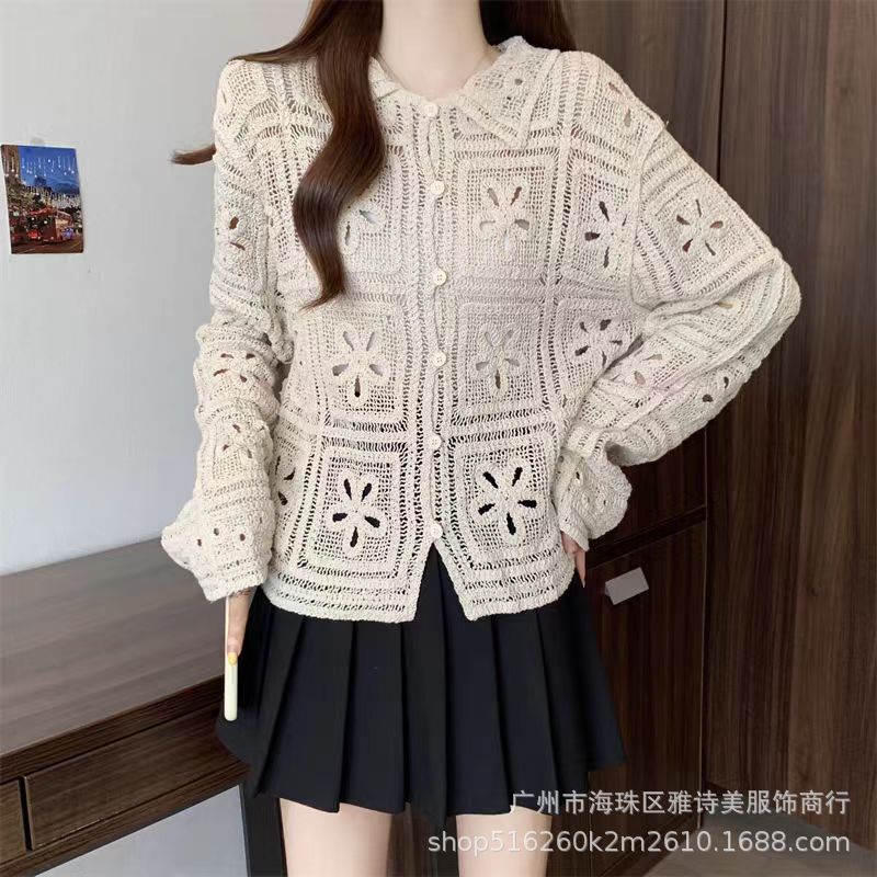 한국 스타일 유행 느슨한 슬리밍 중공 크로 셰 뜨개질 스웨터 여성의 새로운 스타일 서양식 독특한 세련된 카디건 긴 소매 탑