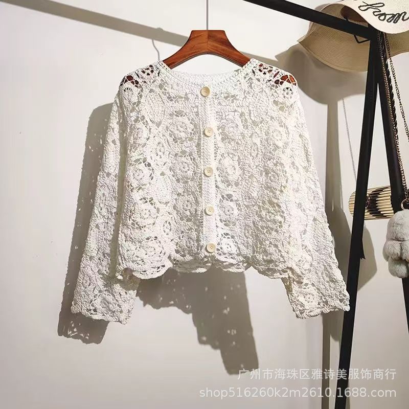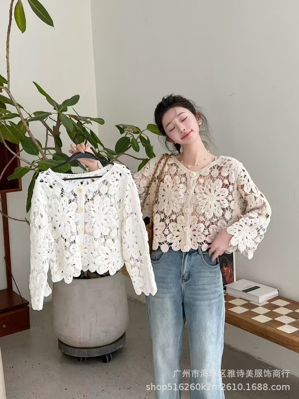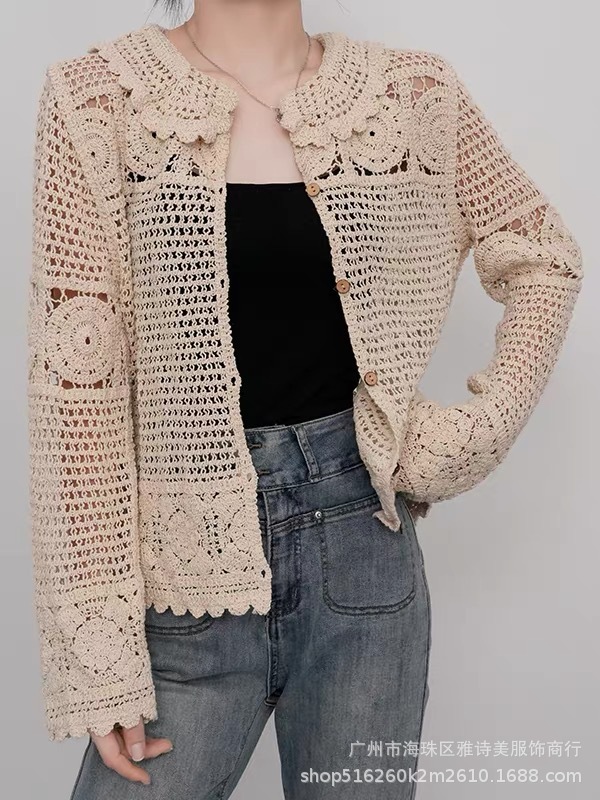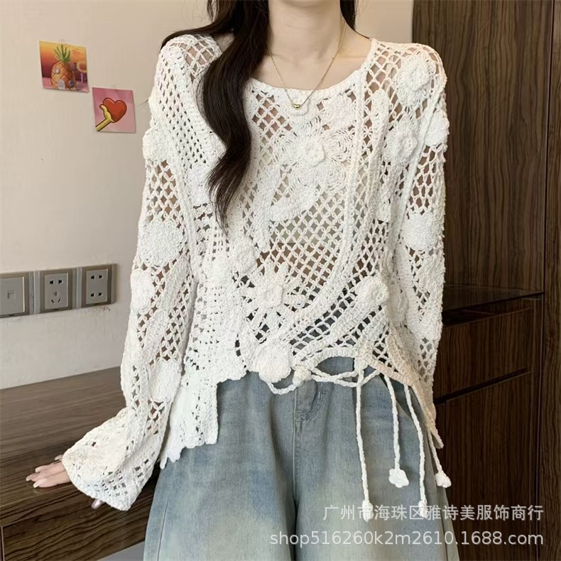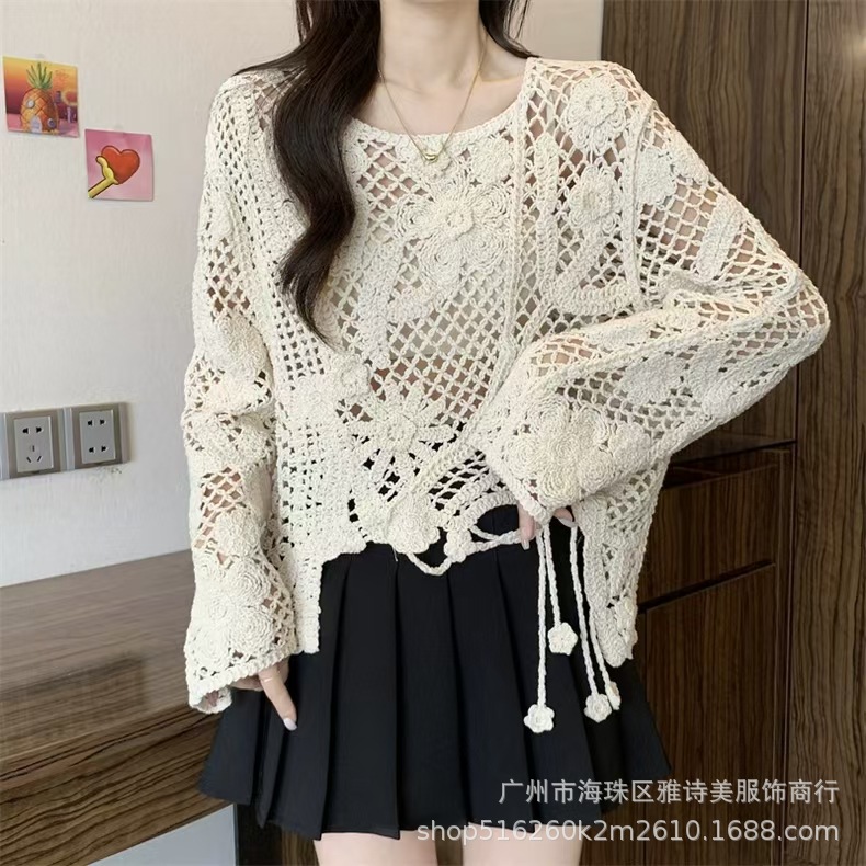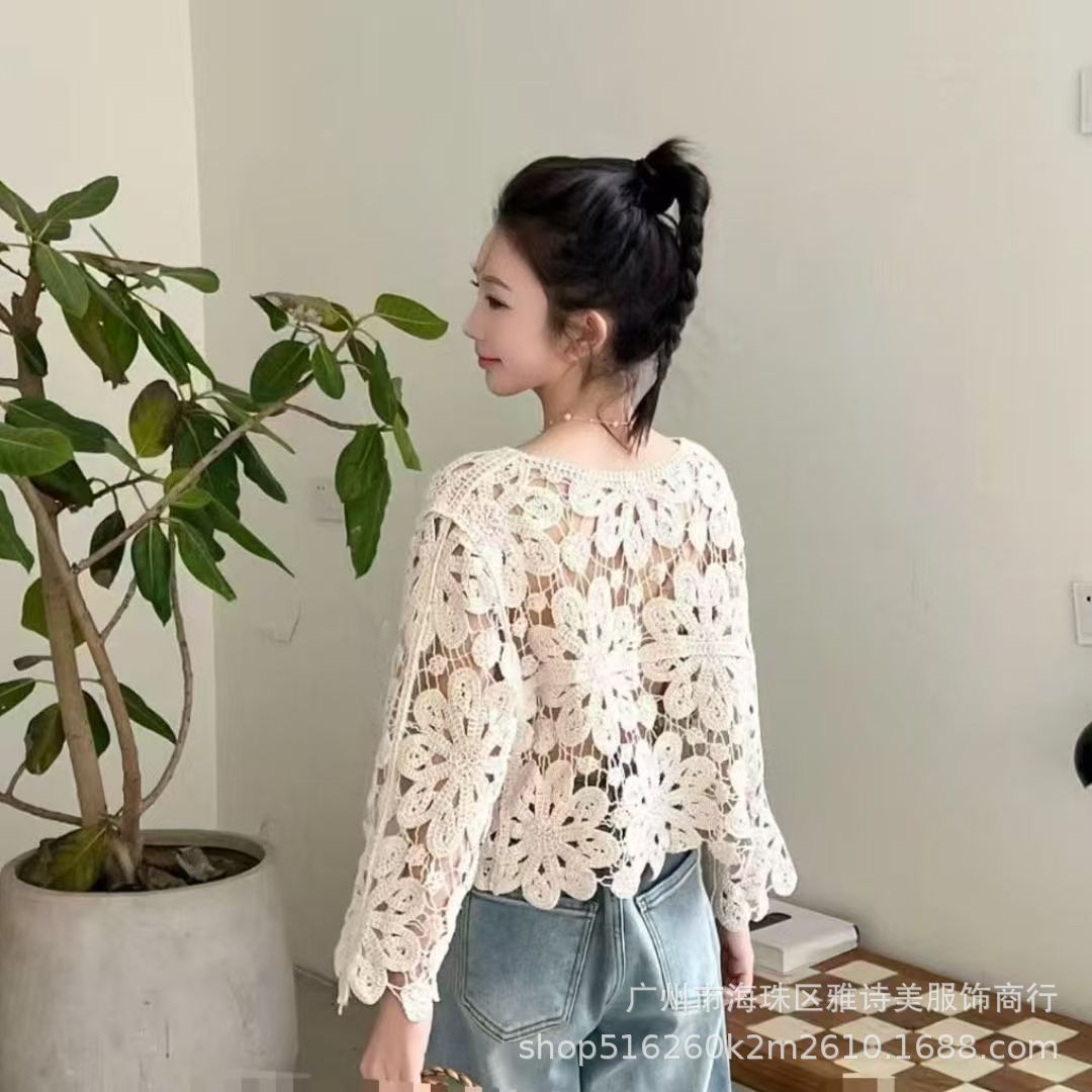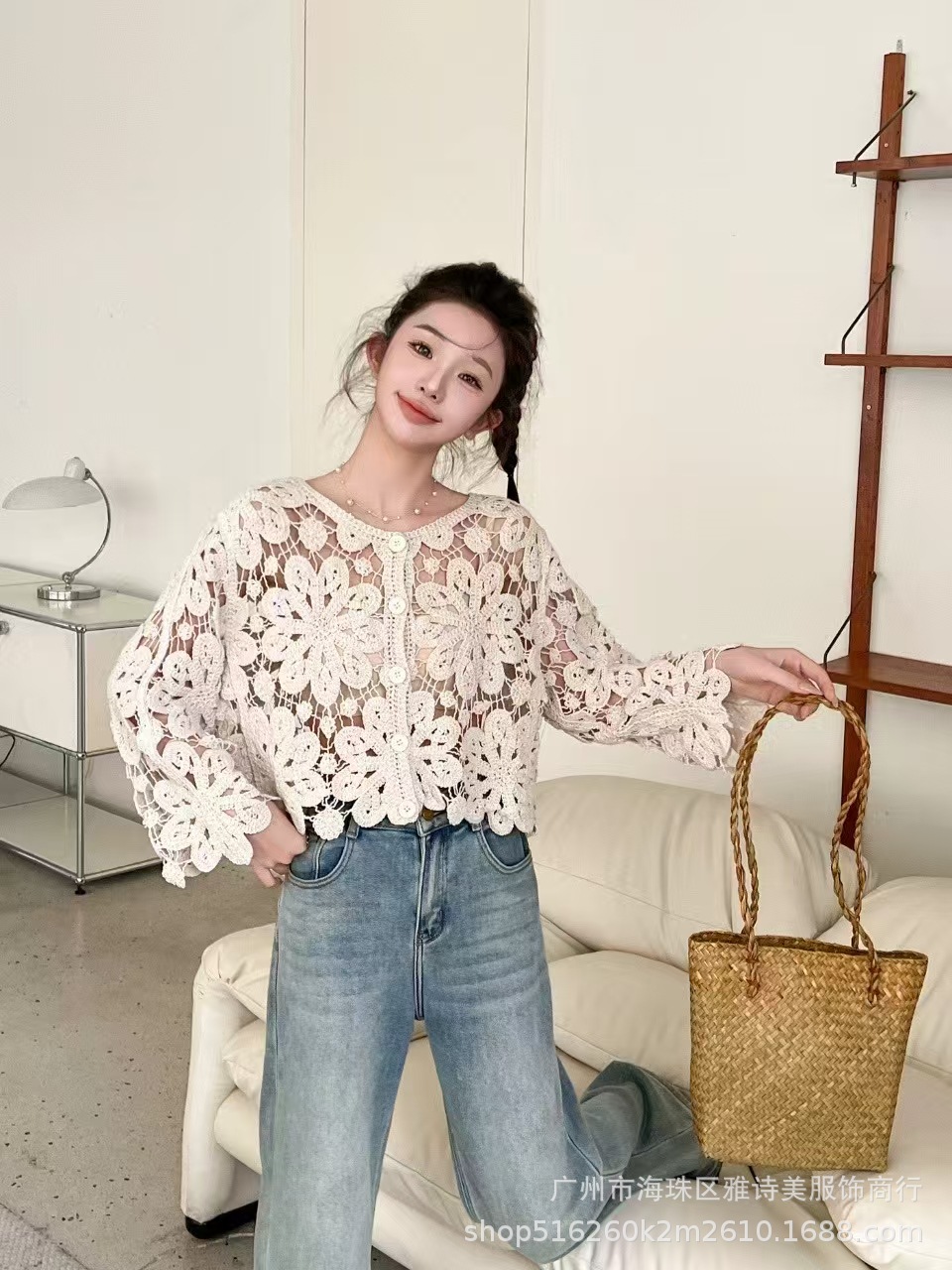 한국 스타일 유행 느슨한 슬리밍 중공 크로 셰 뜨개질 스웨터 여성의 새로운 스타일 서양식 독특한 세련된 카디건 긴 소매 탑