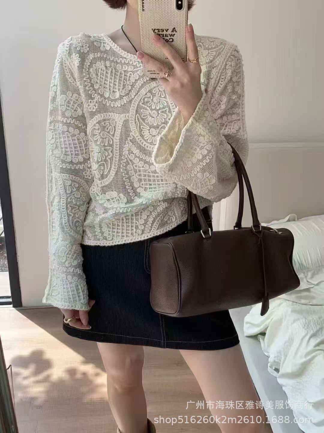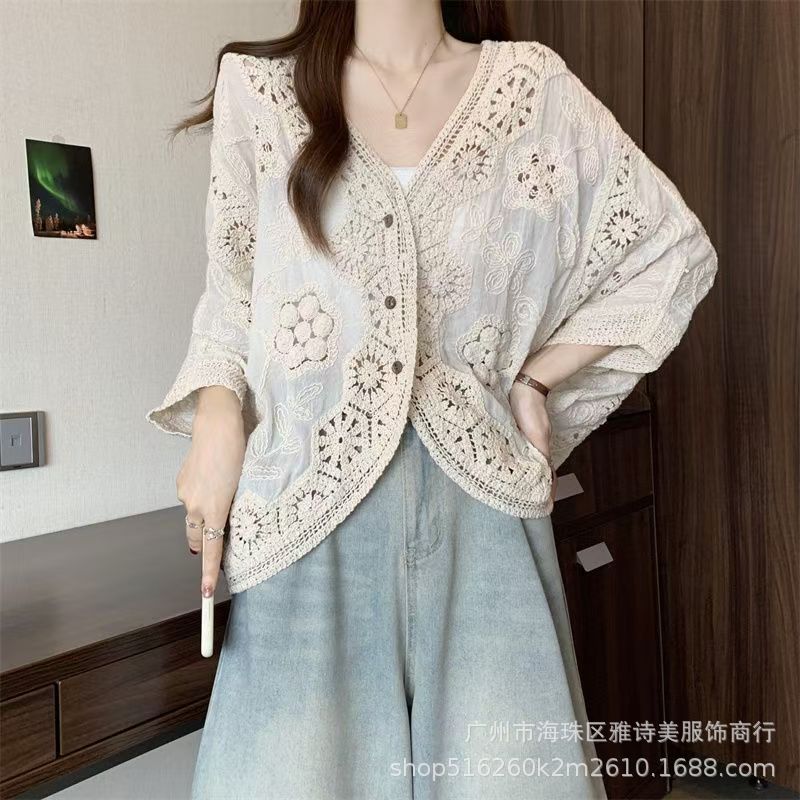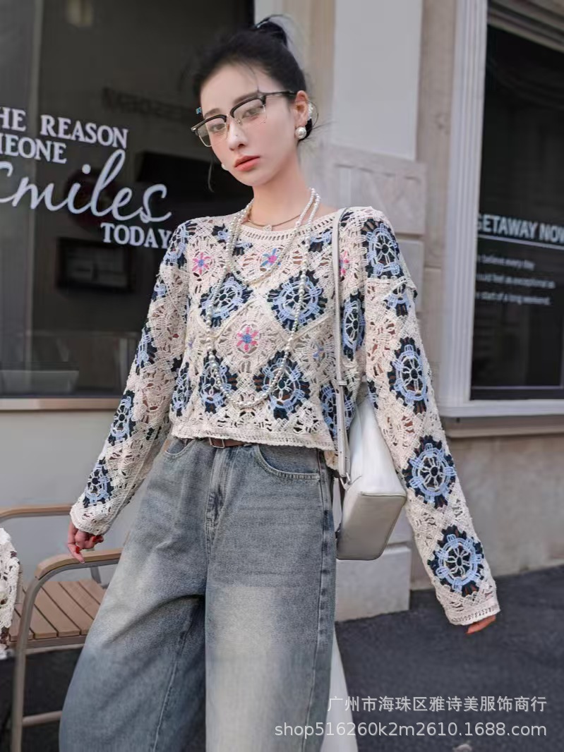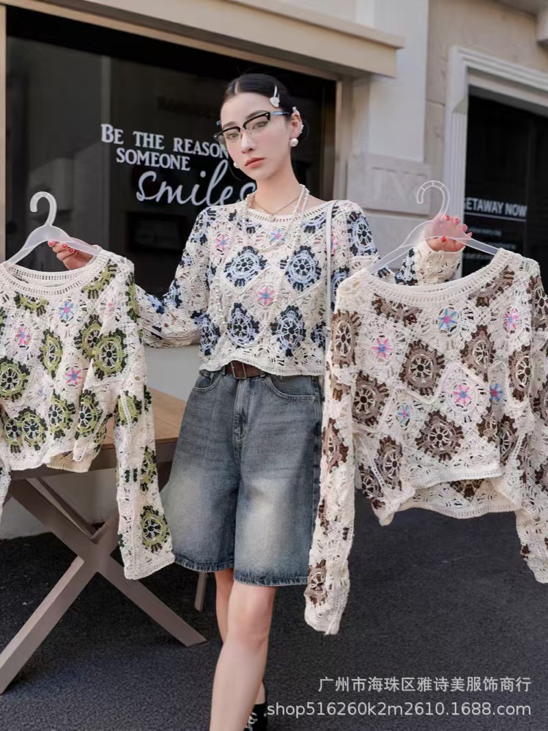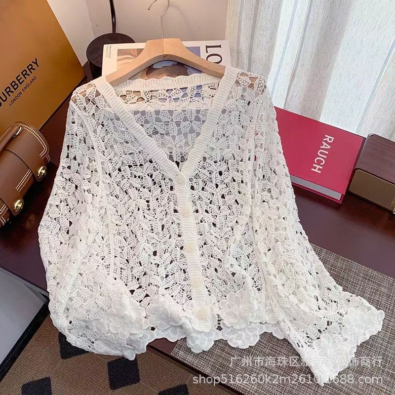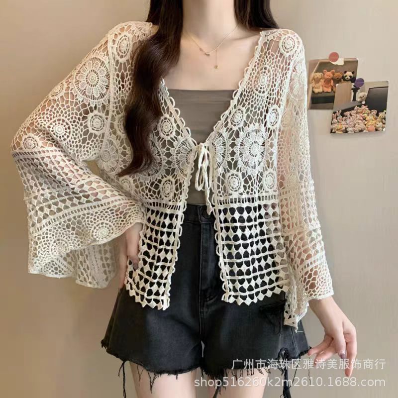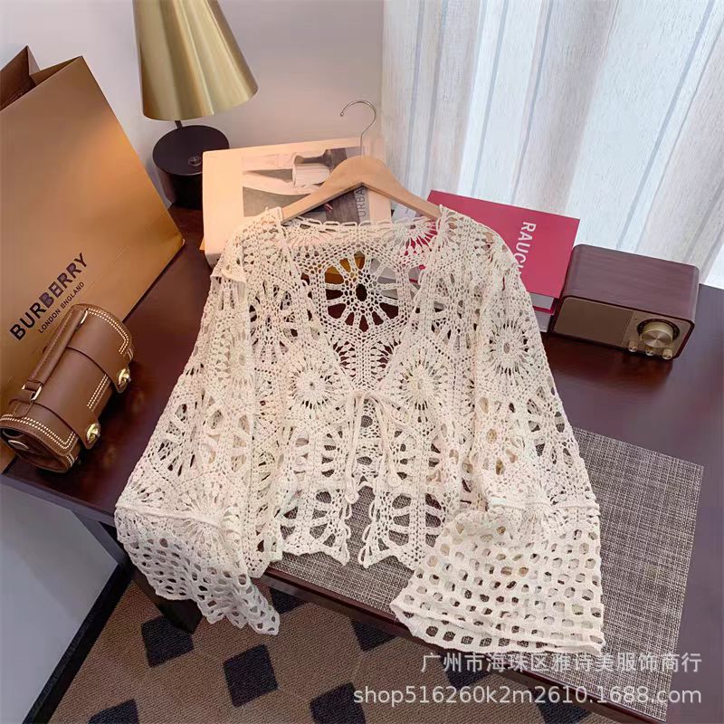 한국 스타일 유행 느슨한 슬리밍 중공 크로 셰 뜨개질 스웨터 여성의 새로운 스타일 서양식 독특한 세련된 카디건 긴 소매 탑