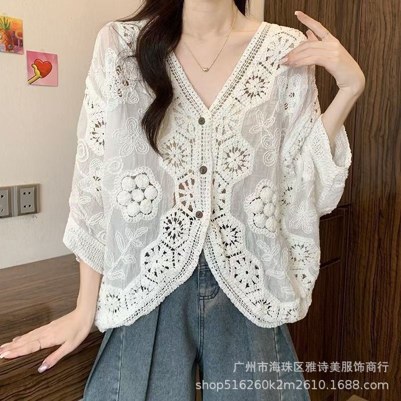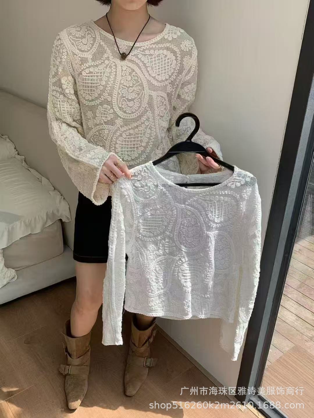 한국 스타일 유행 느슨한 슬리밍 중공 크로 셰 뜨개질 스웨터 여성의 새로운 스타일 서양식 독특한 세련된 카디건 긴 소매 탑스토어 가기