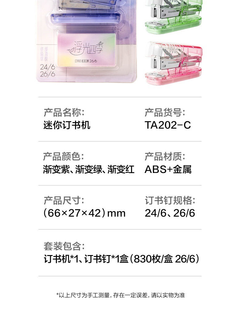 델리 TA202-C 학생 사무실용 미니 스테이플러 미니 휴대용 소형 스테이플러 고급 문구스토어 가기