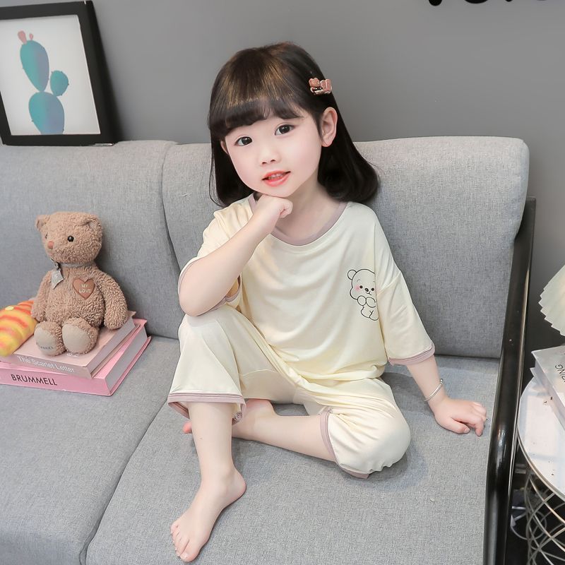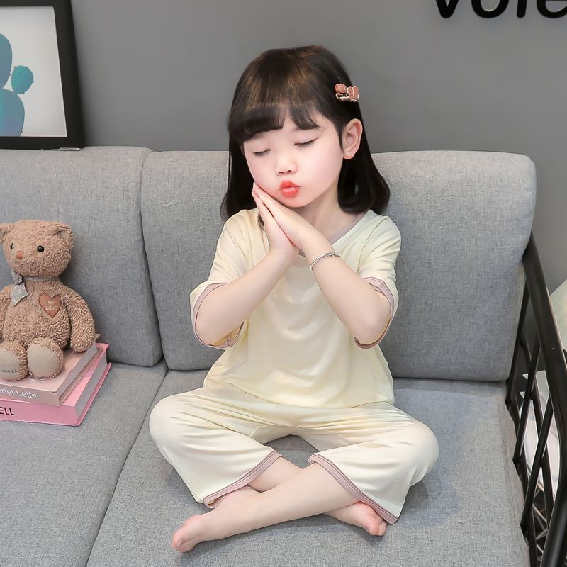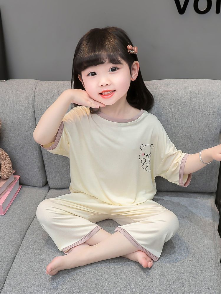 여아용 라운드 넥 반팔 잠옷, 여름용 소년용 에어컨 의류, 피부 친화적인 얇고 시원한 모달 홈웨어 세트