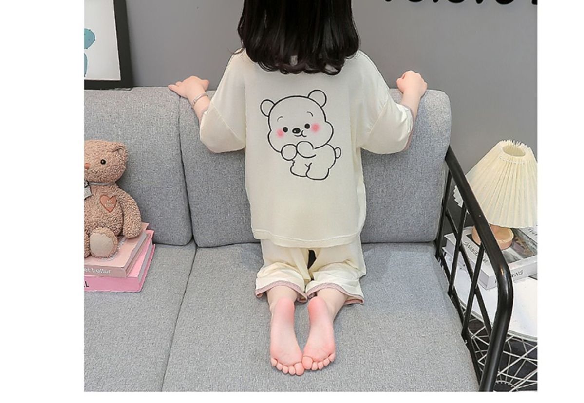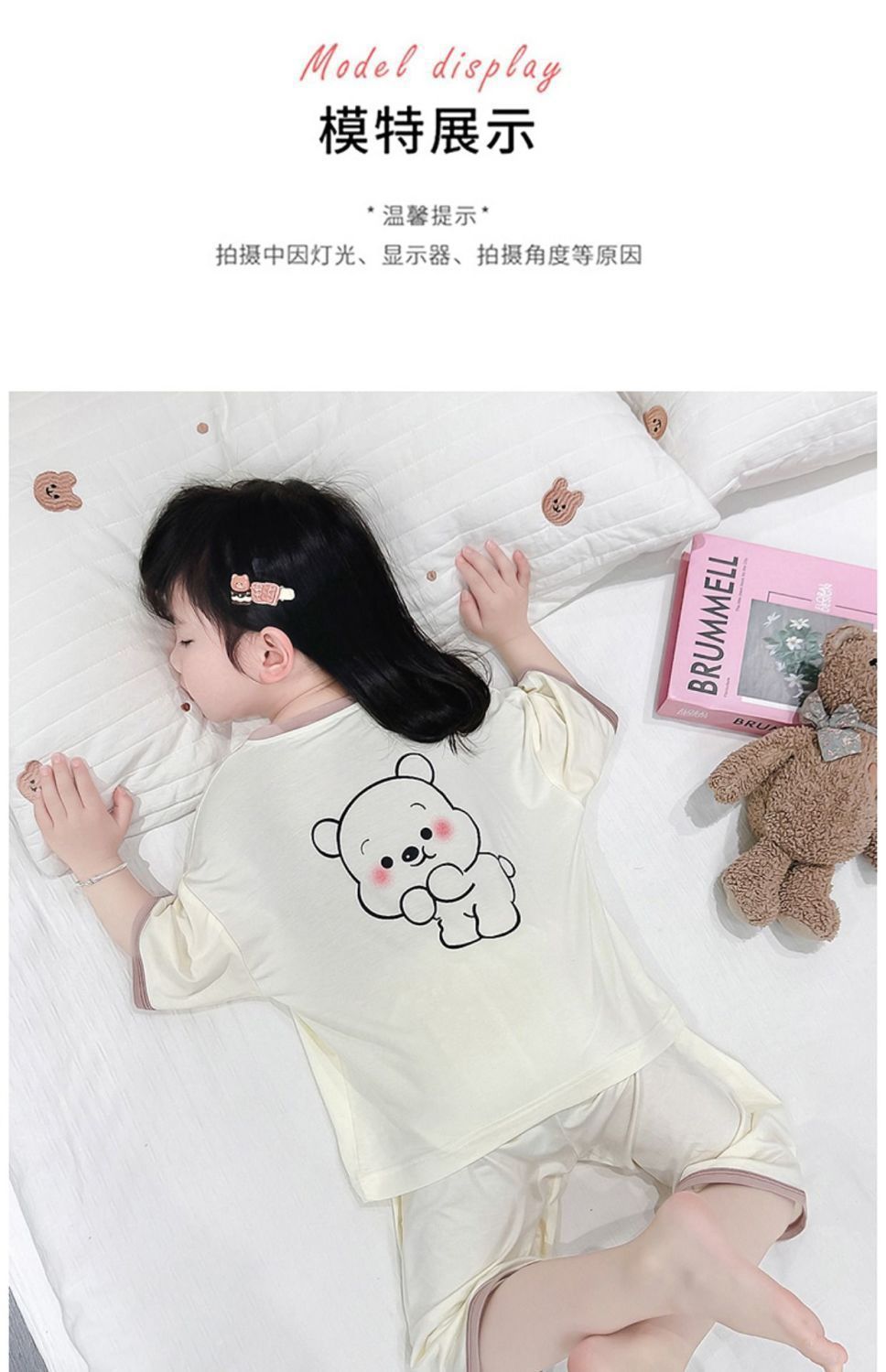 여아용 라운드 넥 반팔 잠옷, 여름용 소년용 에어컨 의류, 피부 친화적인 얇고 시원한 모달 홈웨어 세트스토어 가기