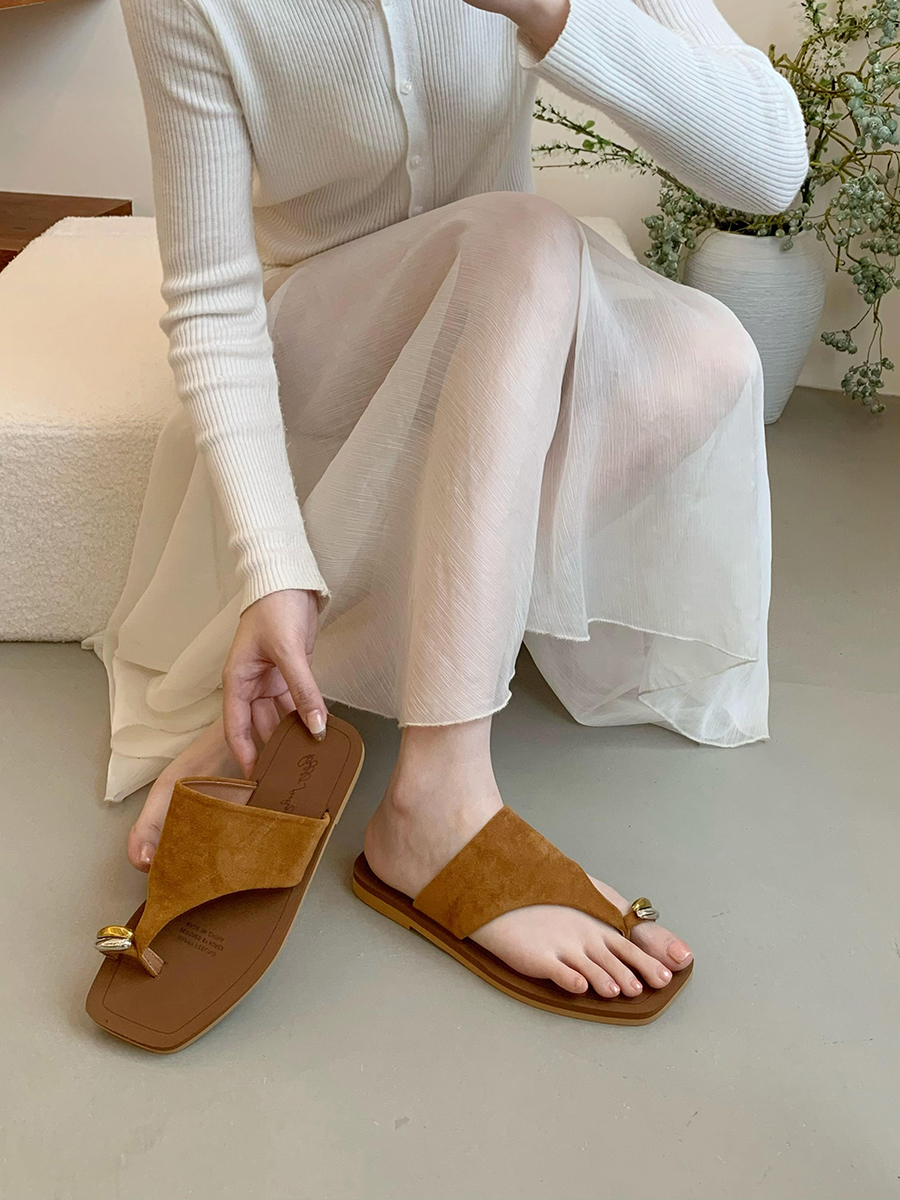 여름 2025 여성을 위한 플랫 슬리퍼 새로운 프랑스 패션 캐주얼 슬립온 휴가 비치 샌들