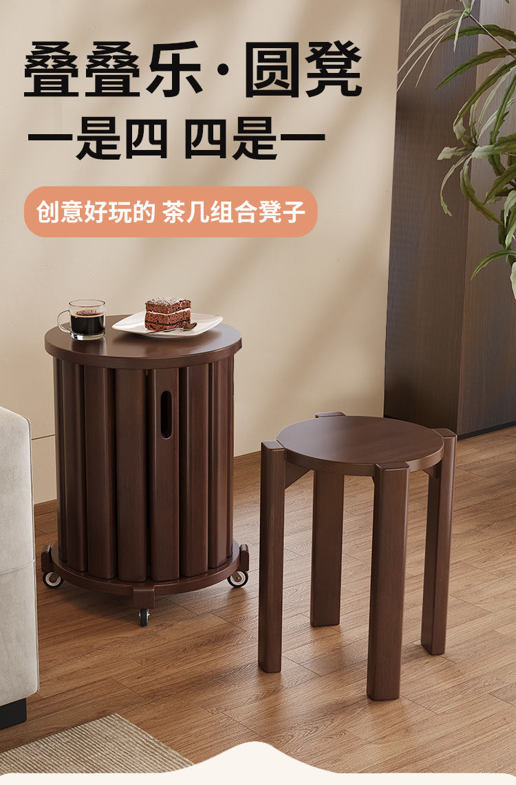 도매 Jenga 의자 쌓을 수있는 조합 식탁 벤치 홈 거실 단단한 나무 패턴 라운드 의자 예비 저장
