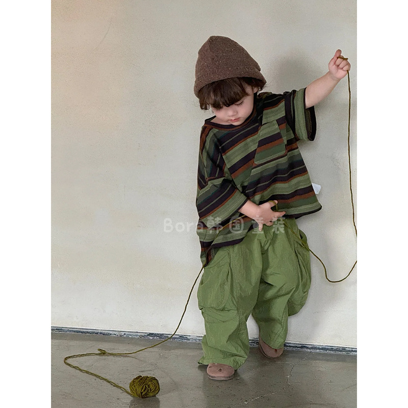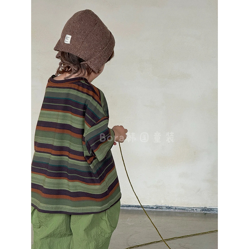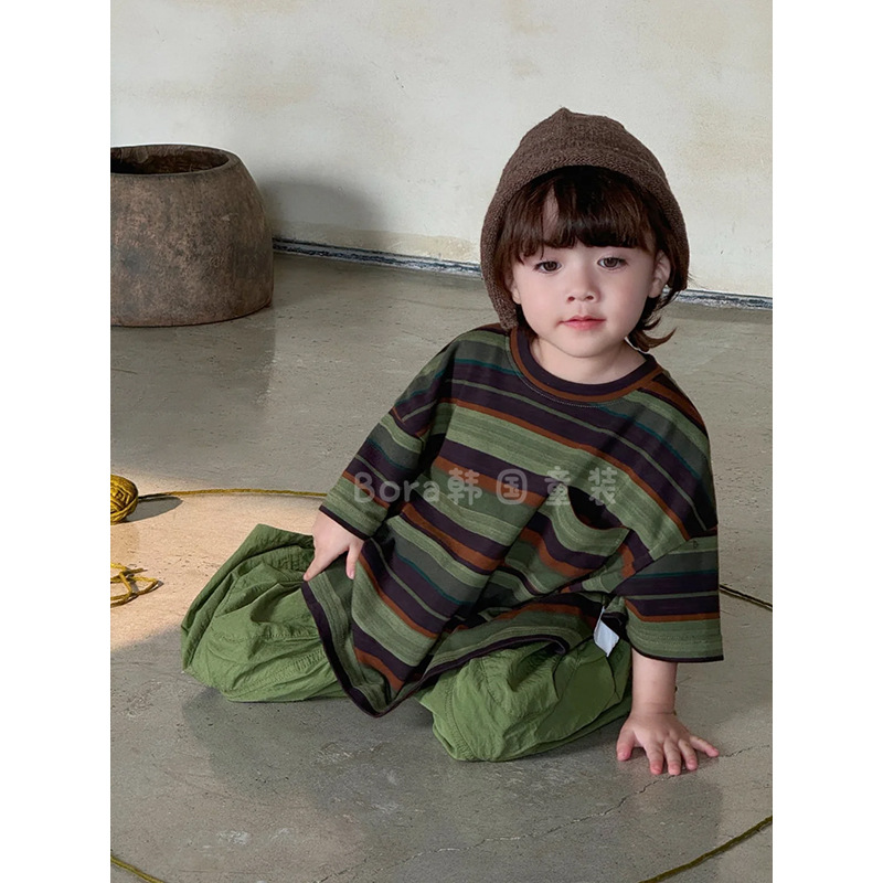 소년 반팔 티셔츠 어린이 봄과 여름 2025 뉴 스트라이프 루즈 슈퍼 쿨베이스 셔츠 아기 소녀 탑 트렌디 3