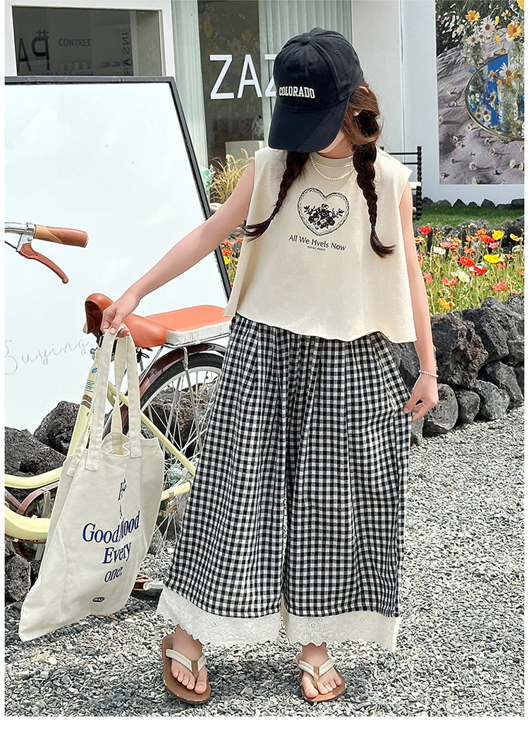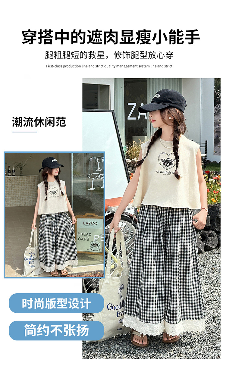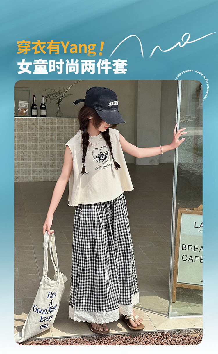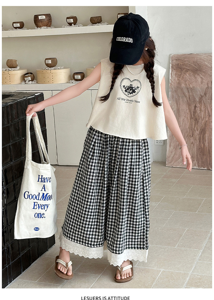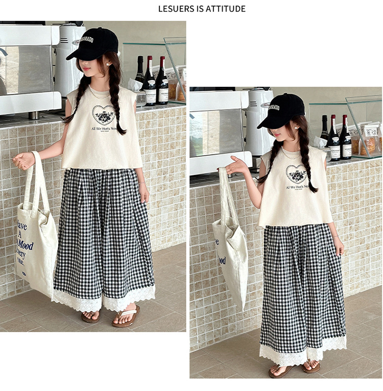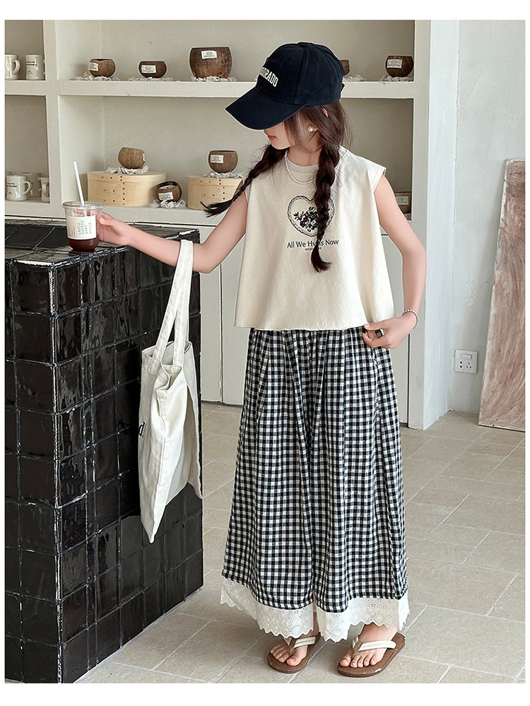 여자 민소매 조끼 세트 2025 년 여름 신상 소녀 한국식 서양식 레이스 격자 무늬 컬롯 투피스 세트