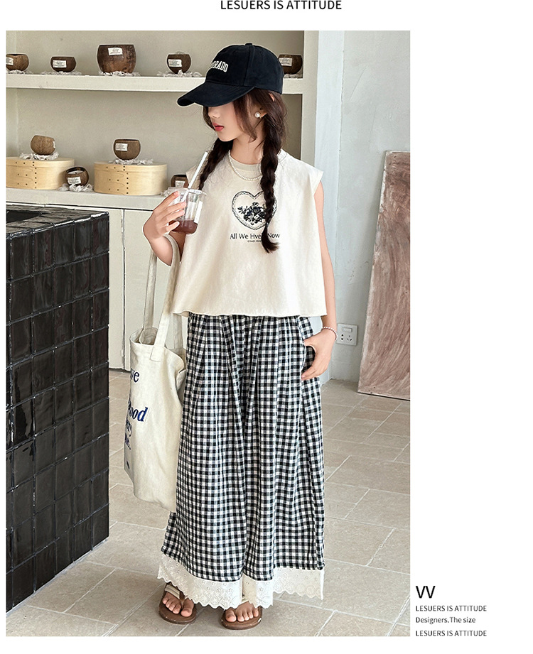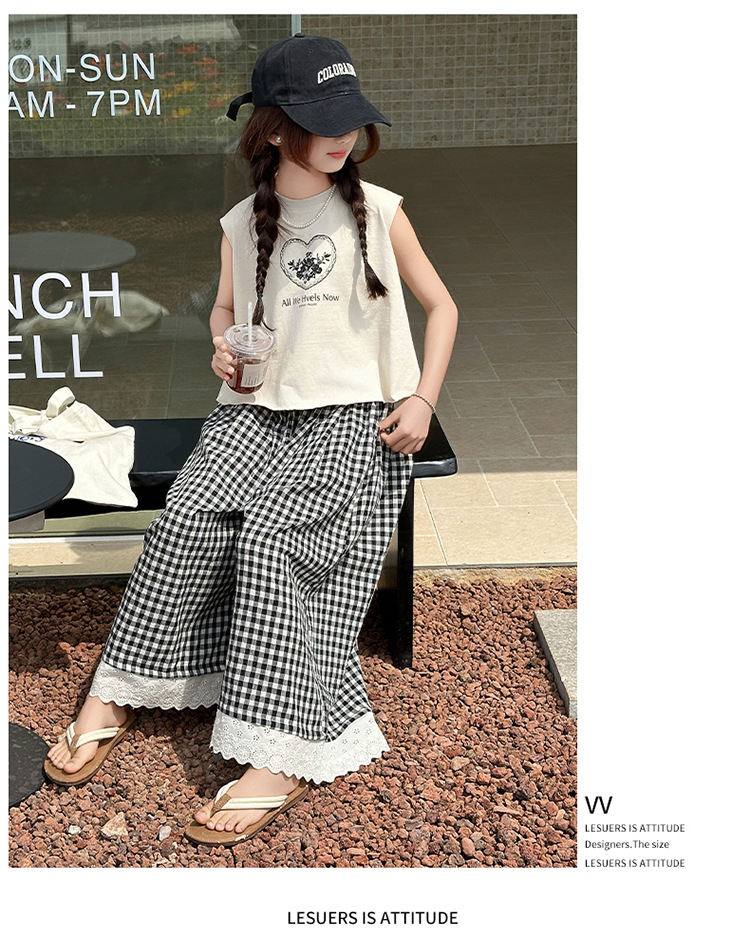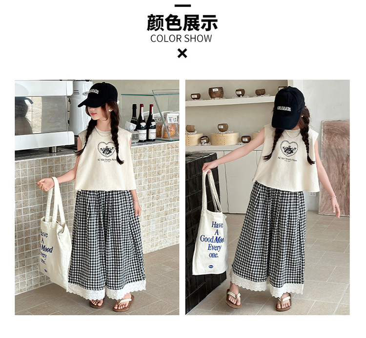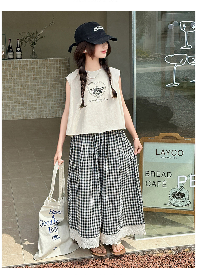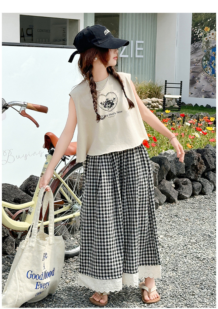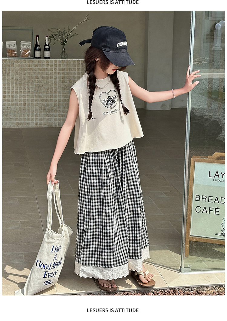 여자 민소매 조끼 세트 2025 년 여름 신상 소녀 한국식 서양식 레이스 격자 무늬 컬롯 투피스 세트