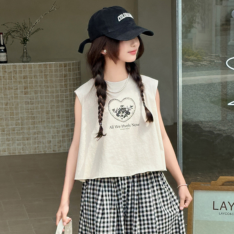 여자 민소매 조끼 세트 2025 년 여름 신상 소녀 한국식 서양식 레이스 격자 무늬 컬롯 투피스 세트스토어 가기