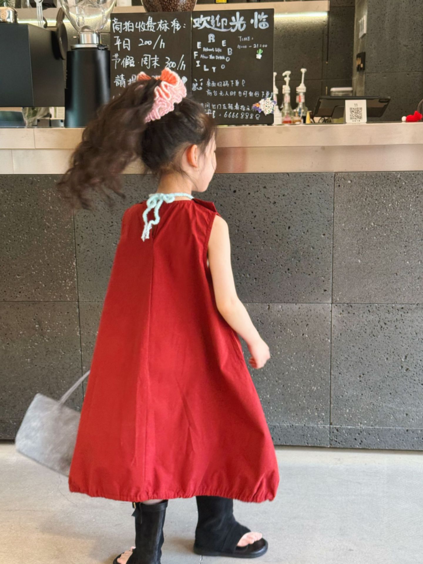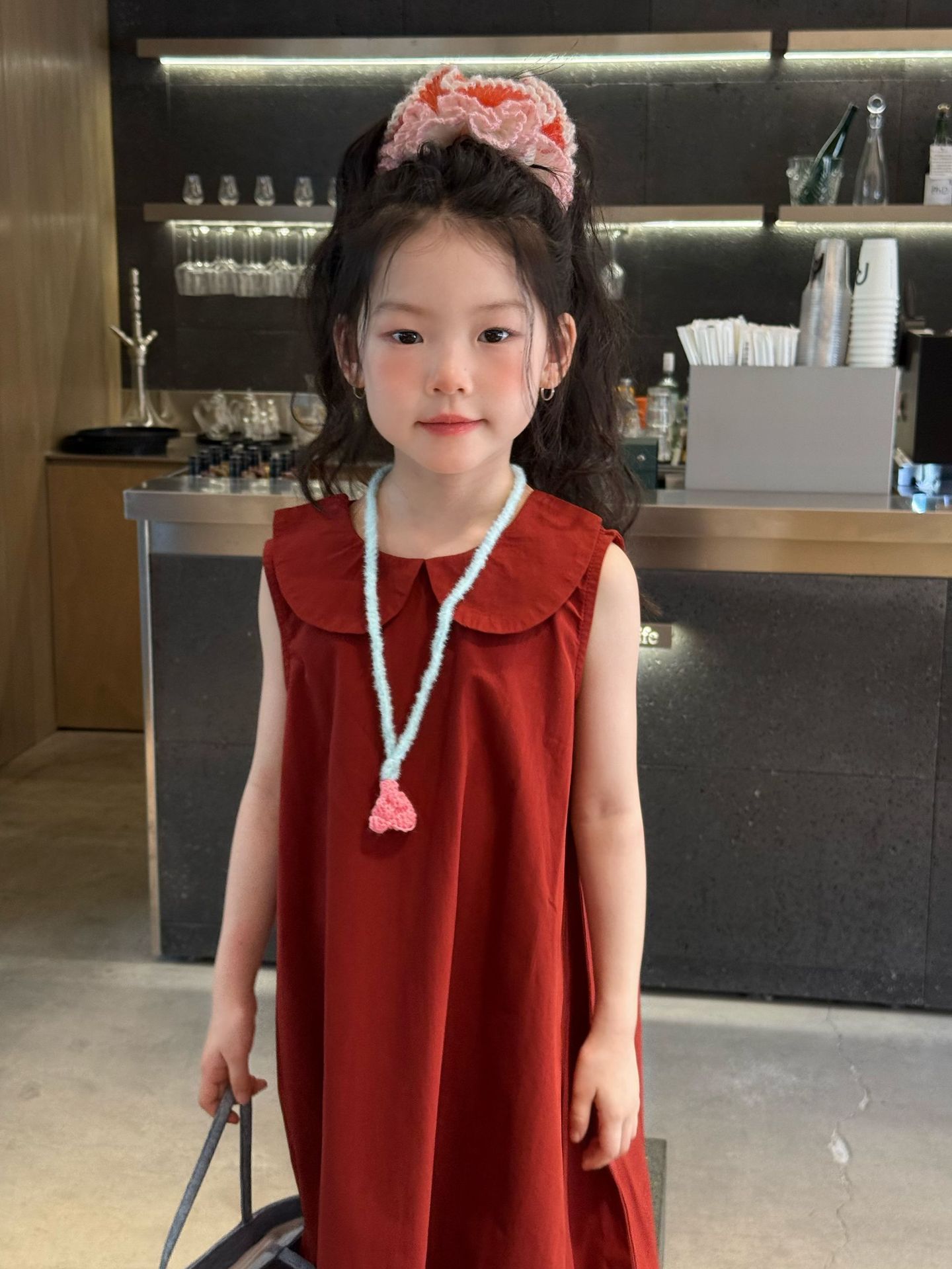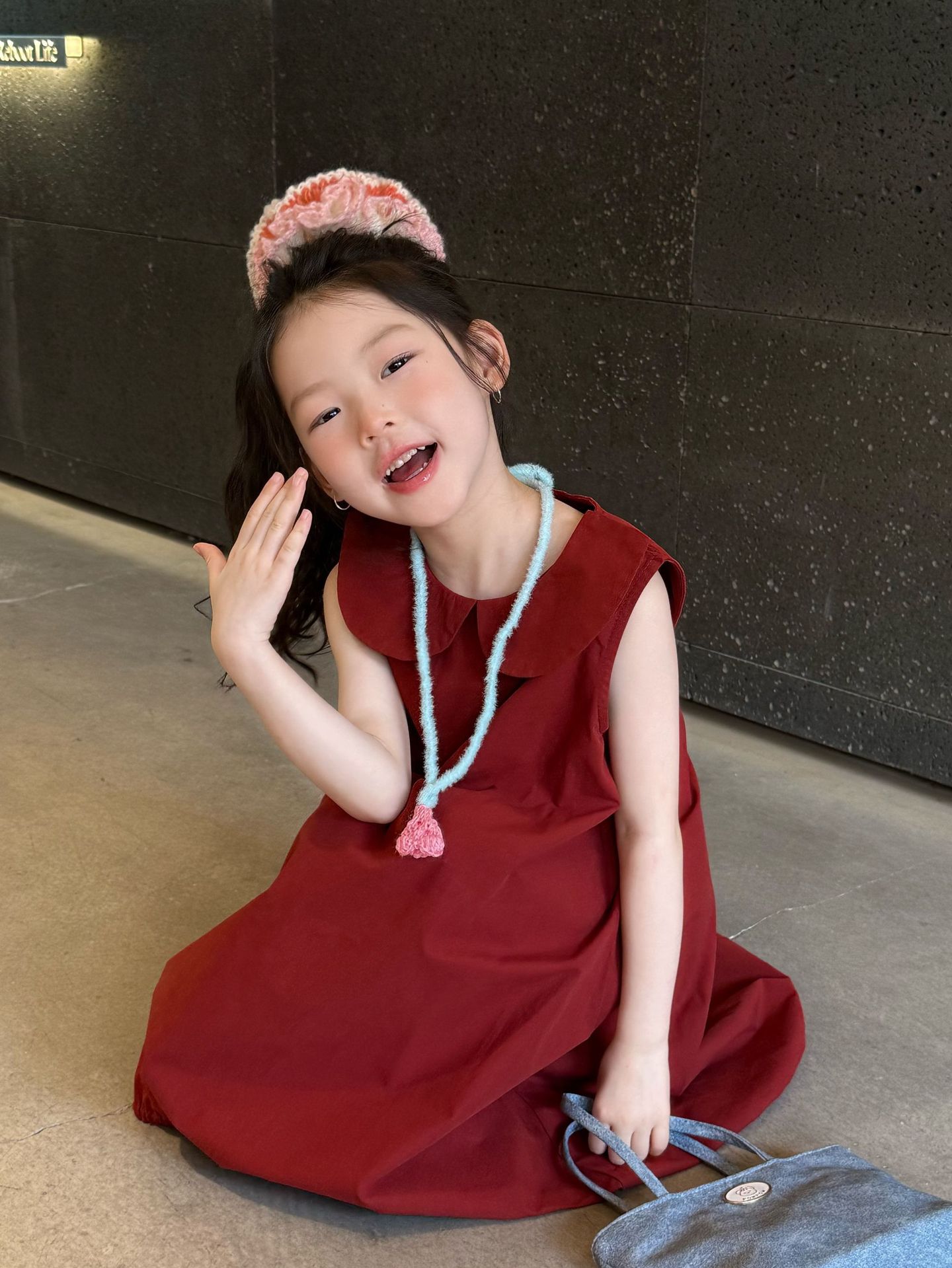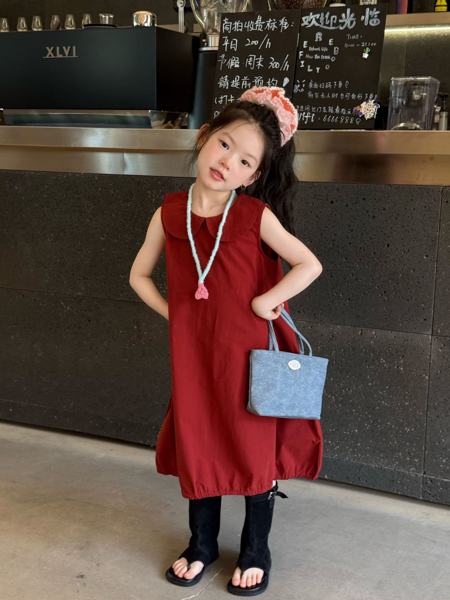 2025 새로운 여름 아동 의류 한국 스타일 아동 의류 소녀 인형 칼라 민소매 솔리드 컬러 드레스 여름 스커트