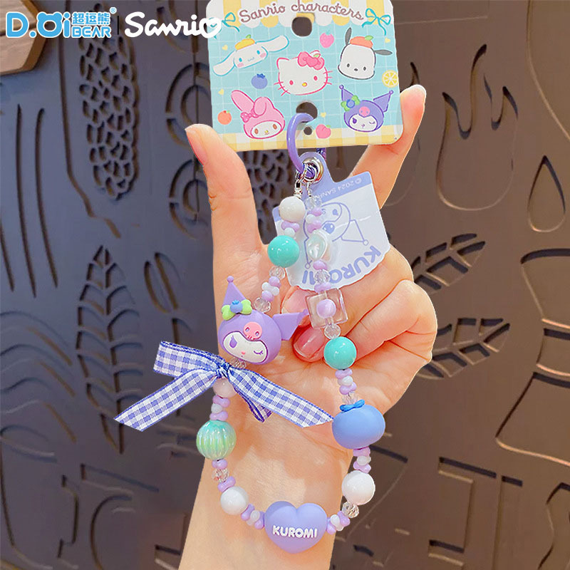 • 정품 산리오 쿠로미 시리즈 키체인 - 그레이 핑크 비즈 휴대폰 체인