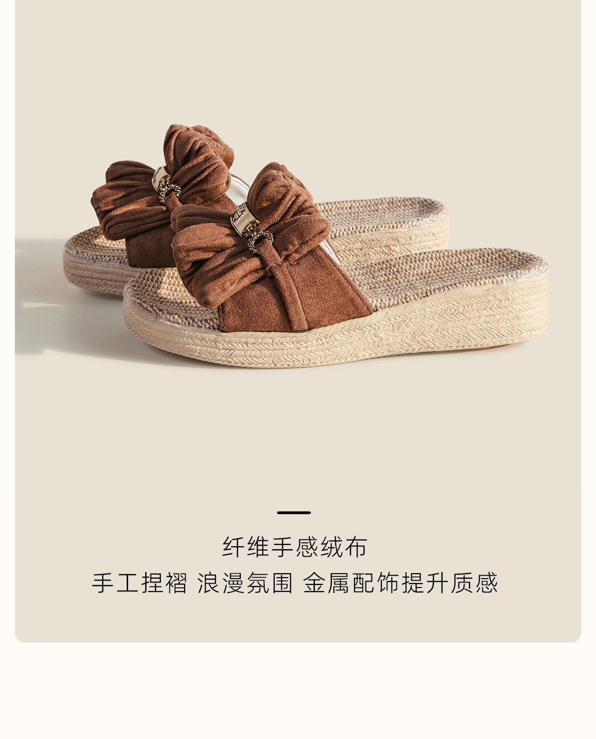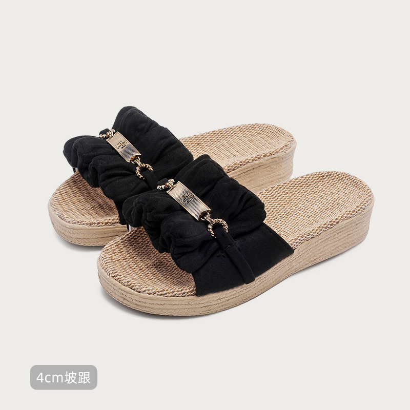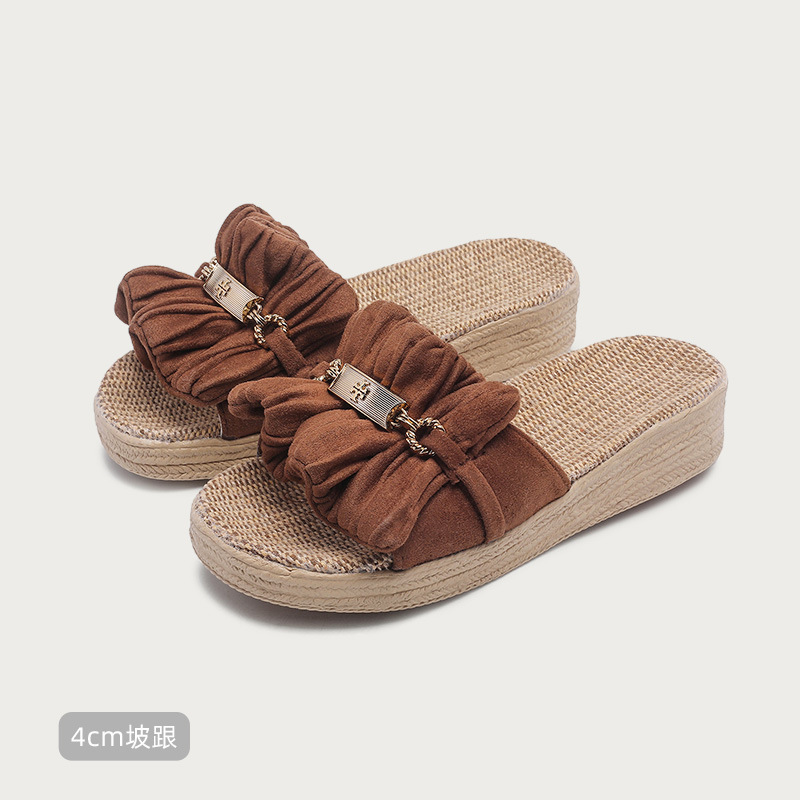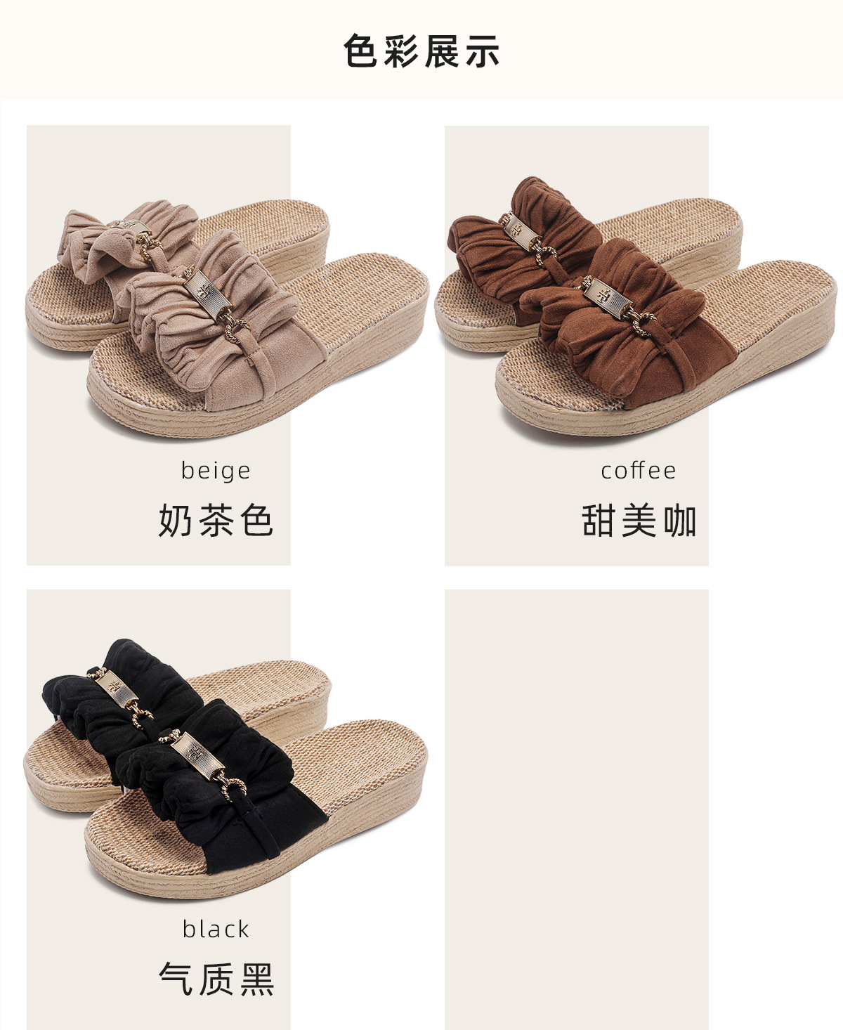 여름 달콤하고 우아한 패브릭 여성용 린넨 샌들, 여성용 두꺼운 밑창 웨지 홈 슈즈, 미끄럼 방지, 가볍고 착용 가능스토어 가기