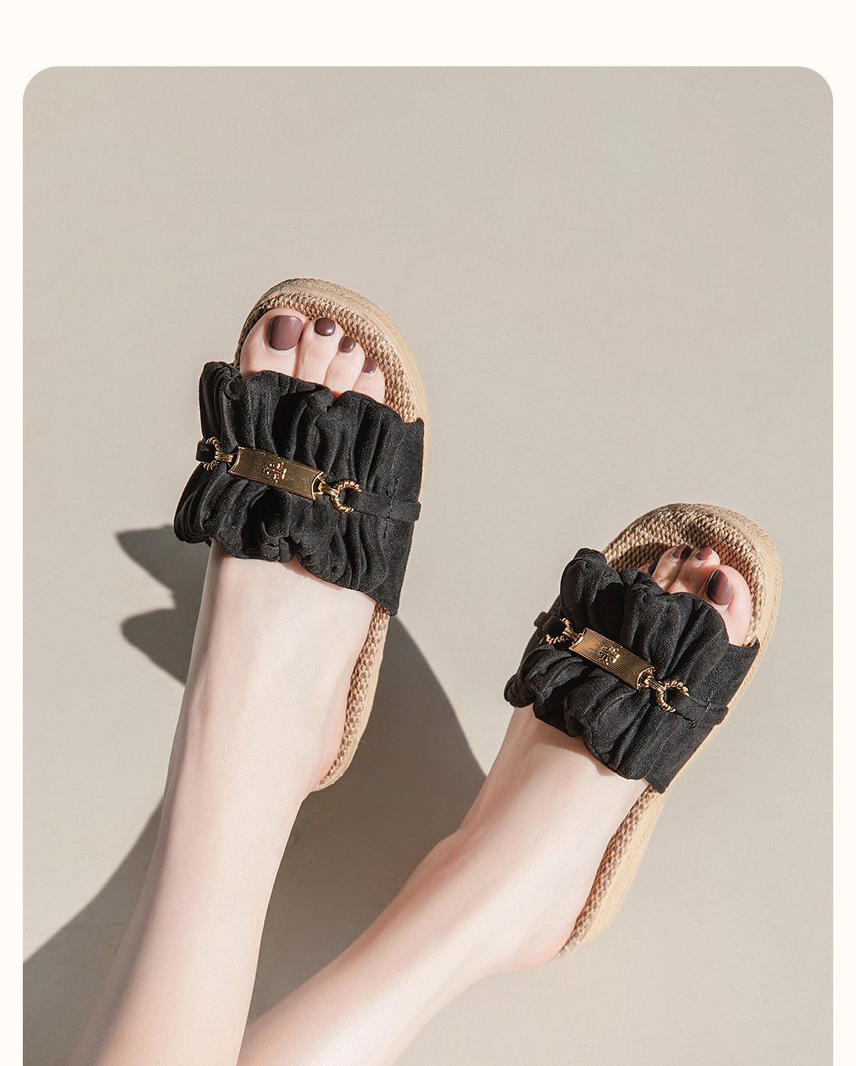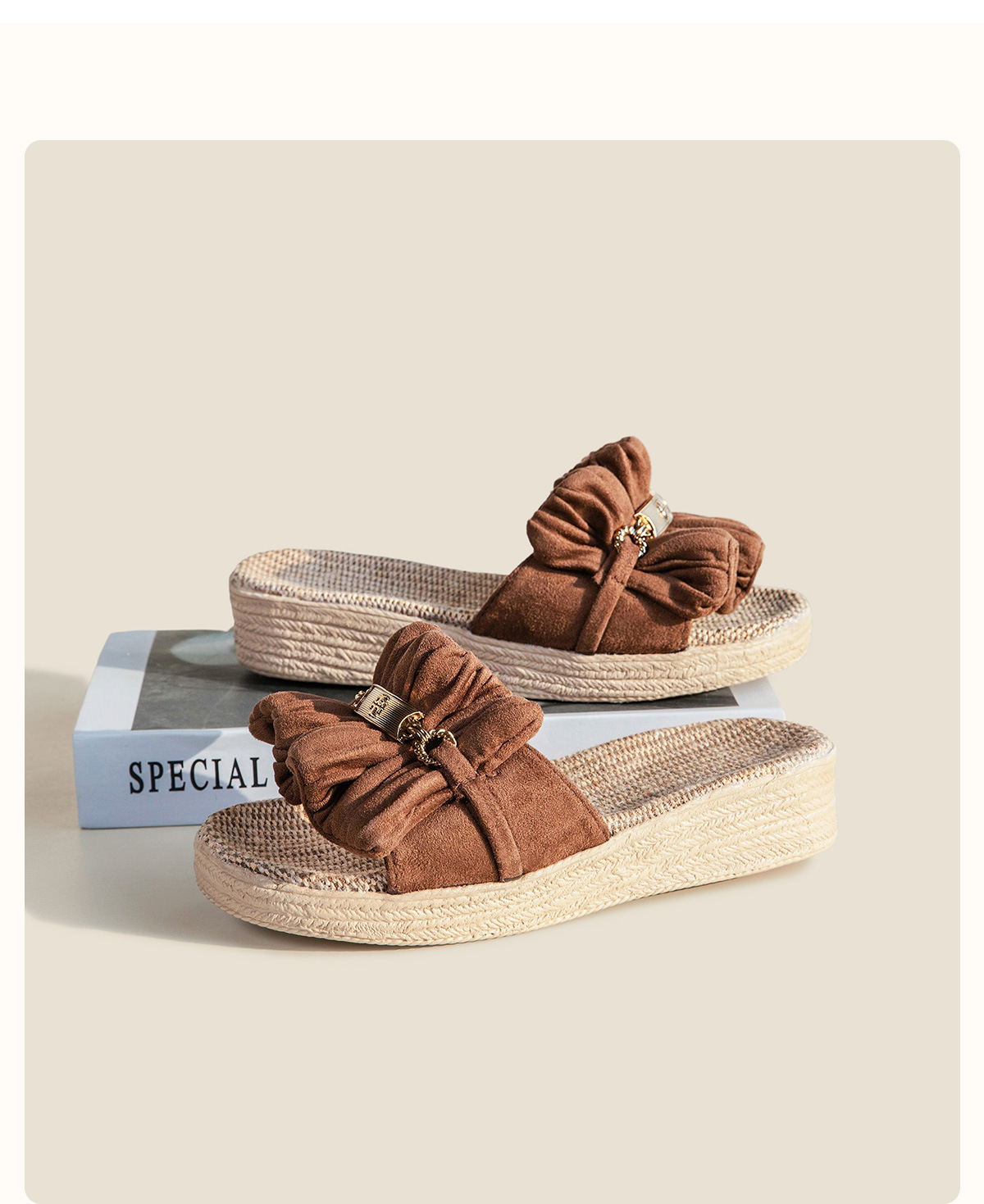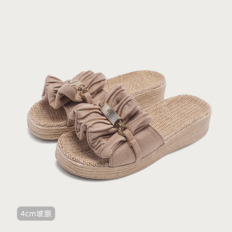 여름 달콤하고 우아한 패브릭 여성용 린넨 샌들, 여성용 두꺼운 밑창 웨지 홈 슈즈, 미끄럼 방지, 가볍고 착용 가능