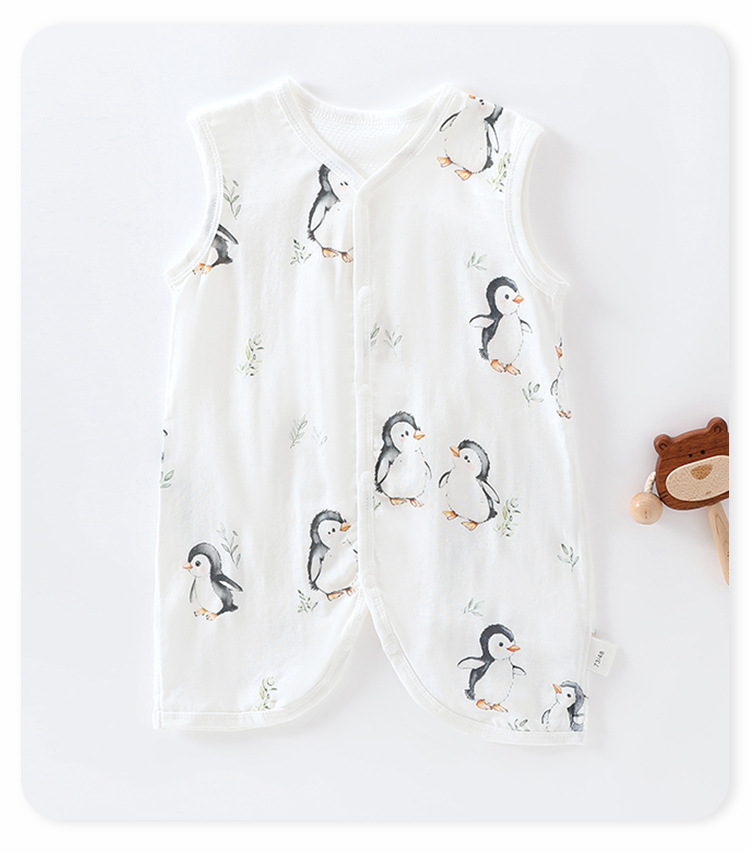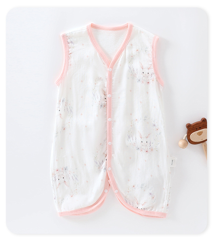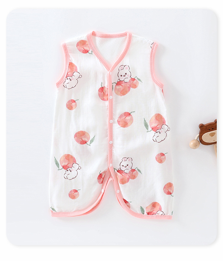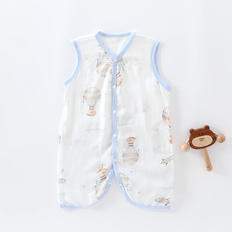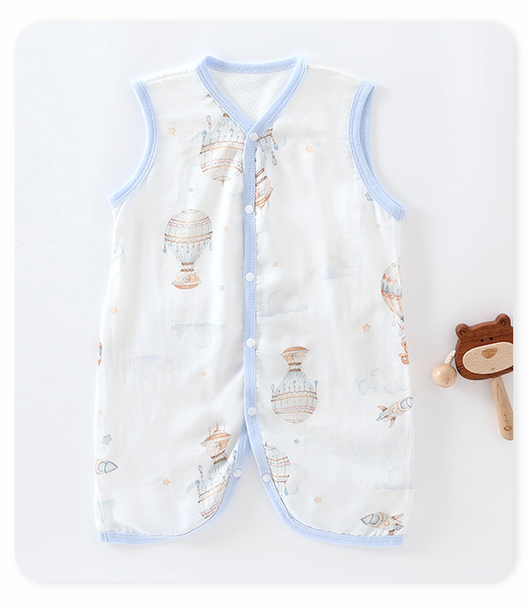 아기 침낭 여름 얇은 거즈 남성과 여성 아기 원피스 잠옷 메쉬 통기성 민소매 조끼 크롤링 슈트