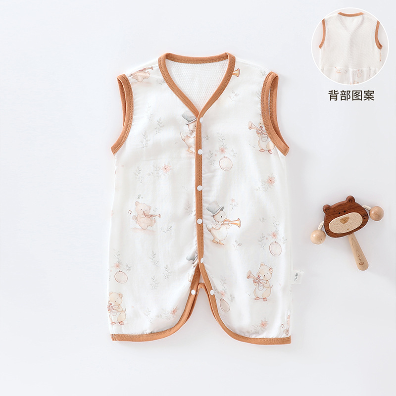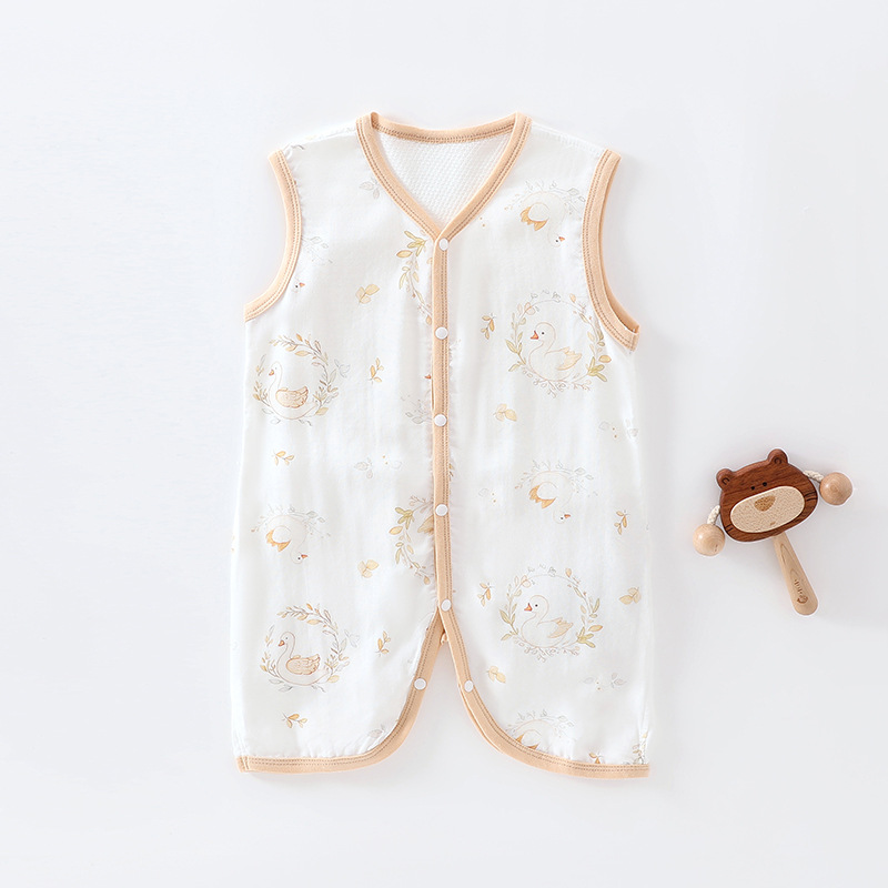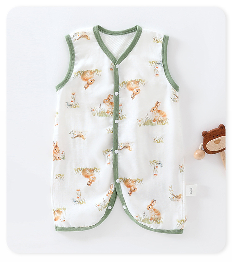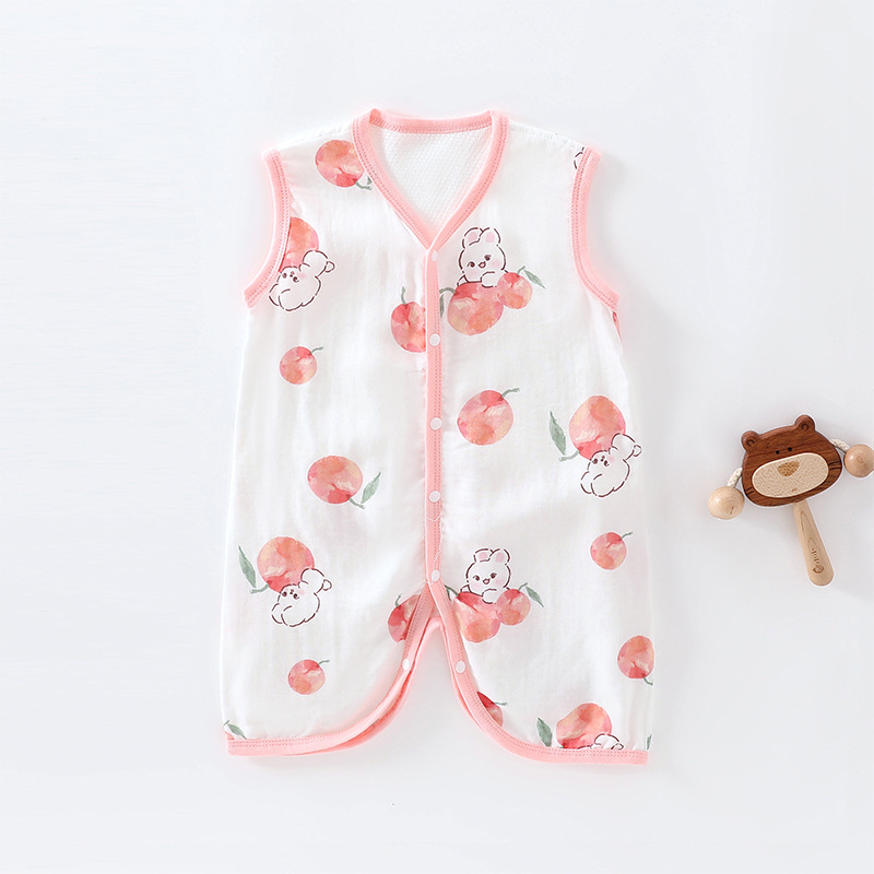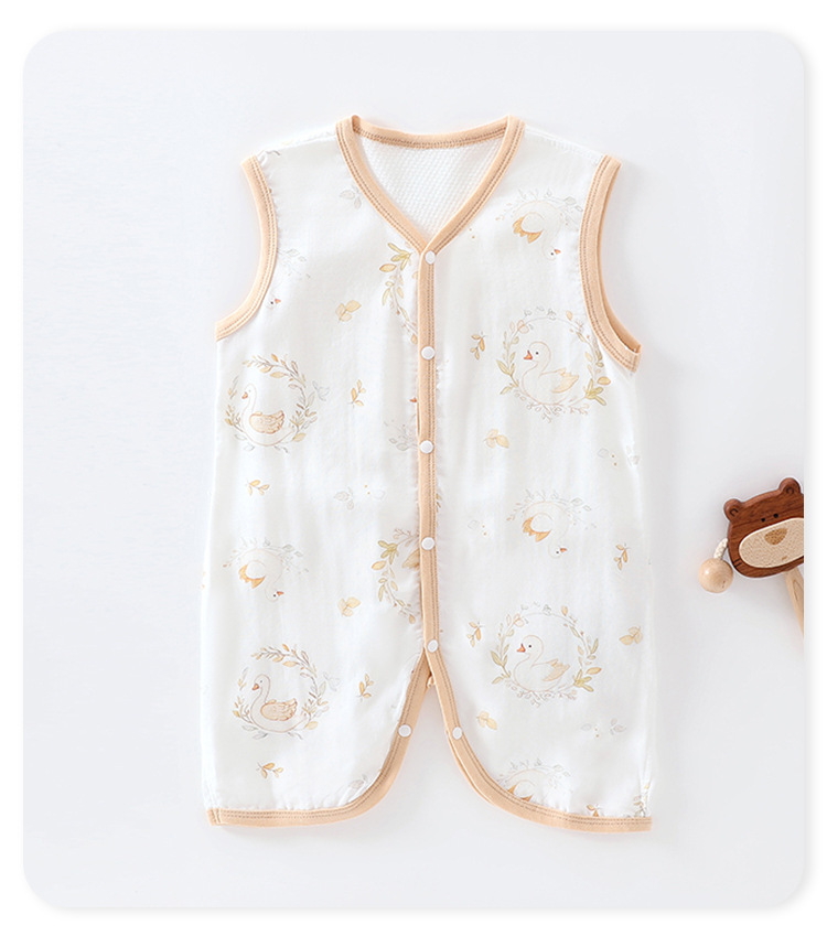 아기 침낭 여름 얇은 거즈 남성과 여성 아기 원피스 잠옷 메쉬 통기성 민소매 조끼 크롤링 슈트