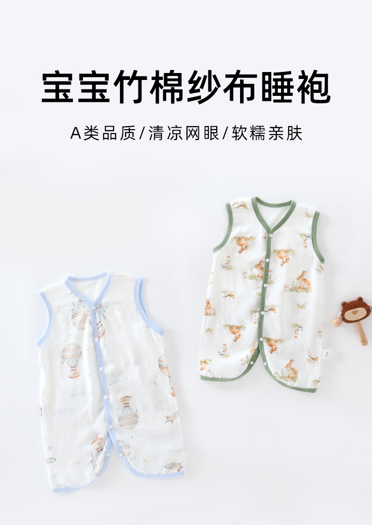 아기 침낭 여름 얇은 거즈 남성과 여성 아기 원피스 잠옷 메쉬 통기성 민소매 조끼 크롤링 슈트스토어 가기