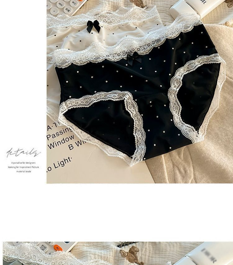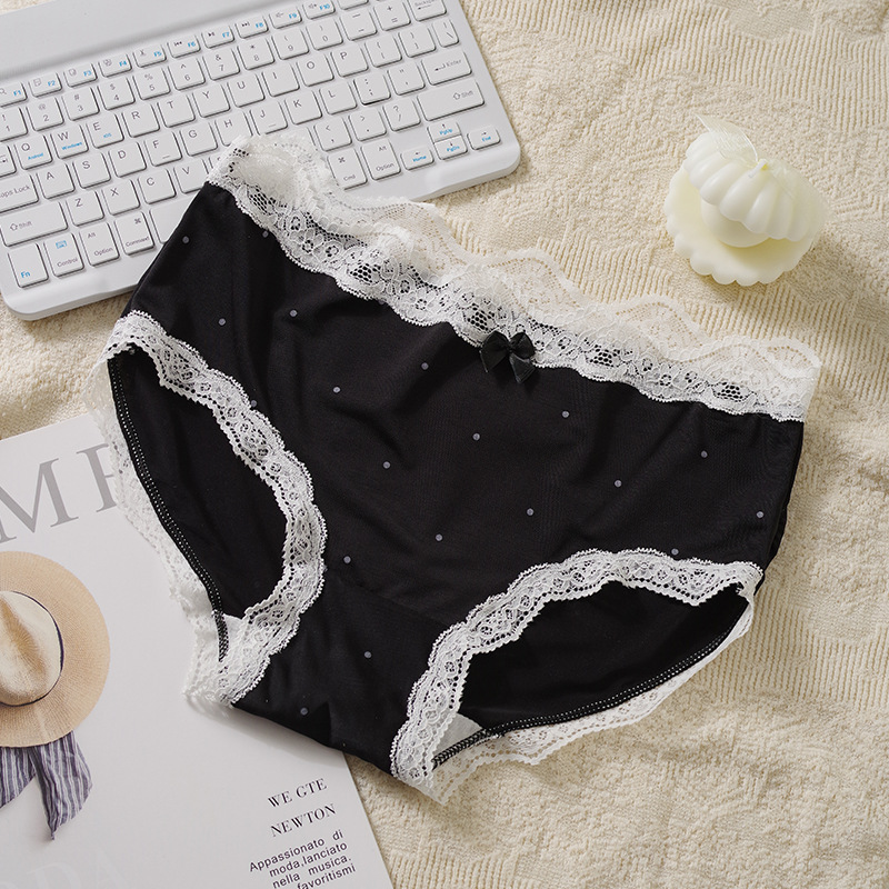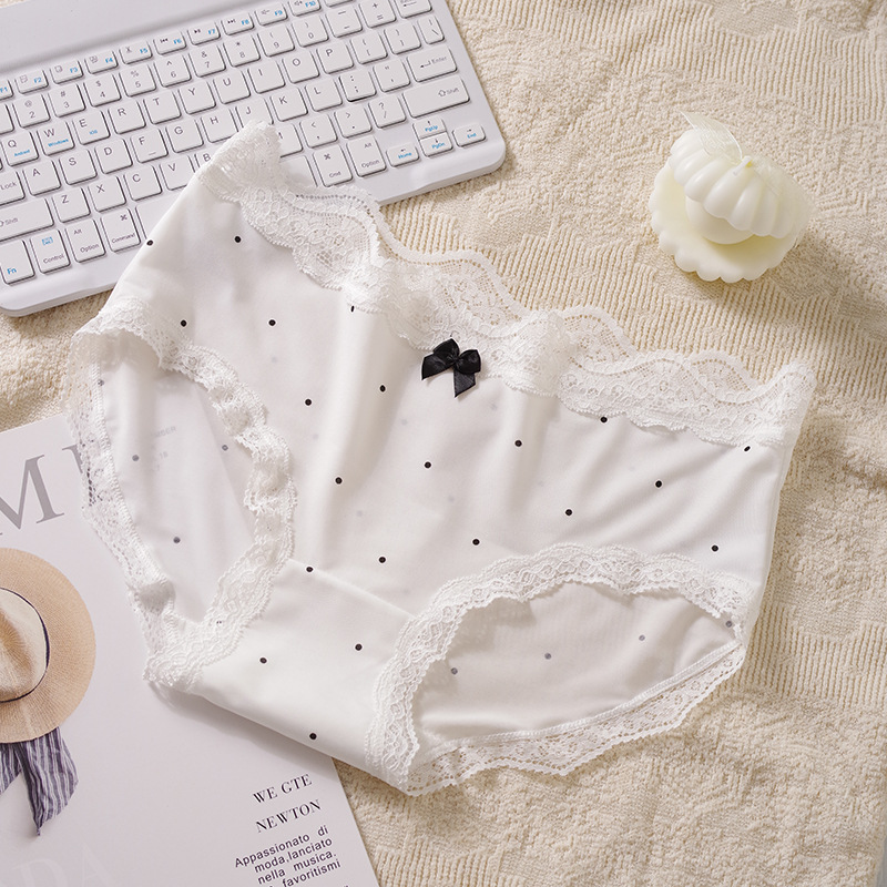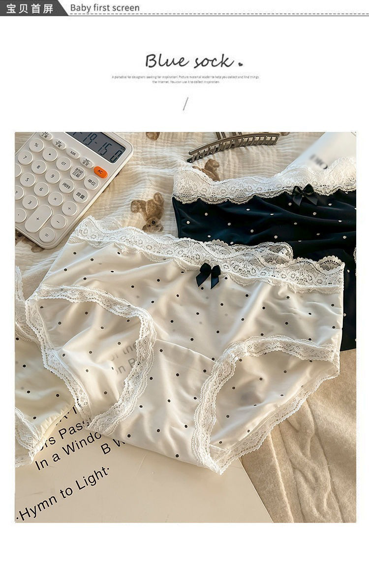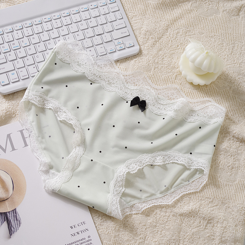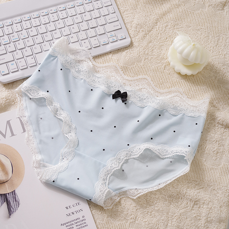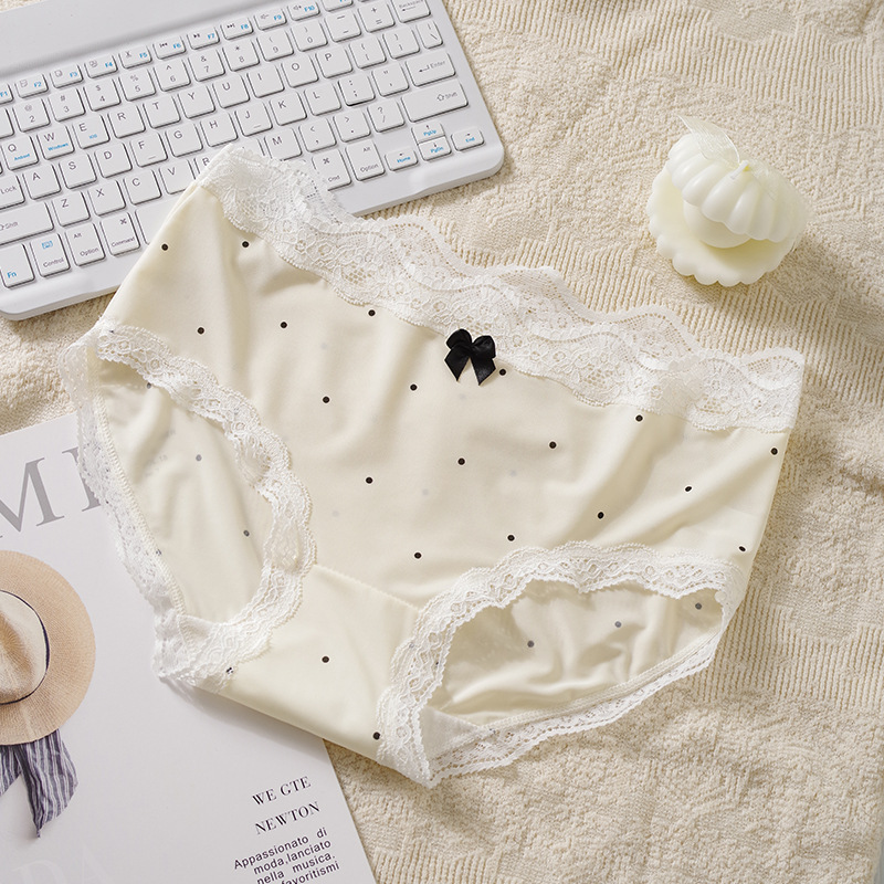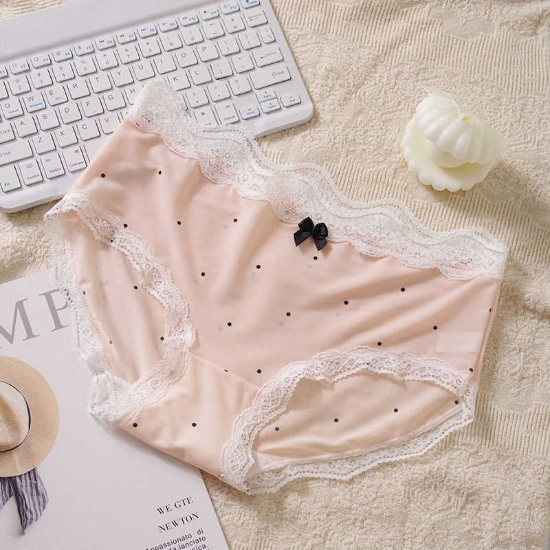 여름용 아이스 실크 여성 팬티, 프렌치 스타일 물방울 무늬 레이스 트림, 여아용 팬티, 긴 라이닝, 얇고 통기성 좋은 여성 팬티스토어 가기