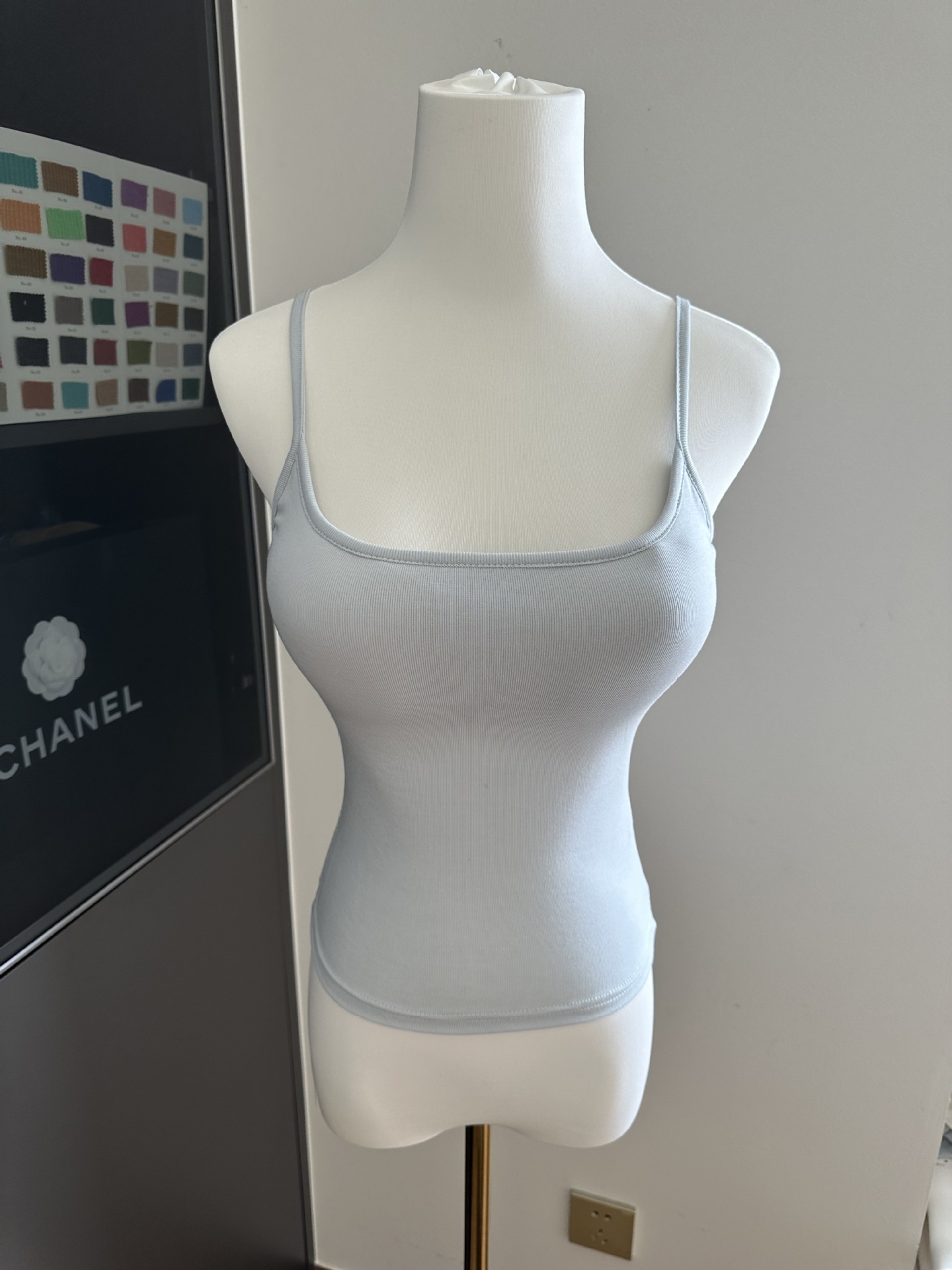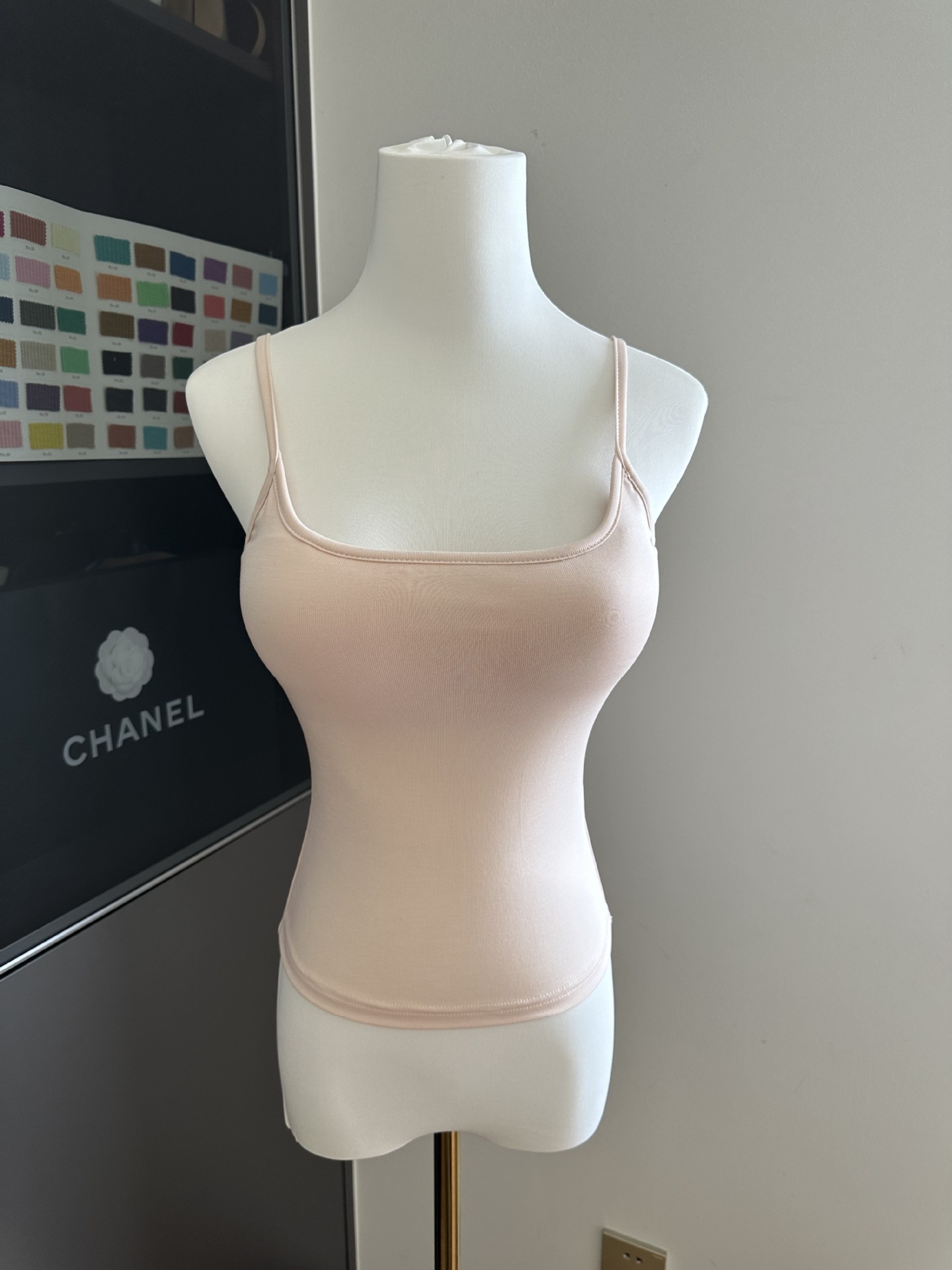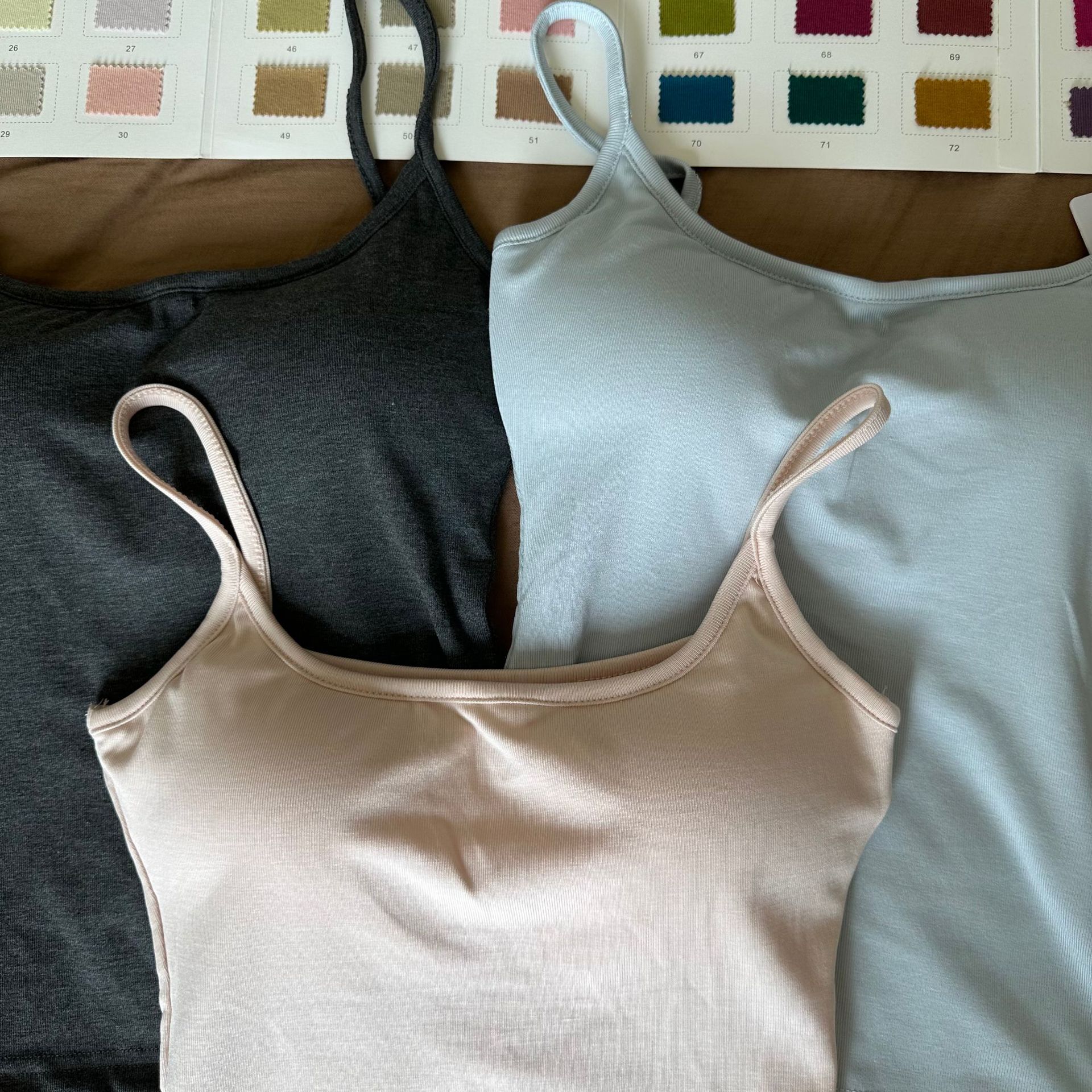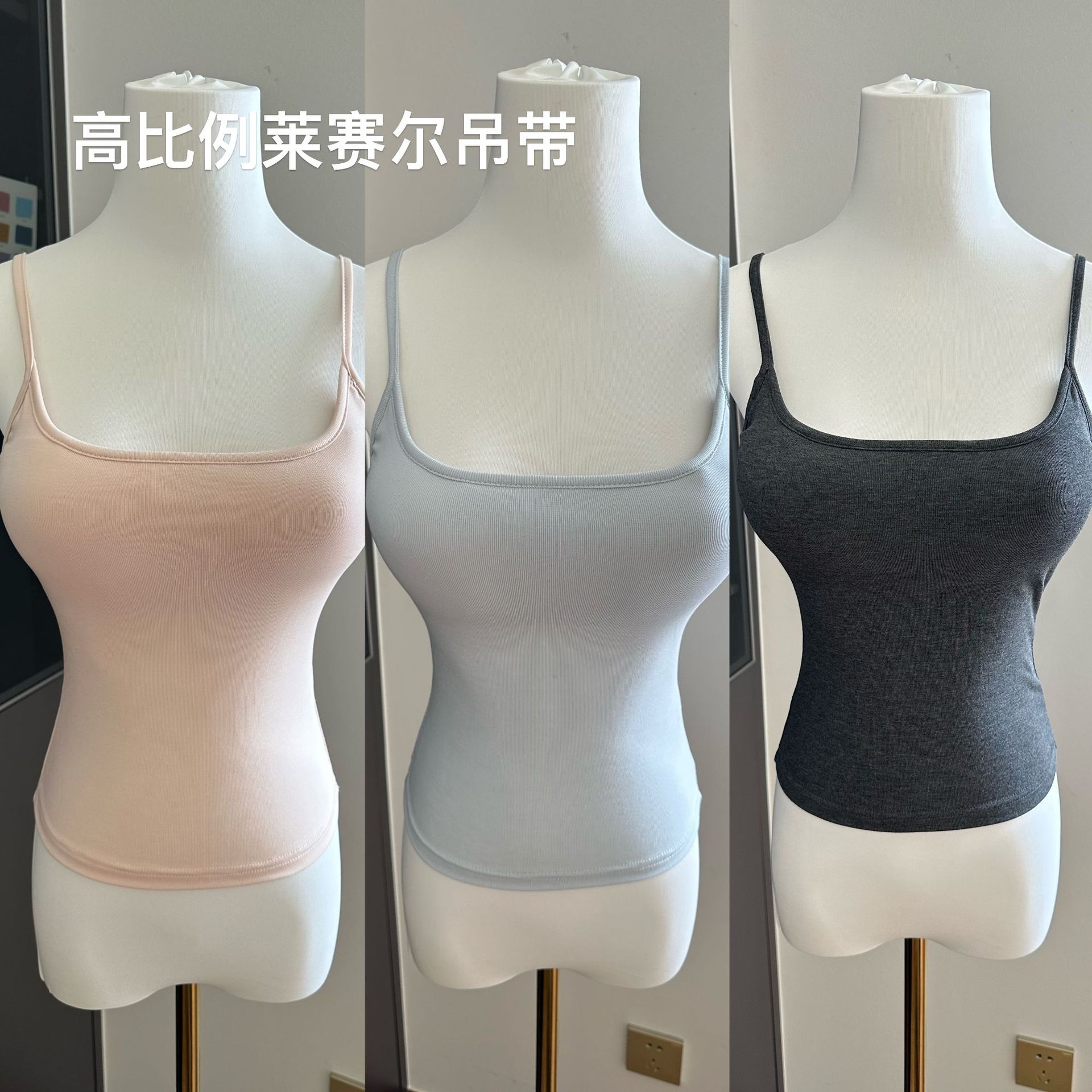 408 # 가슴 패드가 있는 슬림핏 베이직/탈부착 가능한 캐미솔 여성용 하이 프로포션 리오셀