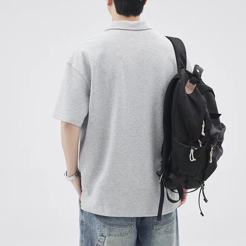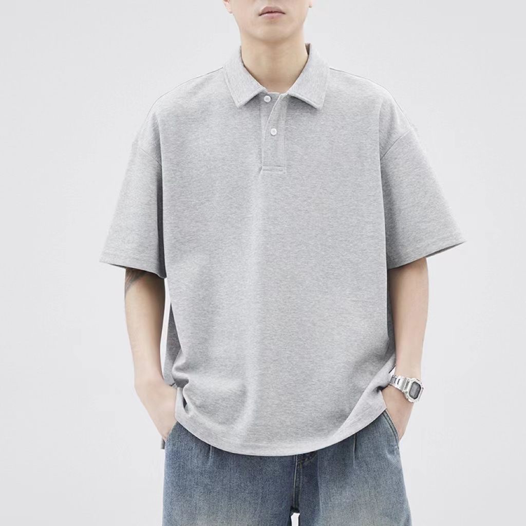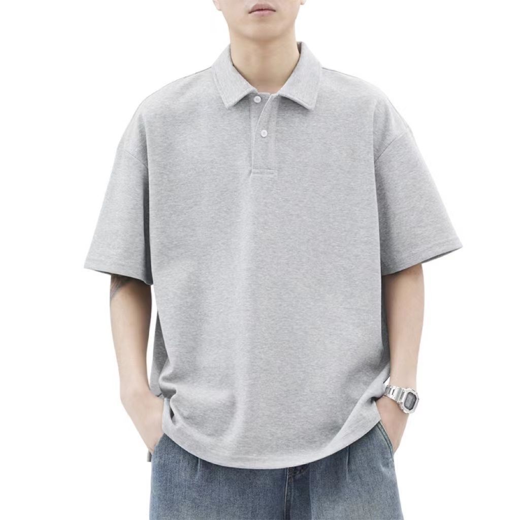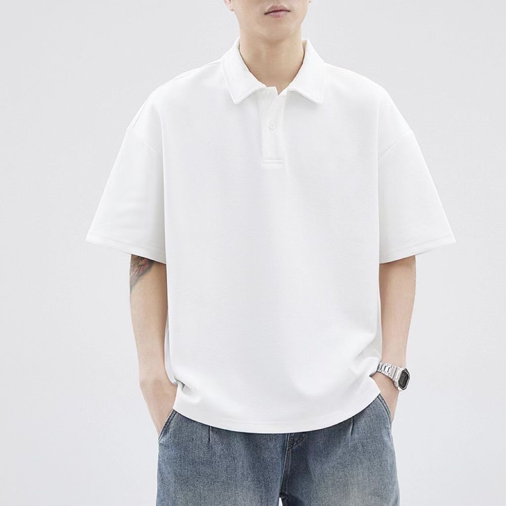 여름 아메리칸 와플 폴로 새로운 다재다능한 트렌디 라펠 루즈 캐주얼 솔리드 컬러 심플 반팔 남성 티셔츠