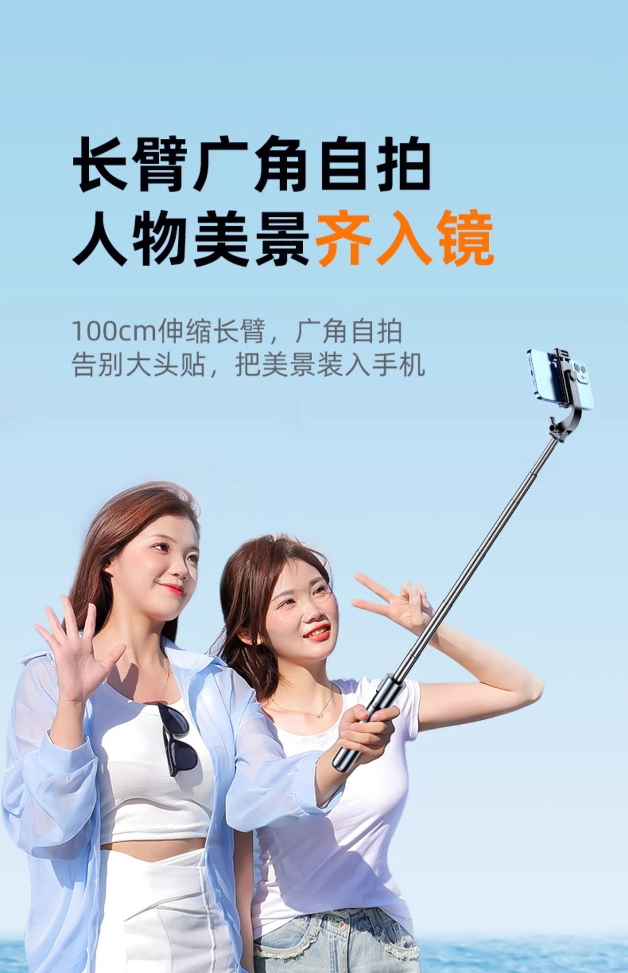 • [확장모델] 화이트 [일체형 접이식 ★ 안정적인 삼각 지지대】+ 10m 블루투스 리모컨
