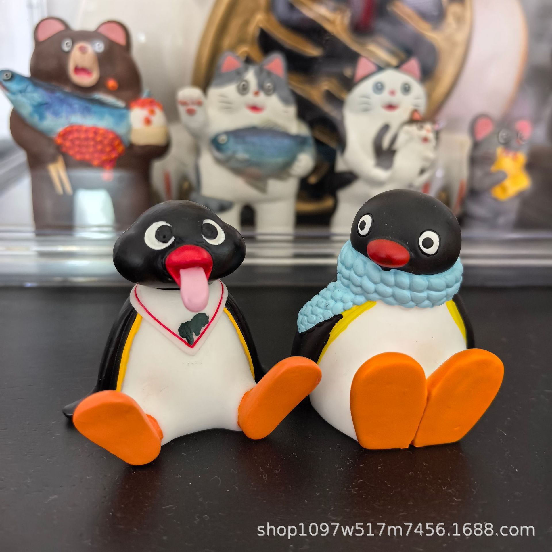 작은 빨간 책 창조적 인 만화 펭귄 작은 장식품 재미 있은 혀를 뽑은 펭귄 인형 자동차 데스크탑 장식 수지스토어 가기