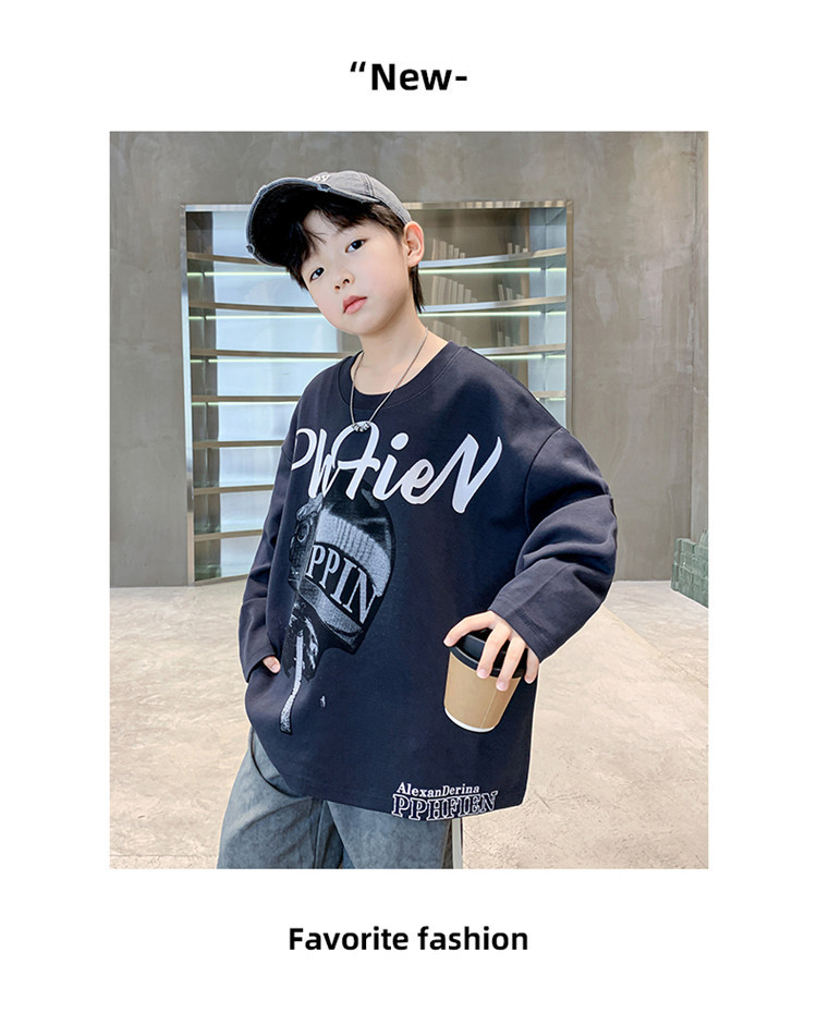 남아용 긴팔 티셔츠 2025 새로운 스타일 중대형 아동용 봄, 가을 스타일 남아용 봄 의류 아동용 하의 셔츠, 멋진 탑 트렌디 T