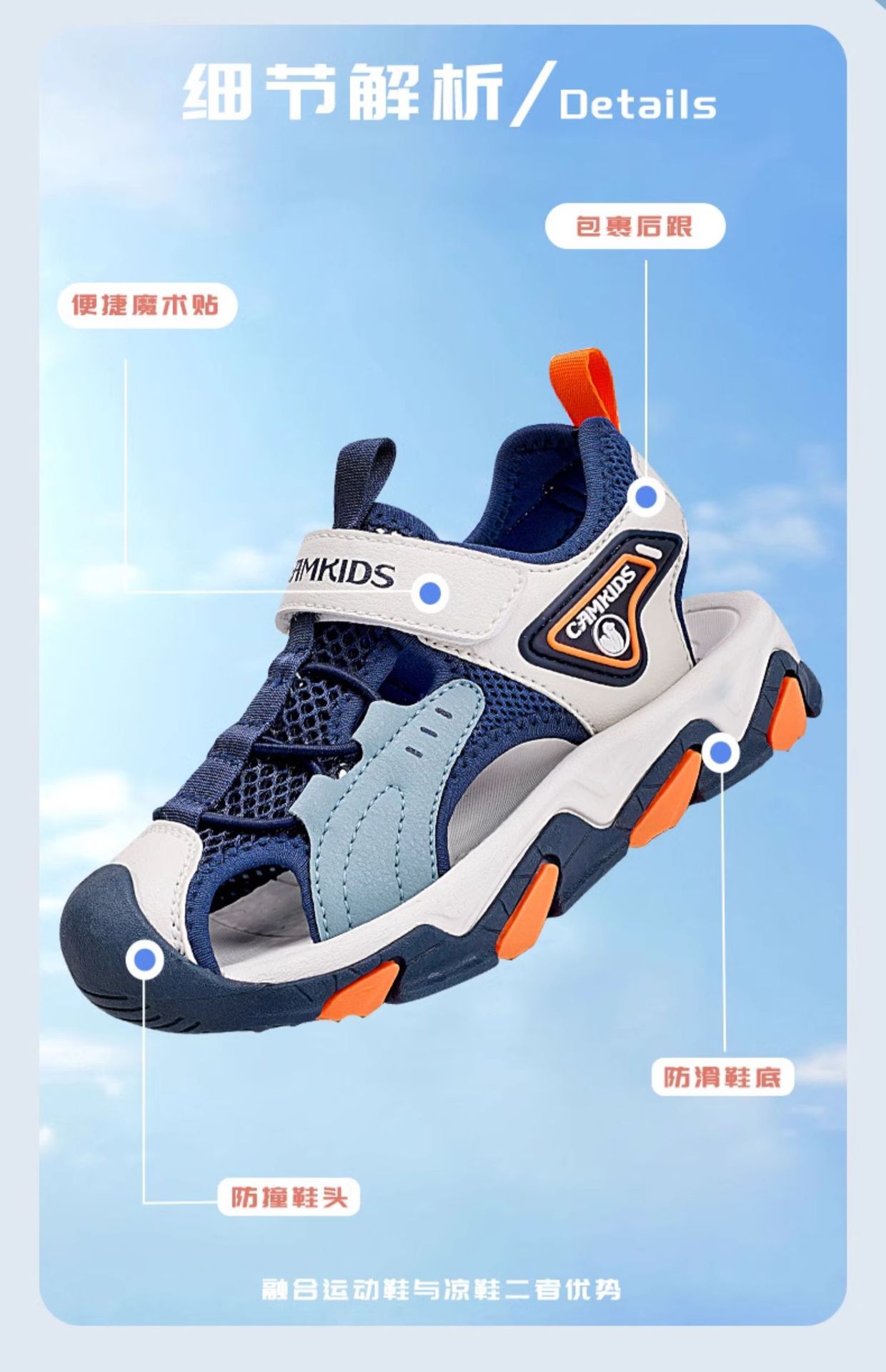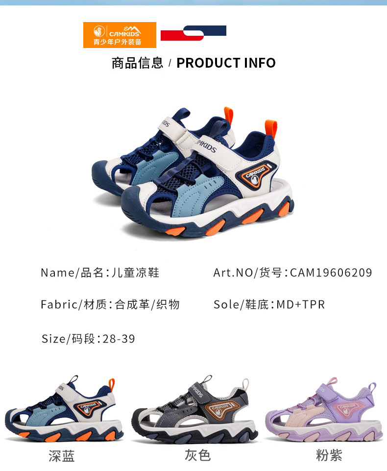 CAMKIDS Little Camel 어린이 샌들 Baotou 비치 신발 여름 소년 소녀 중대형 어린이 미끄럼 방지 부드러운 바닥