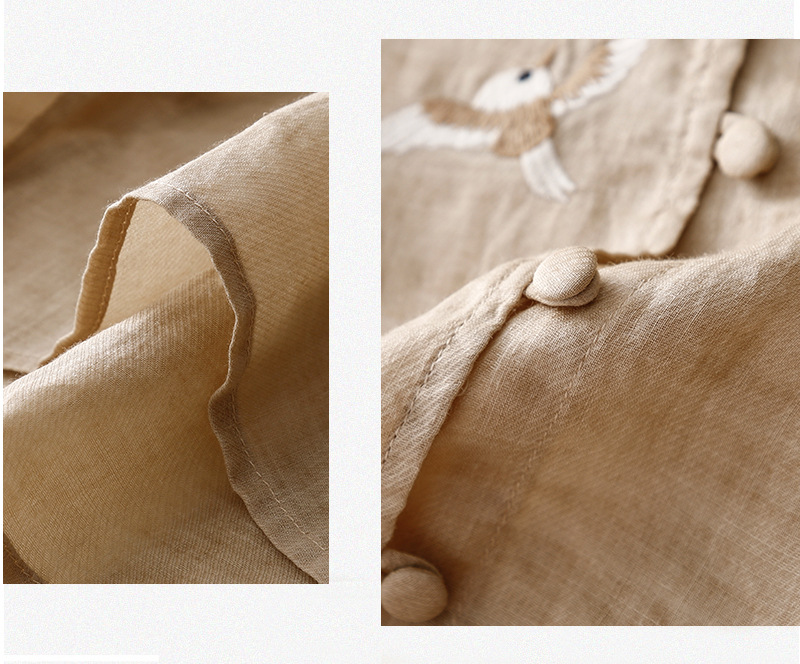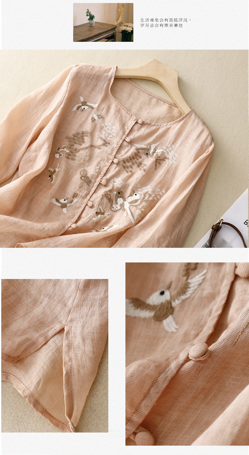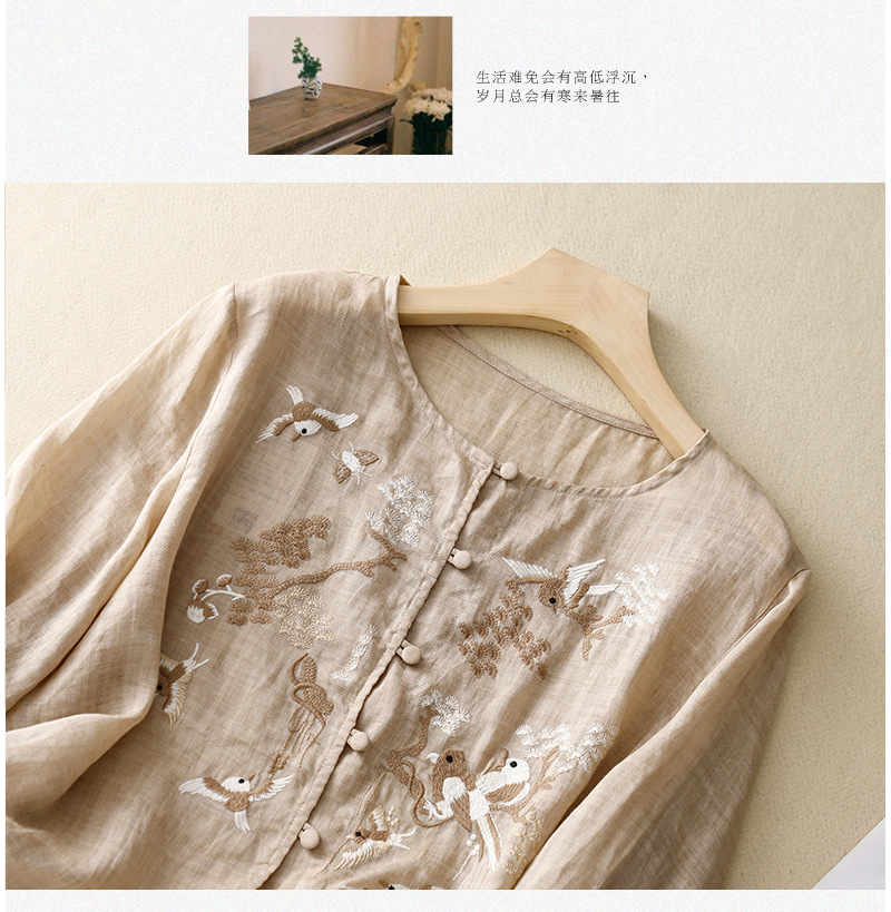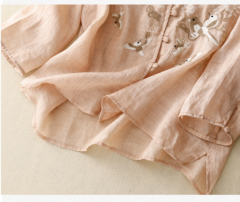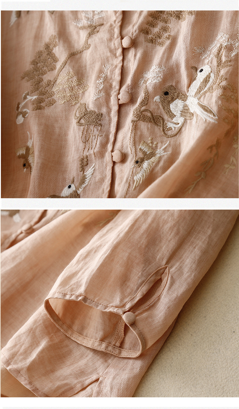 새로운 중국 스타일 여성을위한 2025 여름 새로운 스타일 중년 어머니 하이 엔드 코튼 린넨 캐주얼 자수 셔츠
