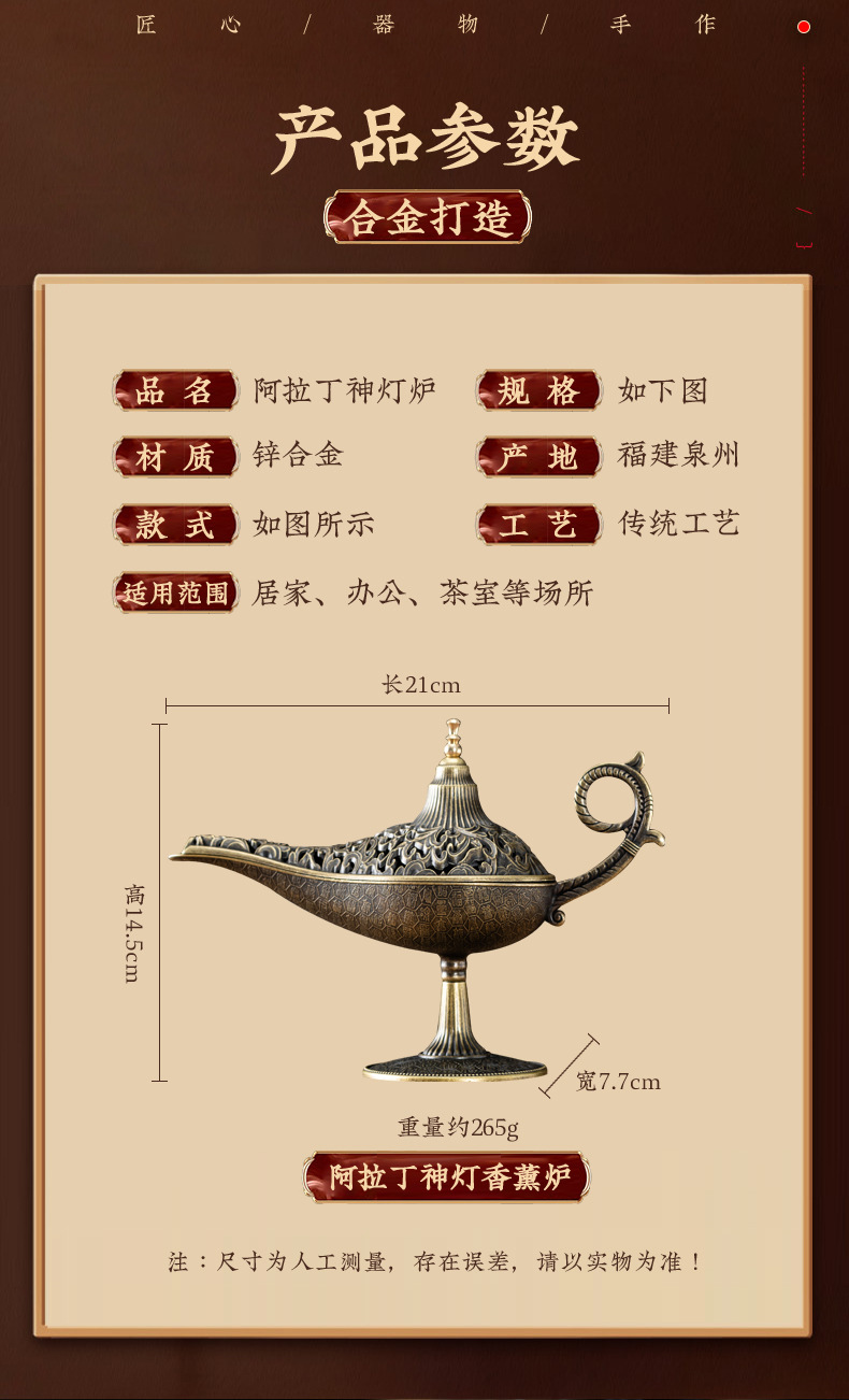 알라딘의 램프 향 버너 합금 향 버너 샹윤 비 끈적 끈적한 분말 향 버너 알로에 거위 배 텐트 향 다도 장식품스토어 가기