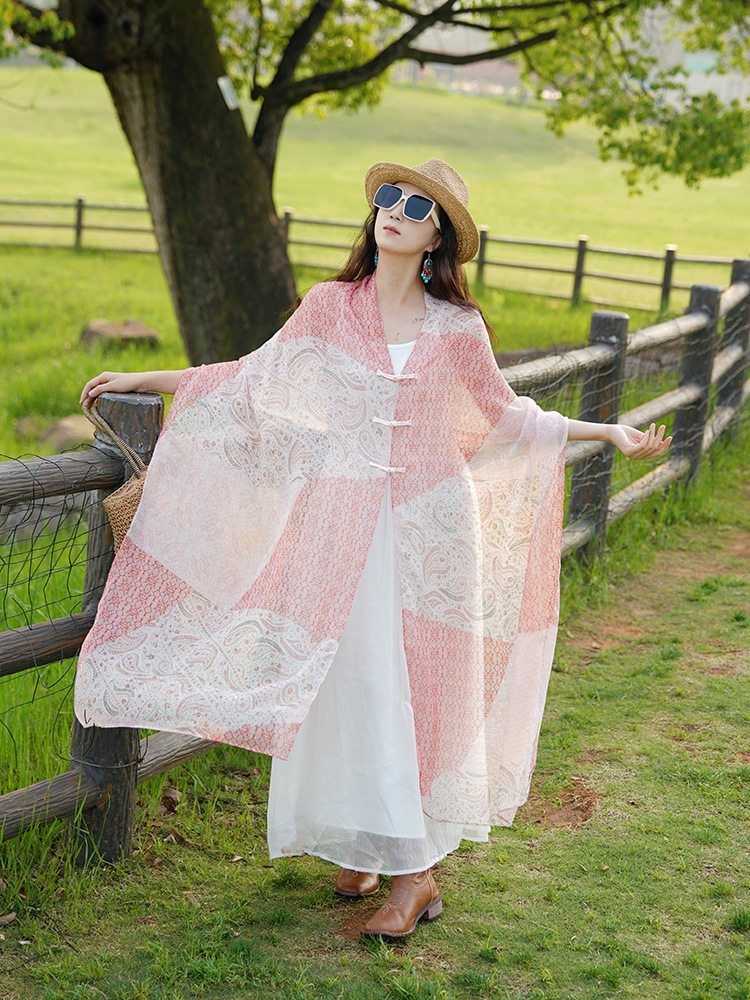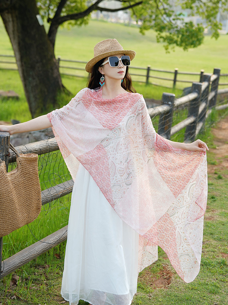 레트로 핑크 캐슈 프레리 사막 운남 여행 민족 스타일 스카프 목도리 여성용 얇은 자외선 차단 실크 스카프