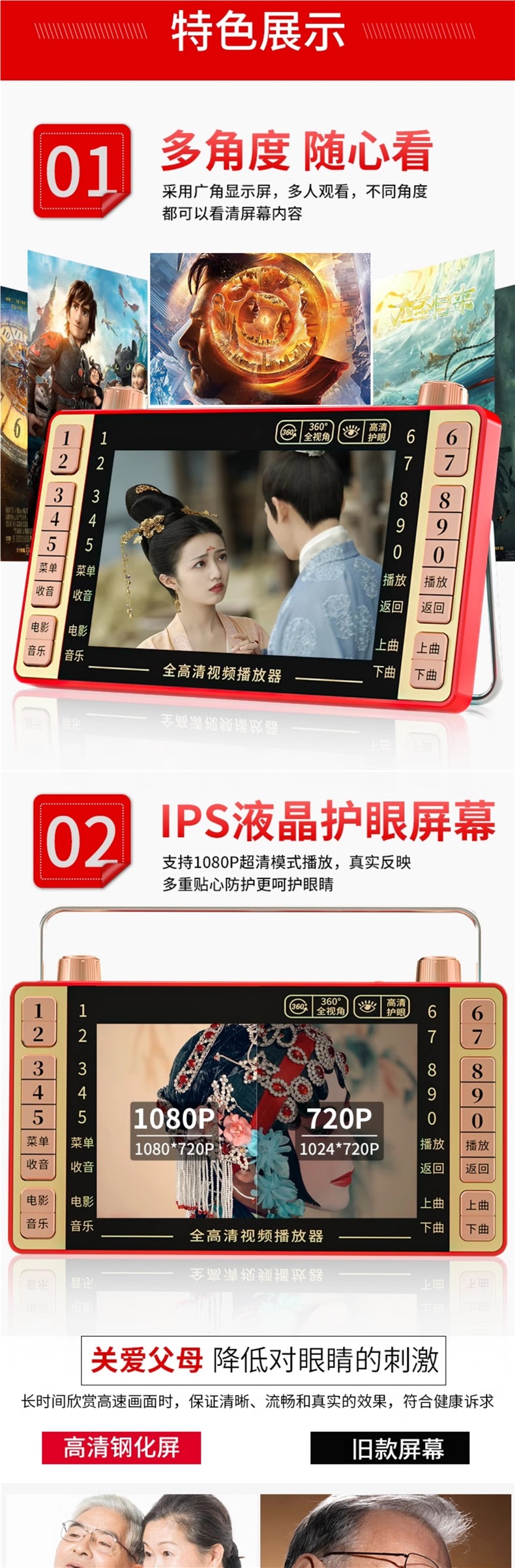 • 16시 울트라 클리어 눈 보호 버전(USB 플래시 드라이브/카드 필요)