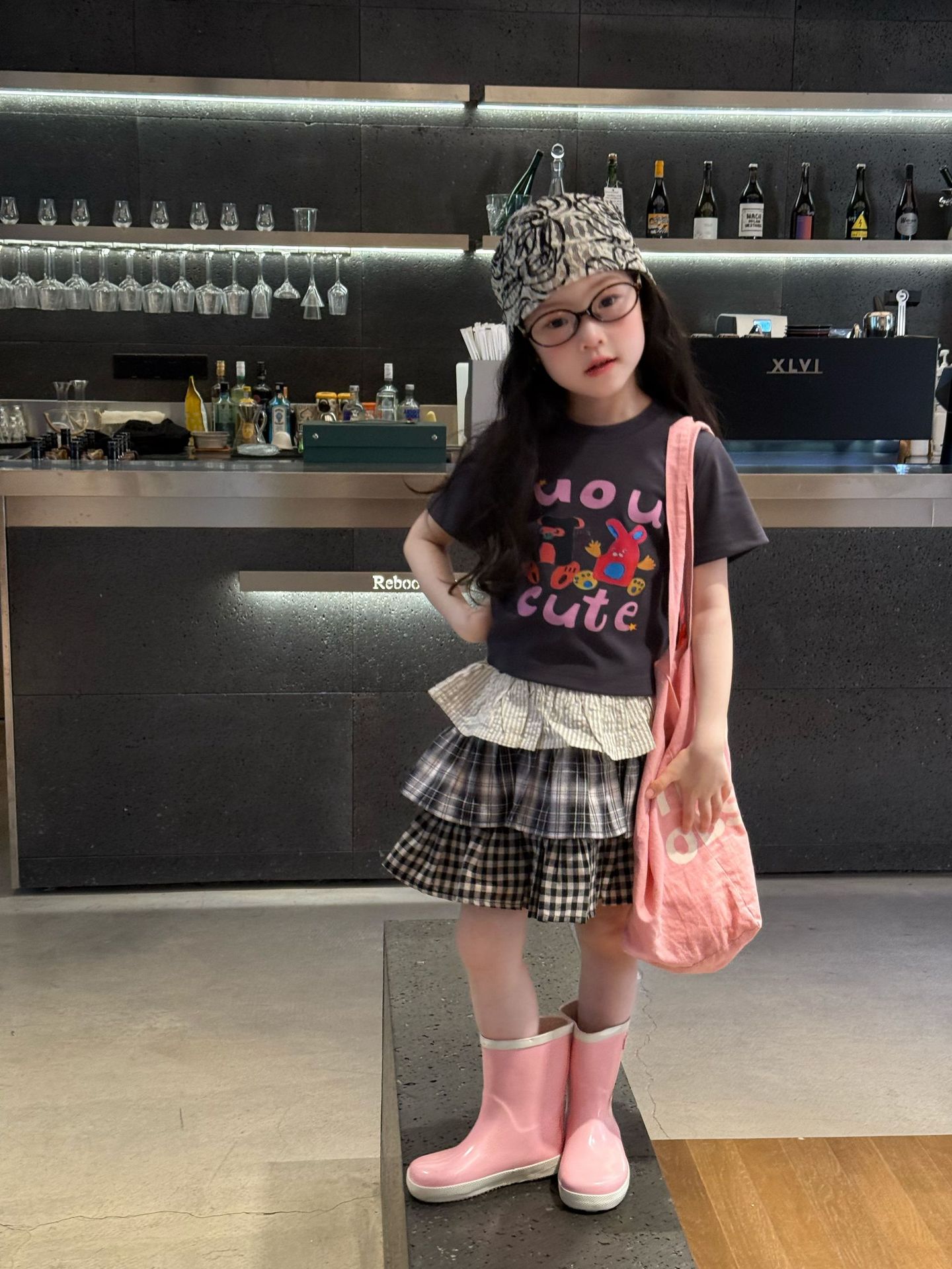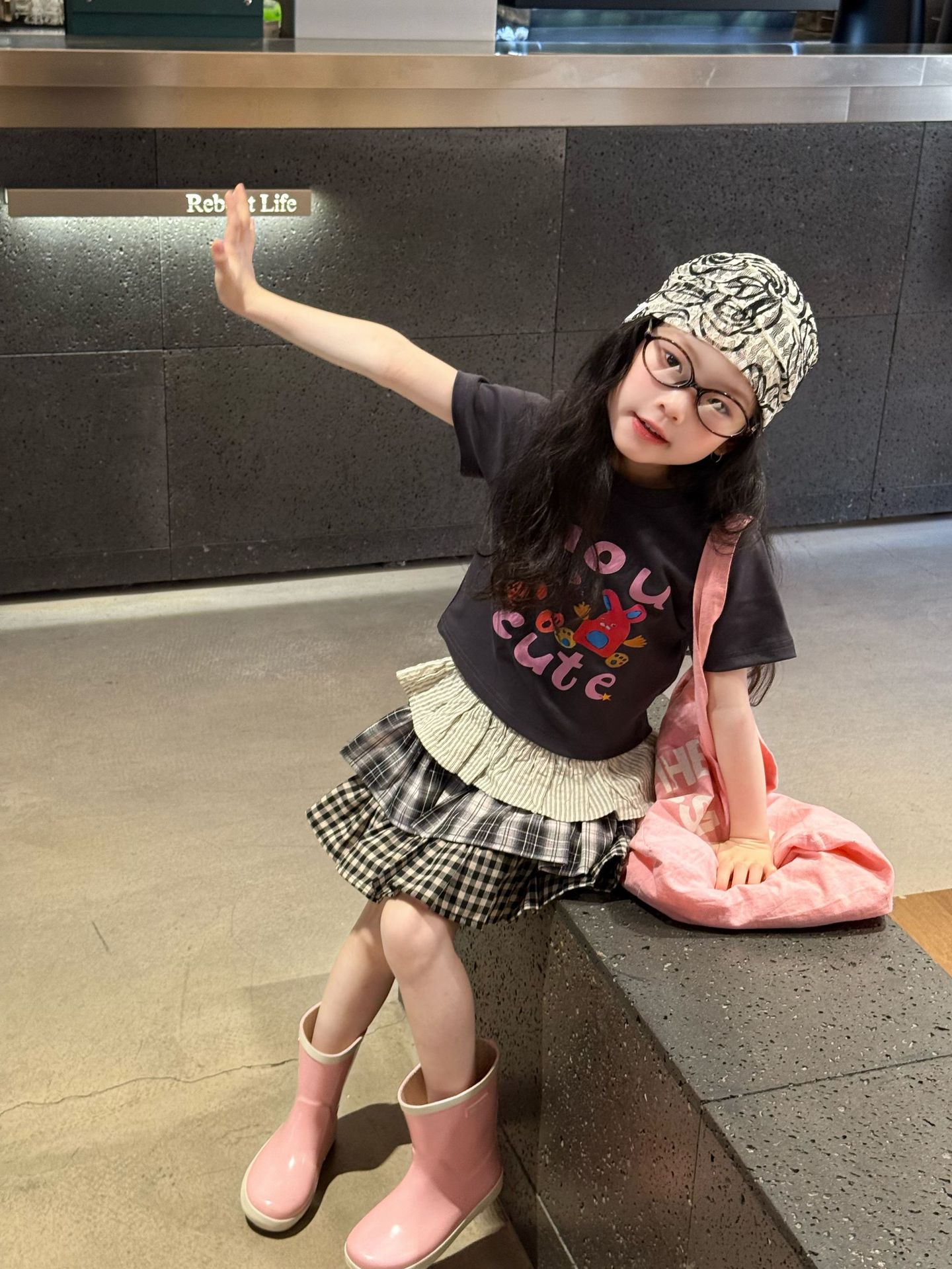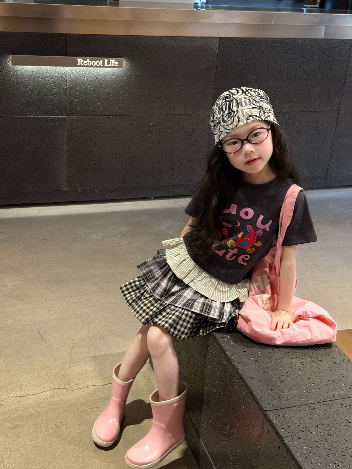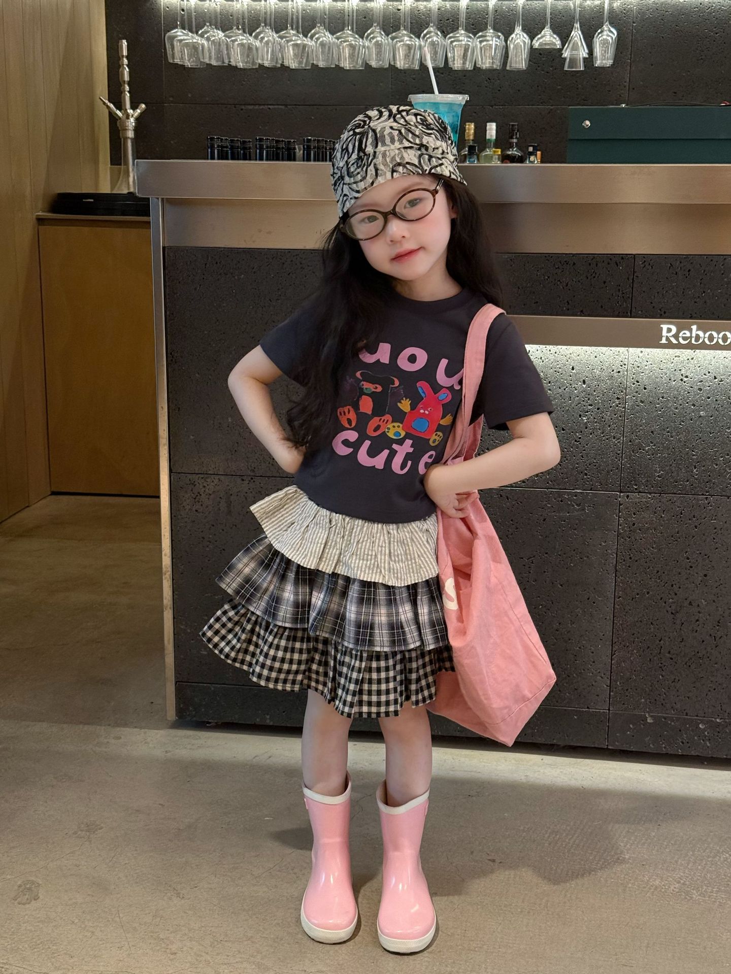 2025 여름 새 아동복 한국 아동복 소녀 컬러 편지 인쇄 반팔 티셔츠 여름 짧은 T스토어 가기