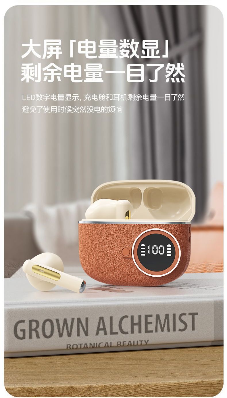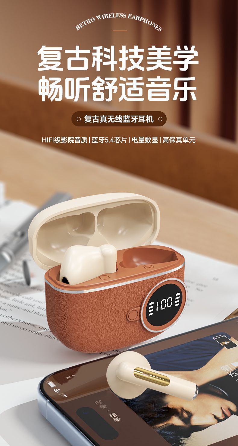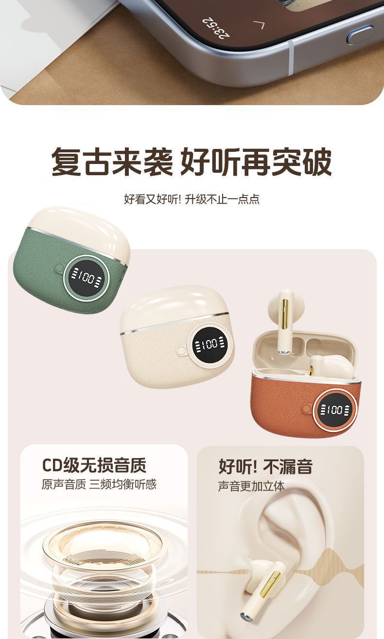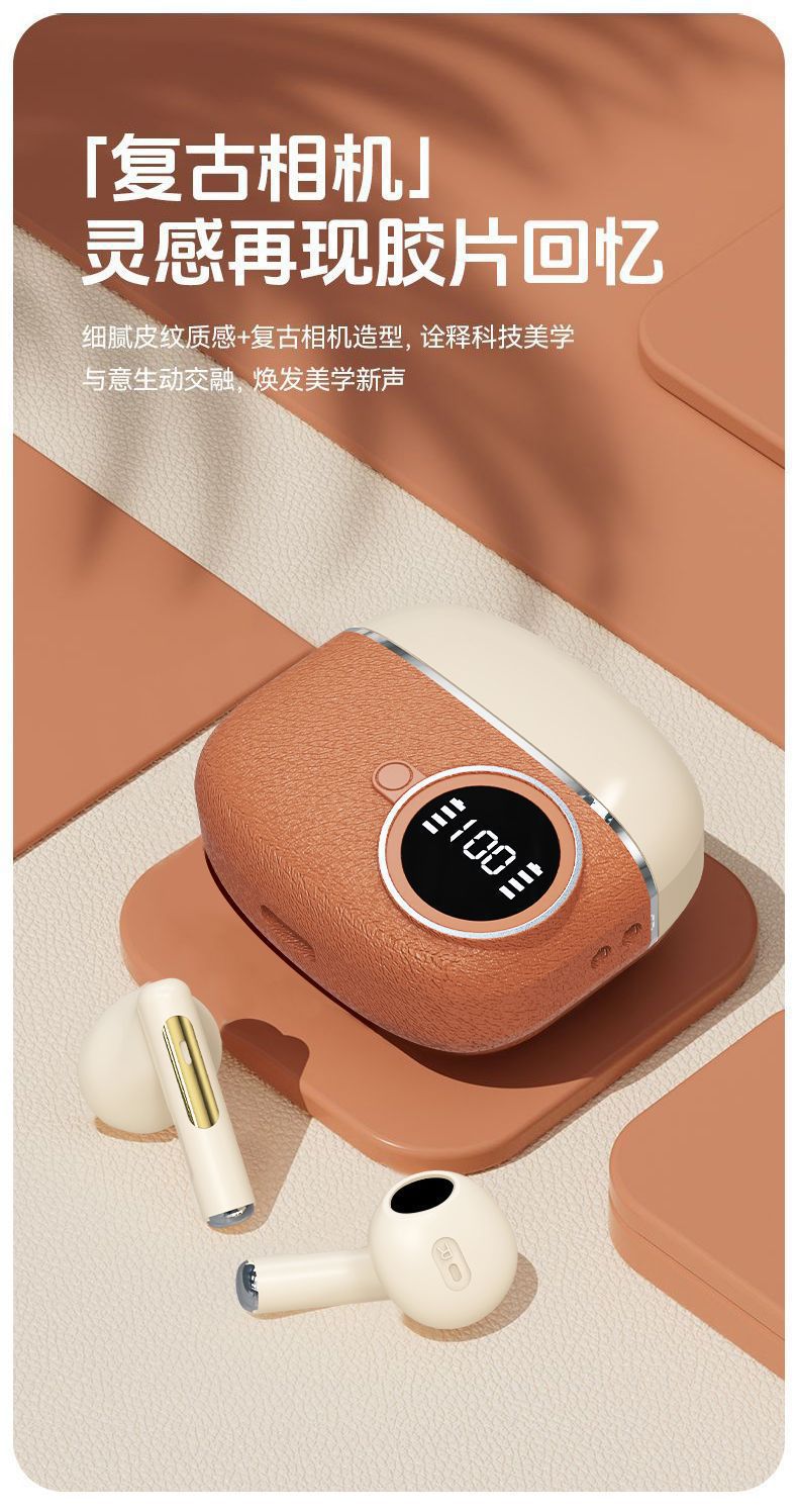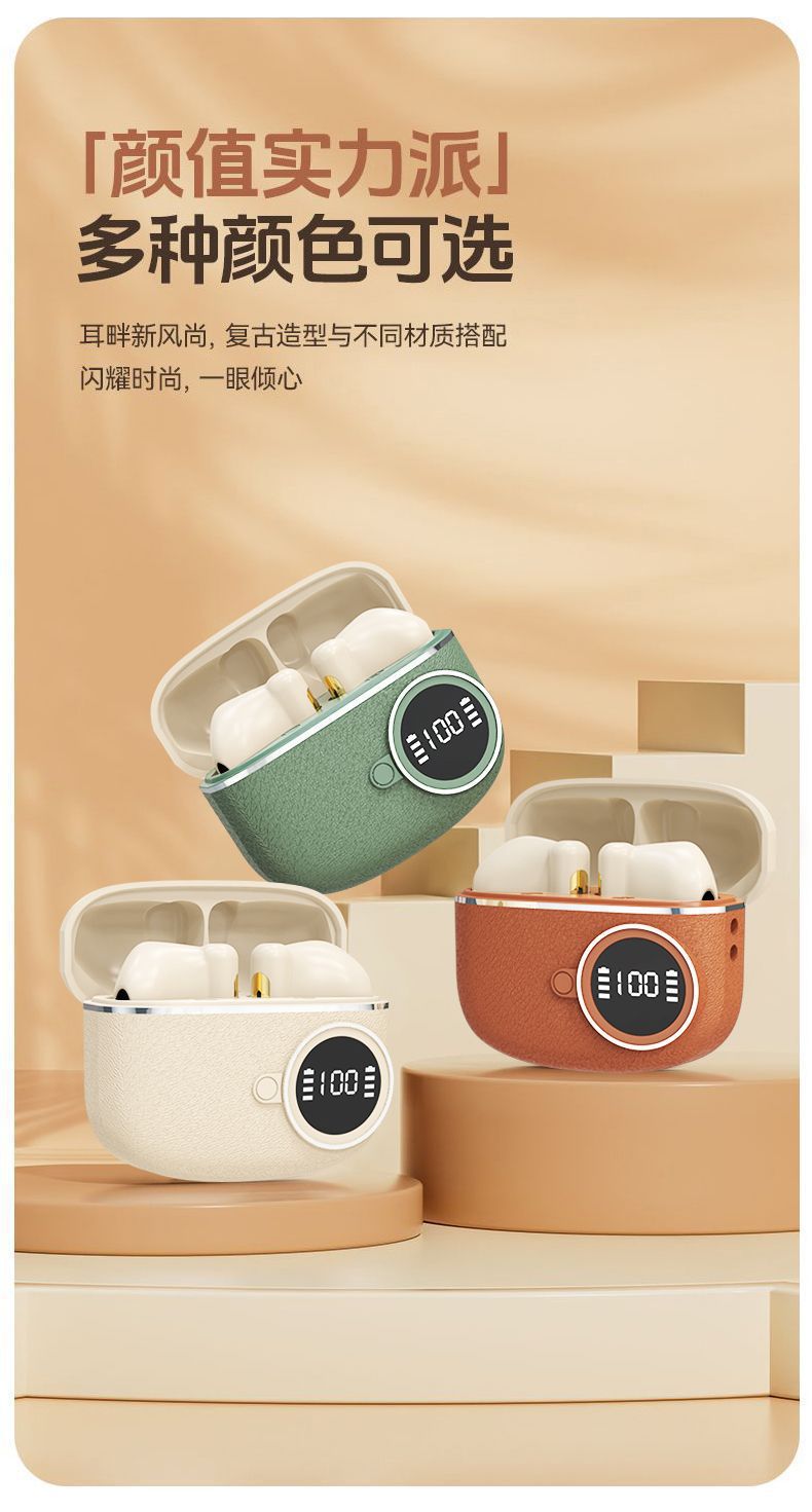 D339跨境新款复古数显无线蓝牙耳机入耳式超长续航皮纹降噪适用