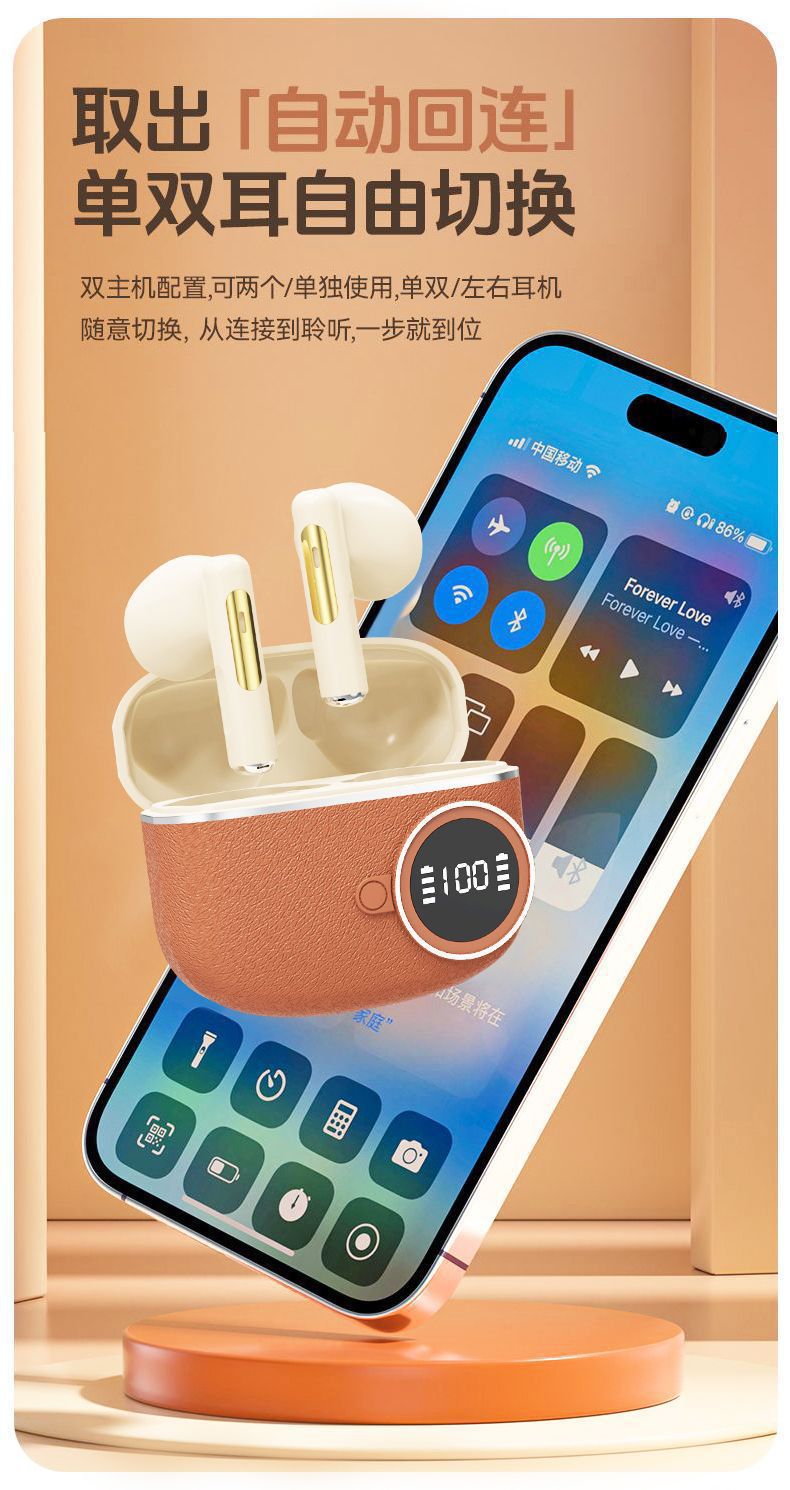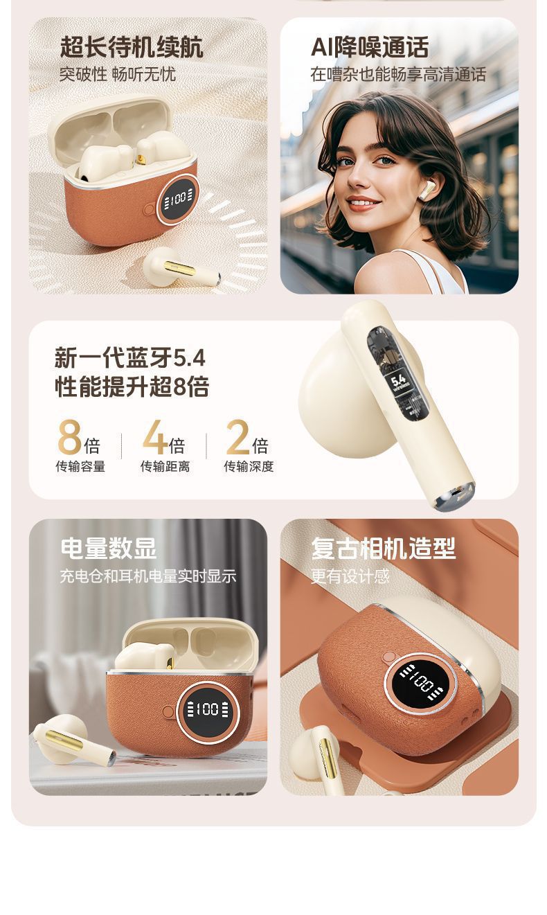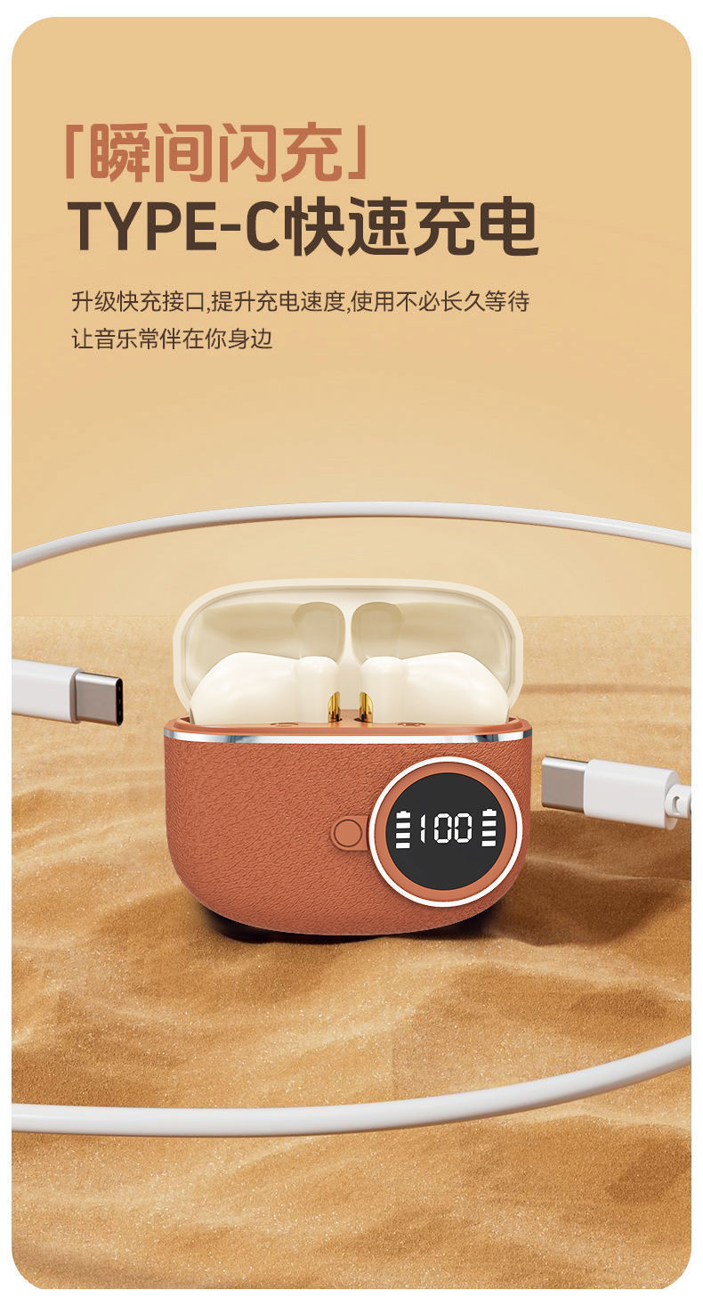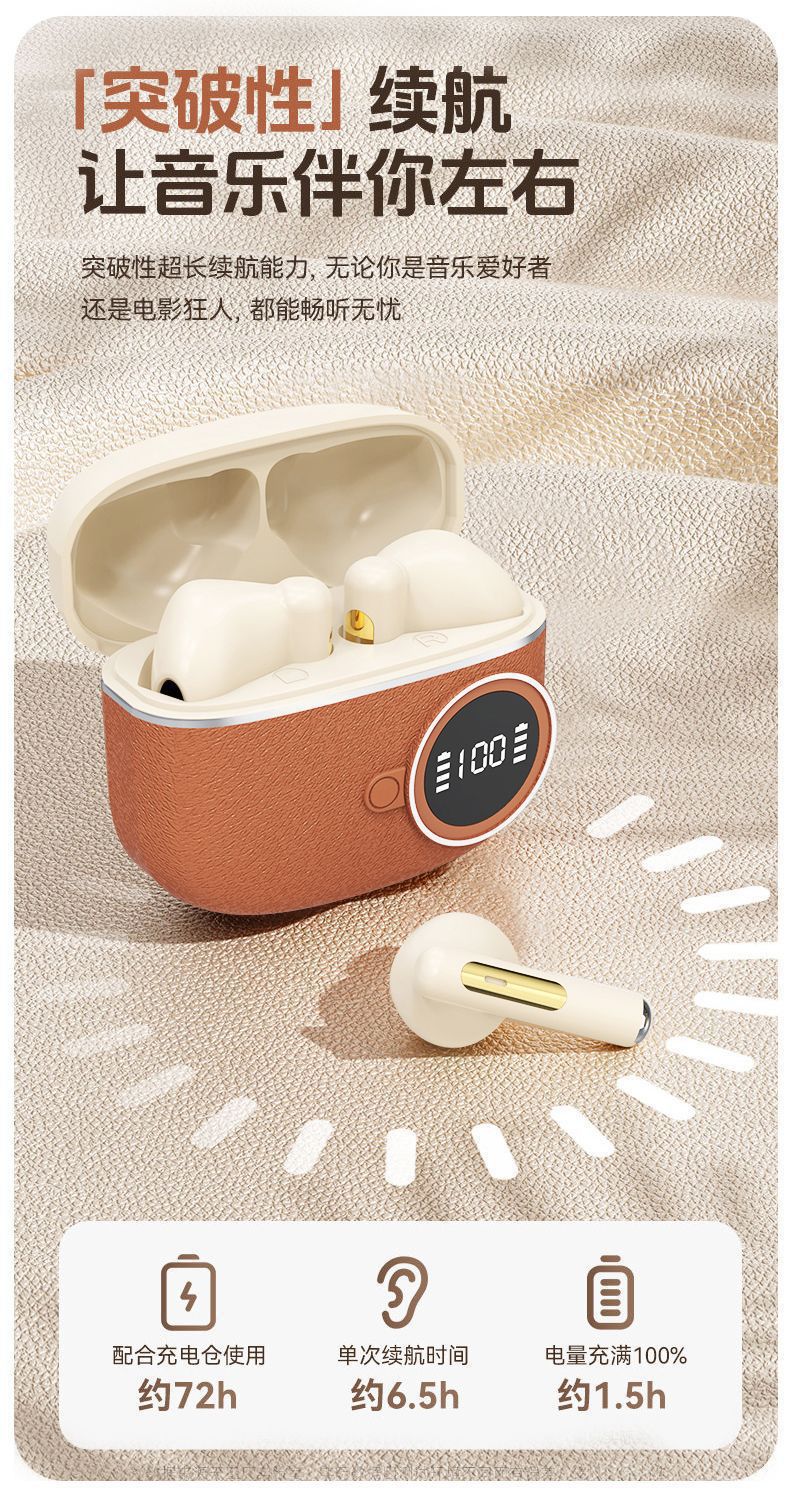 D339跨境新款复古数显无线蓝牙耳机入耳式超长续航皮纹降噪适用