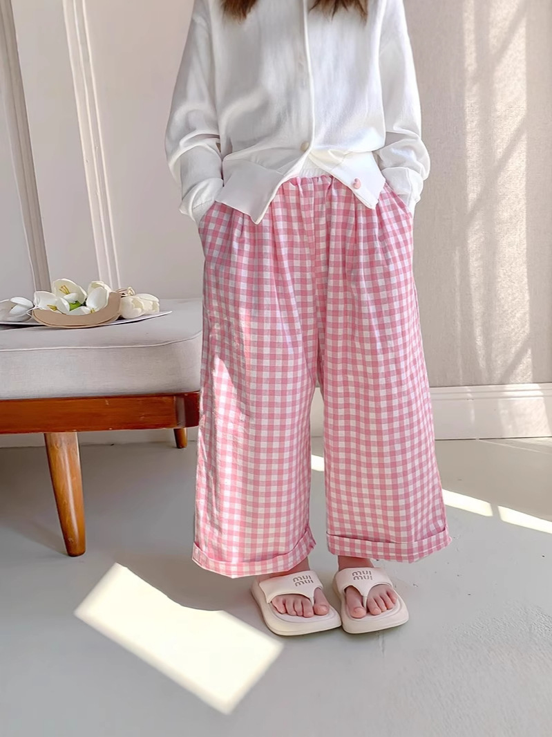 童森童马女童裤子夏薄款2025新款夏季儿童粉色格子裤宝宝甜美初夏 RMB30.80 立即加购