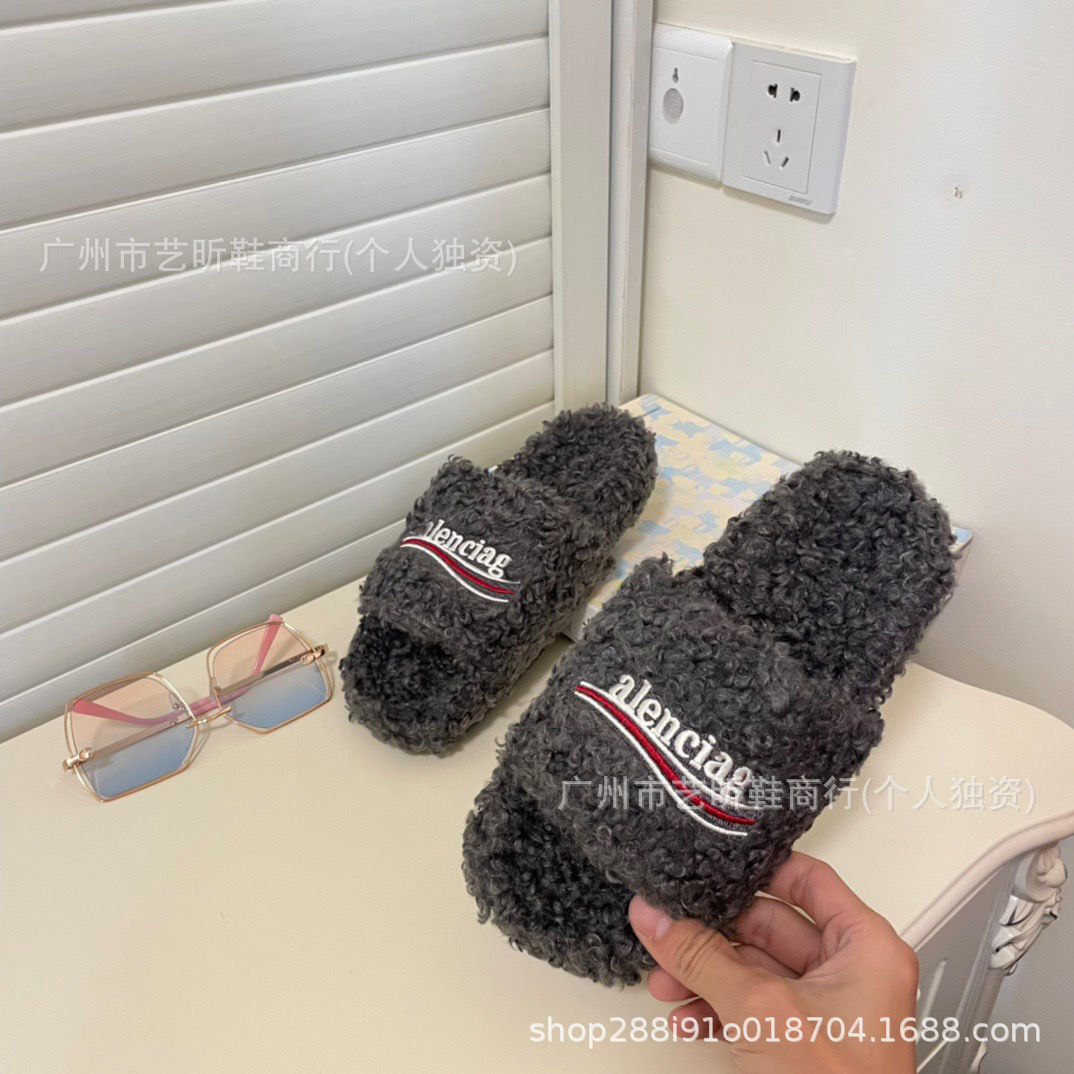 파리 마오 마오 슬리퍼 여성 캐주얼 아웃도어 가을 및 겨울 새로운 B 홈 자수 편지 귀족 가족 한 단어 커플 마오 슬리퍼스토어 가기