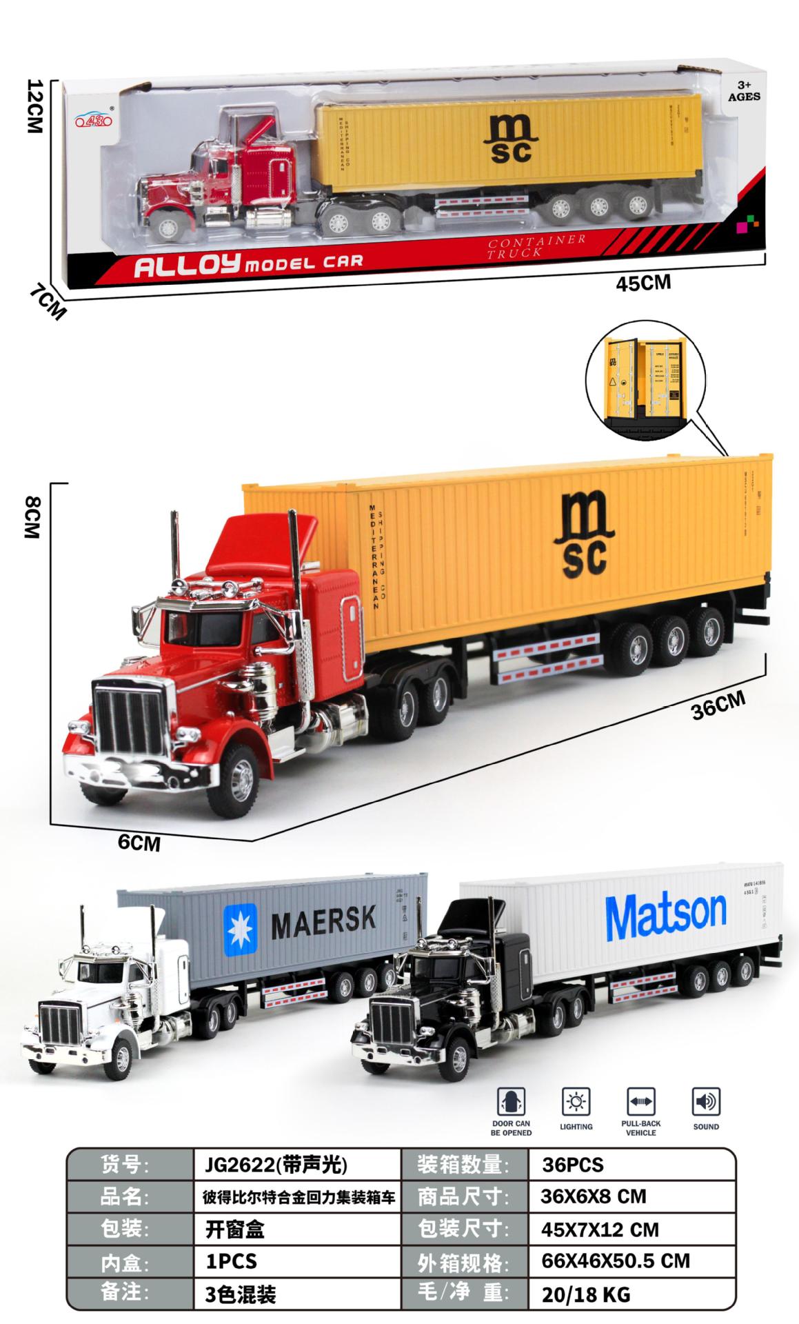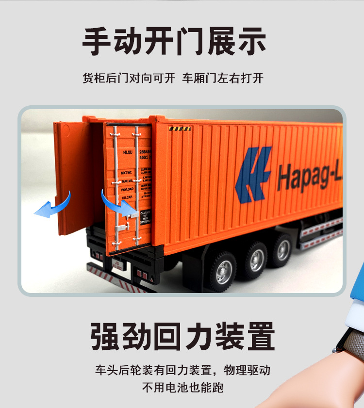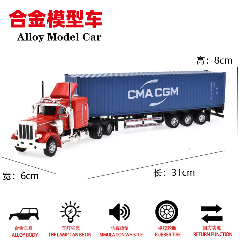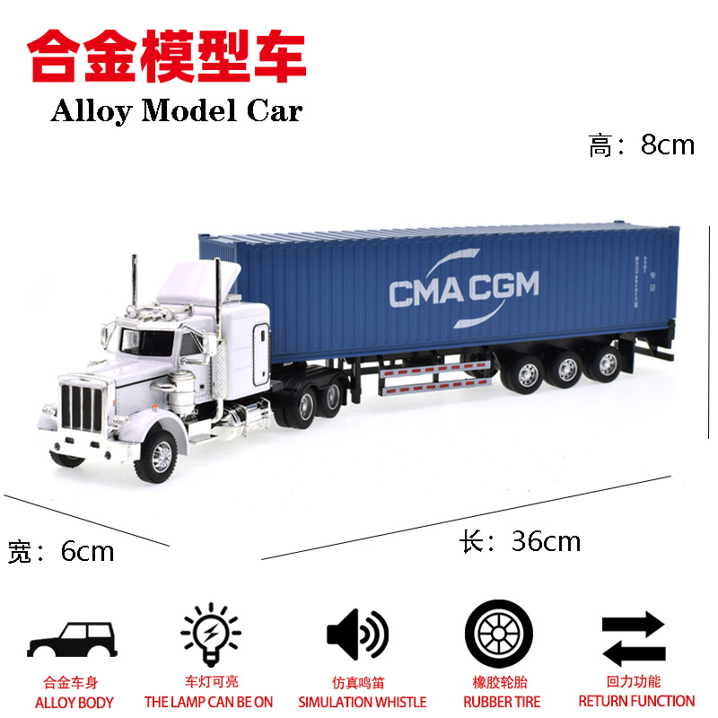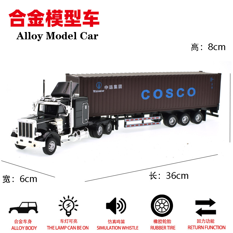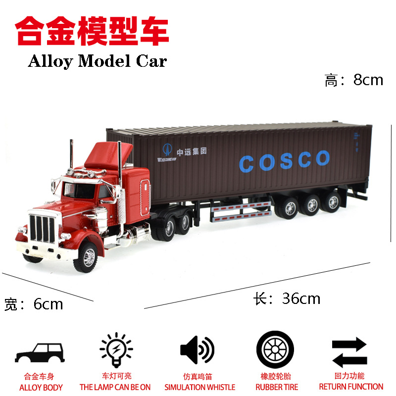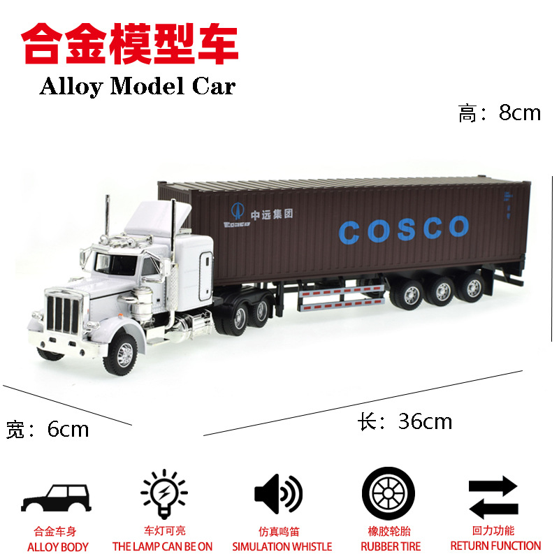 合金车头+合金集装箱货柜车加上包装盒大约为816克左右,合金车头+塑料集装箱货柜车加上包装盒大约为495克左右,产品为英文开窗盒包装,支持定制LOGO,数量1000只起,具体请联系客服。