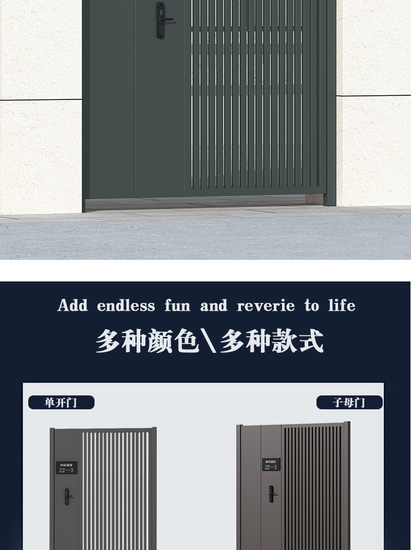스테인레스 스틸 안뜰 문 알루미늄 합금 단일 및 이중 문 루버 문 B&B 입구 문 정원 빌라 야외 이중 문