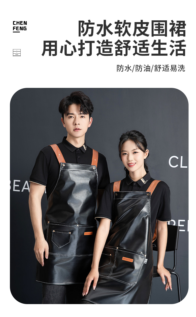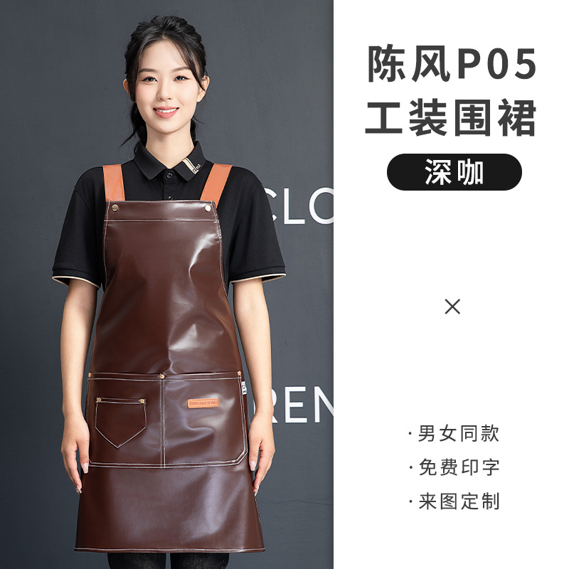 PU 부드러운 가죽 앞치마 맞춤형 인쇄 여성 케이터링 수산물 매점 주방 슈퍼마켓 방수 방오 가죽 배치