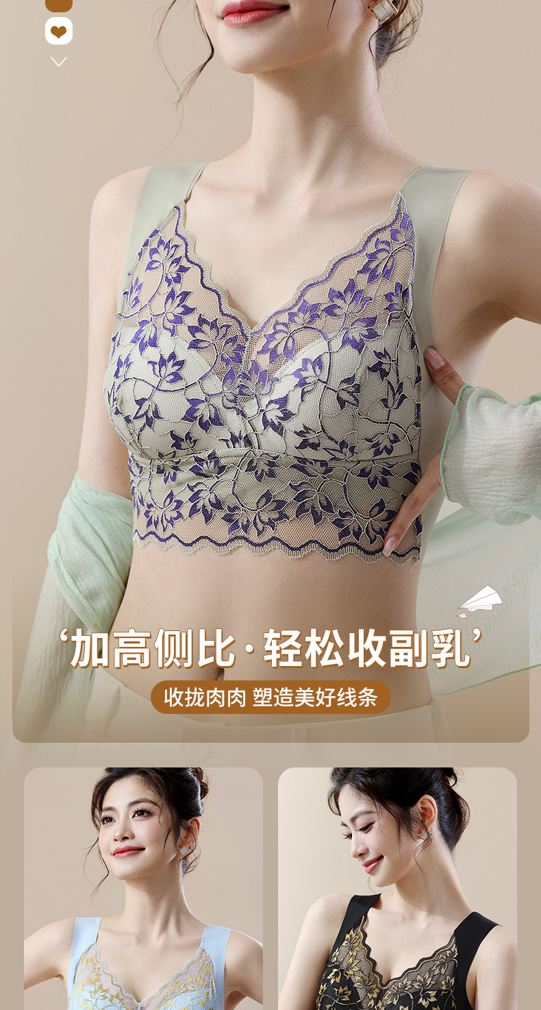 새로운 스타일의 레이스 편안한 무봉제 섹시한 푸시업 여성 속옷 푸시업 사이드 컬렉션 대형 브라스토어 가기