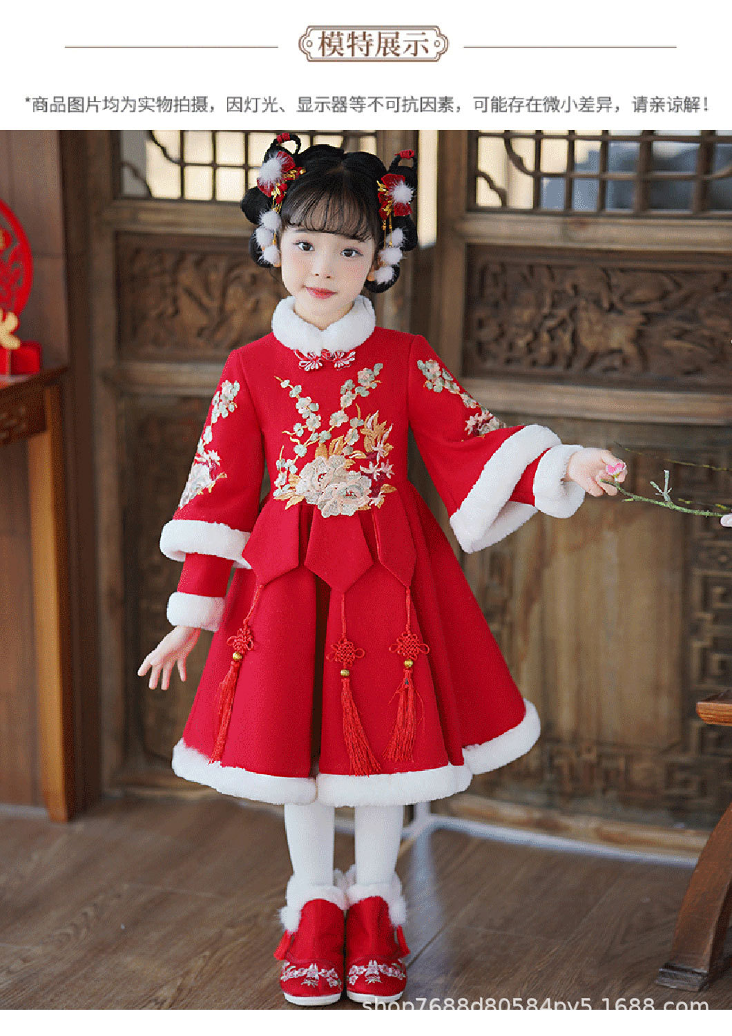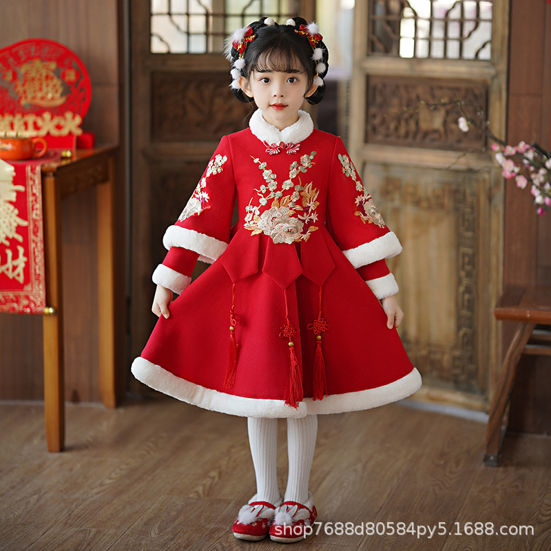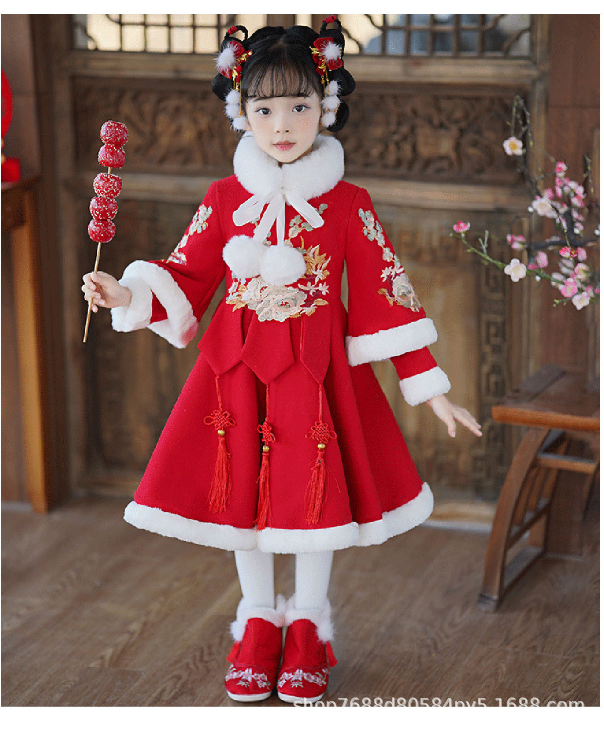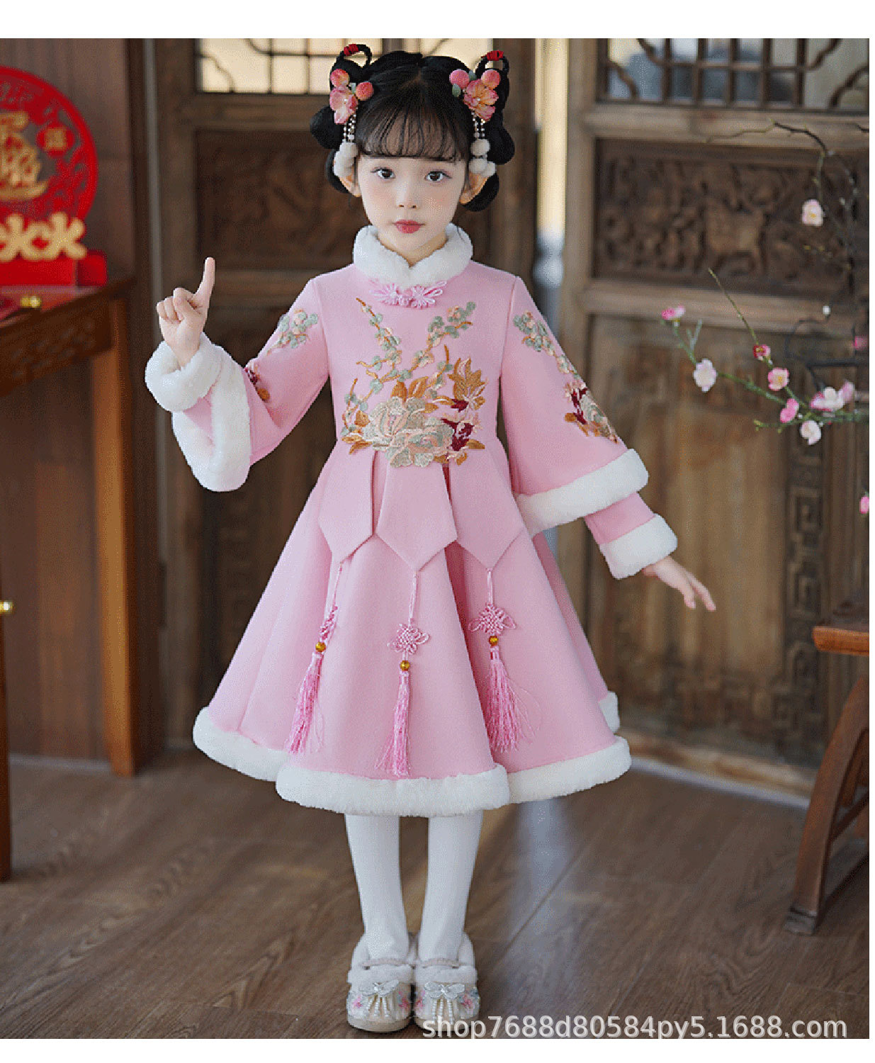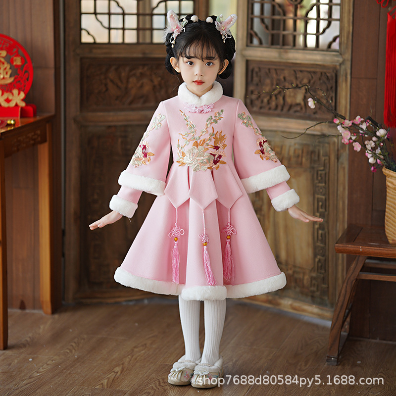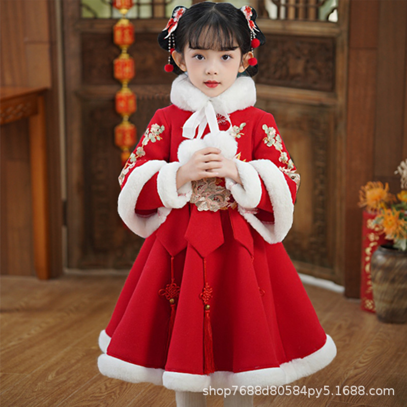 여아용 한복 플러스 벨벳 새해맞이 의류, 겨울 두꺼운 중국식 어린이 고대 의상 당나라 정장, 겨울 새 스타일 한복스토어 가기