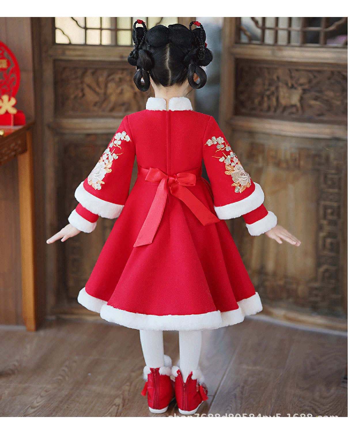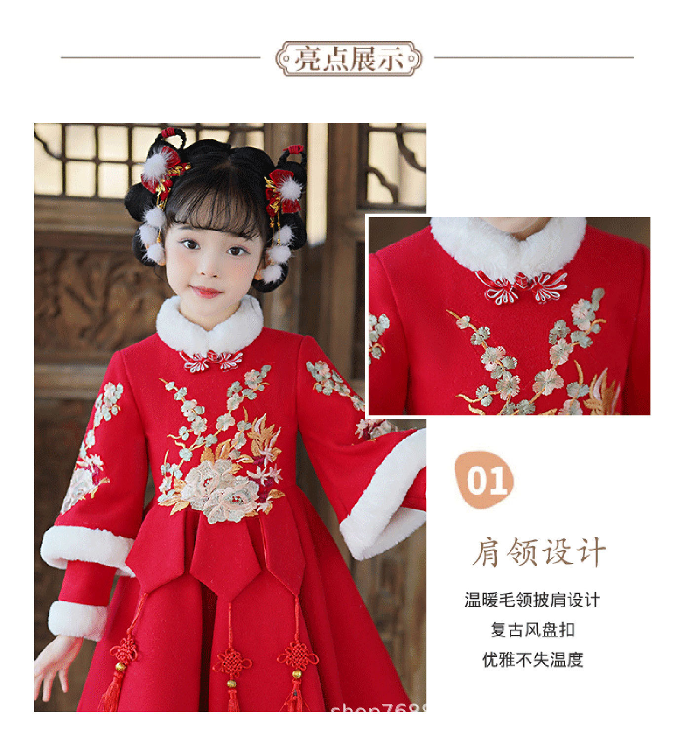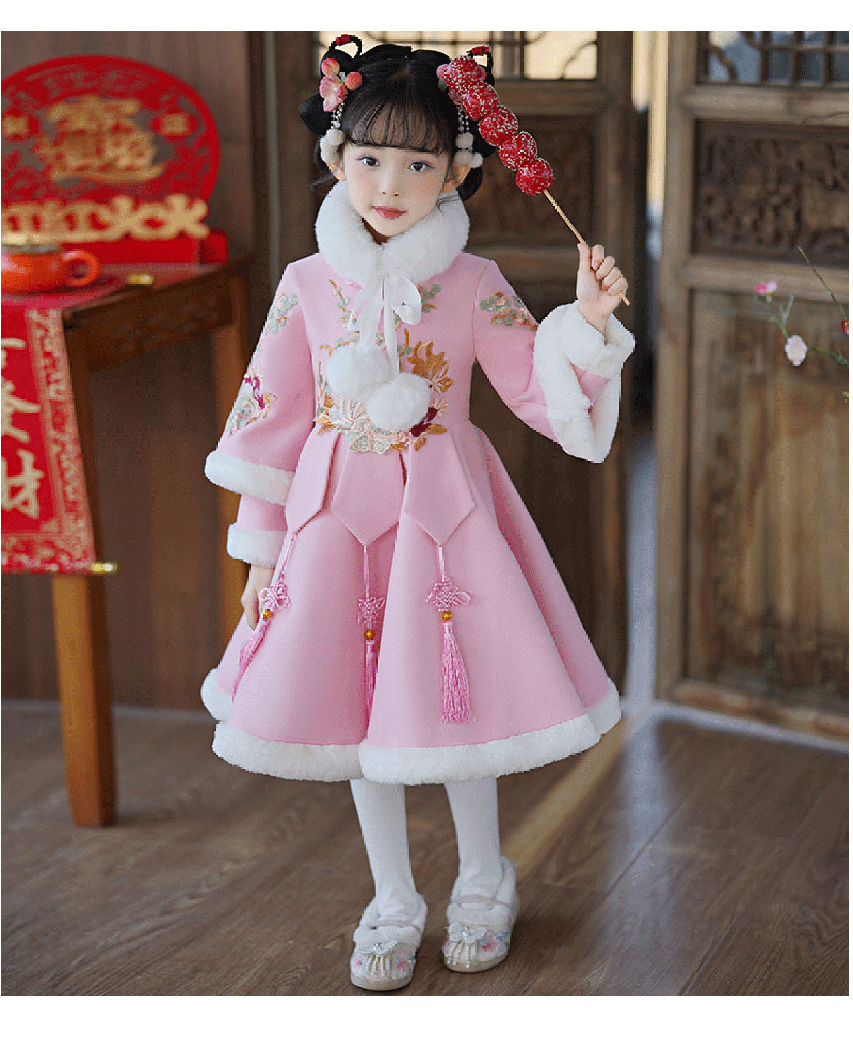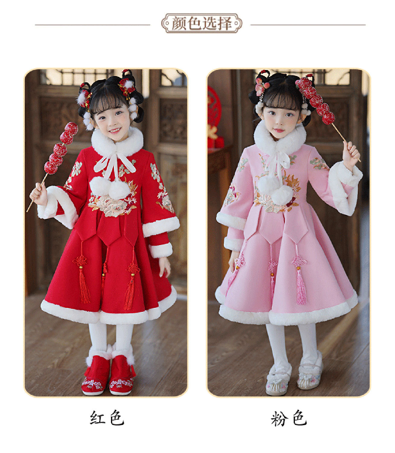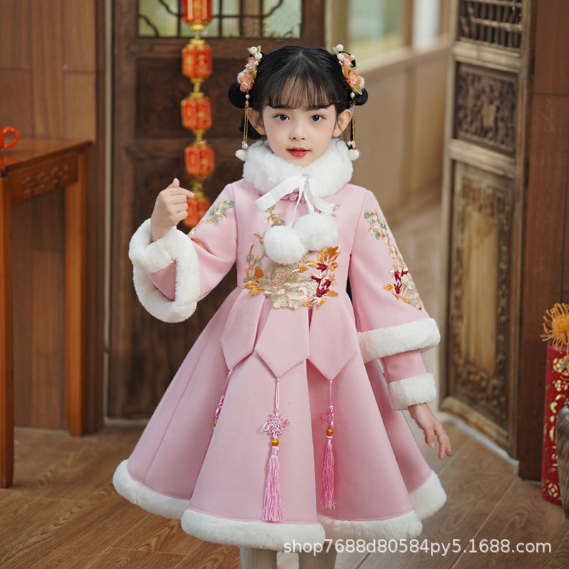 여아용 한복 플러스 벨벳 새해맞이 의류, 겨울 두꺼운 중국식 어린이 고대 의상 당나라 정장, 겨울 새 스타일 한복스토어 가기