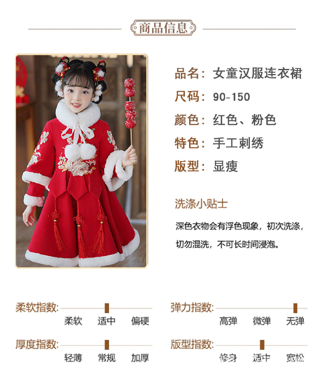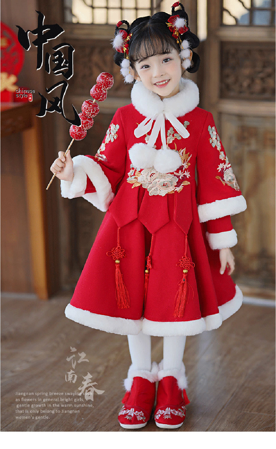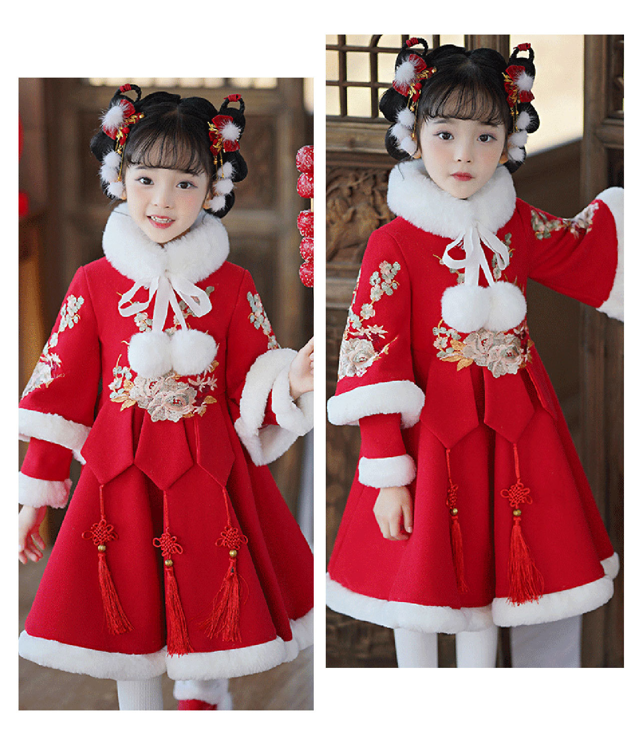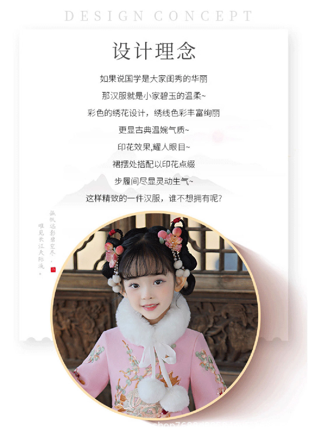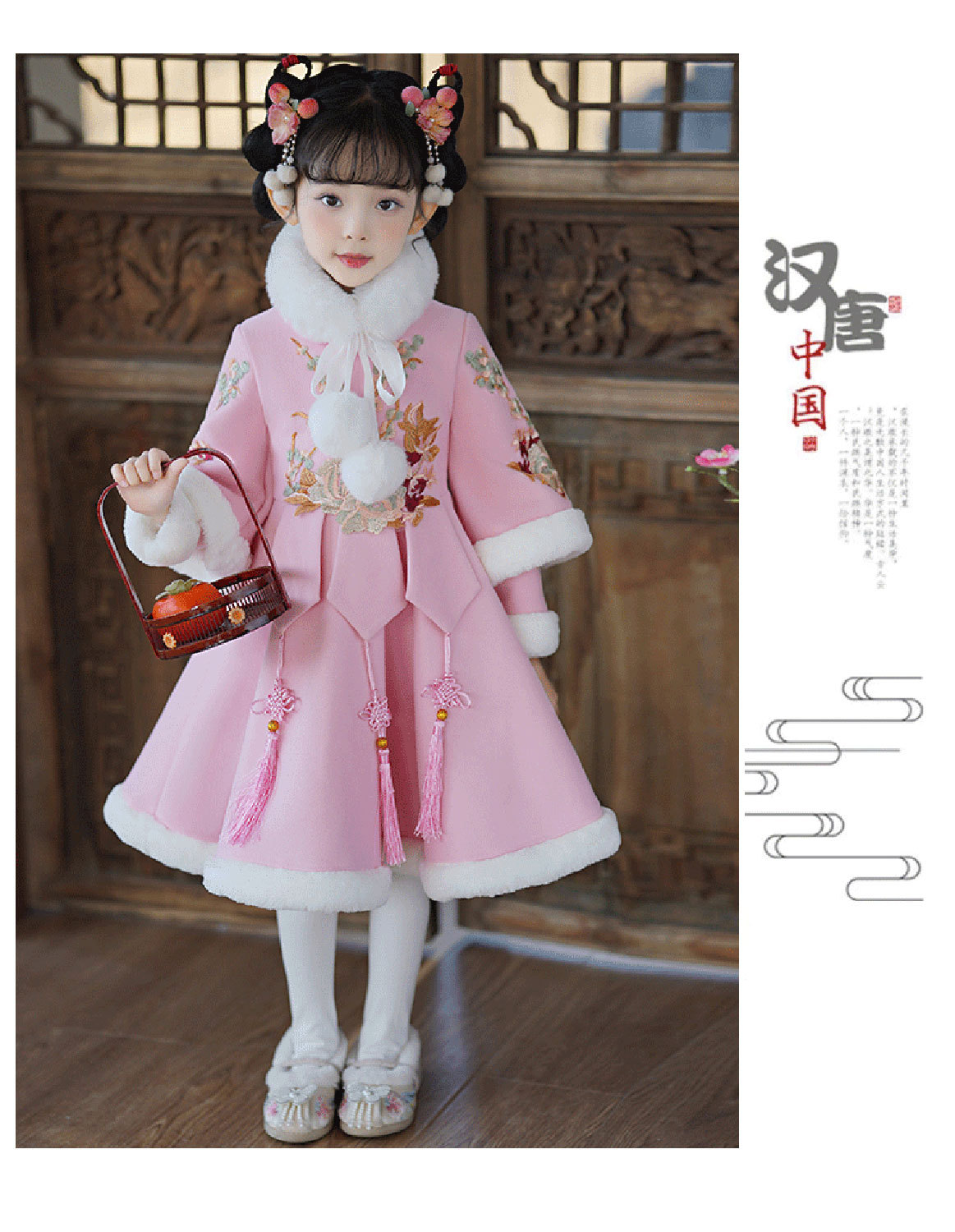 여아용 한복 플러스 벨벳 새해맞이 의류, 겨울 두꺼운 중국식 어린이 고대 의상 당나라 정장, 겨울 새 스타일 한복스토어 가기