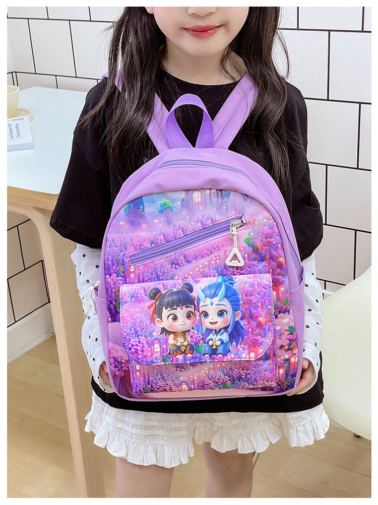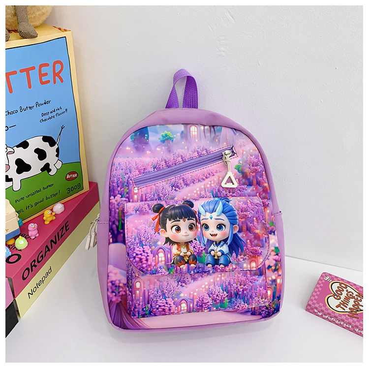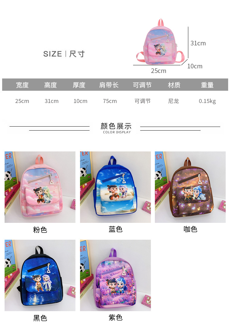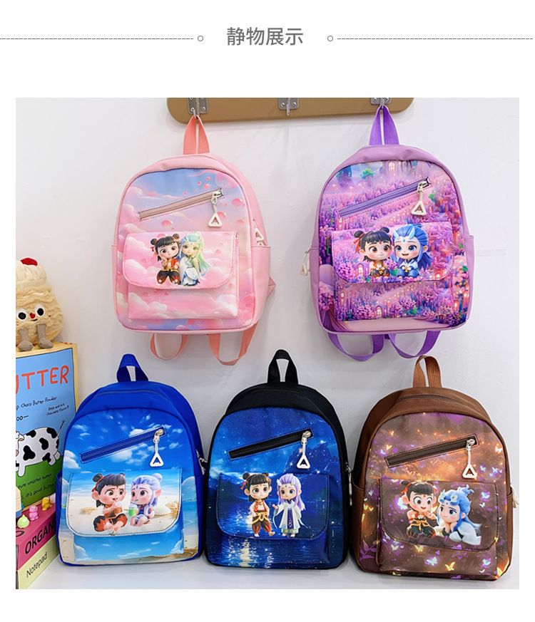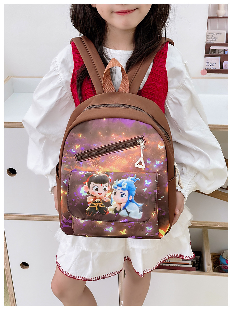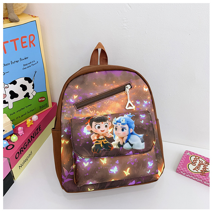 만화 Nezha 어린이 가방 2025 새로운 남성과 여성의 아기 동전 지갑 캐주얼 만화 인쇄 경량 배낭 유행스토어 가기