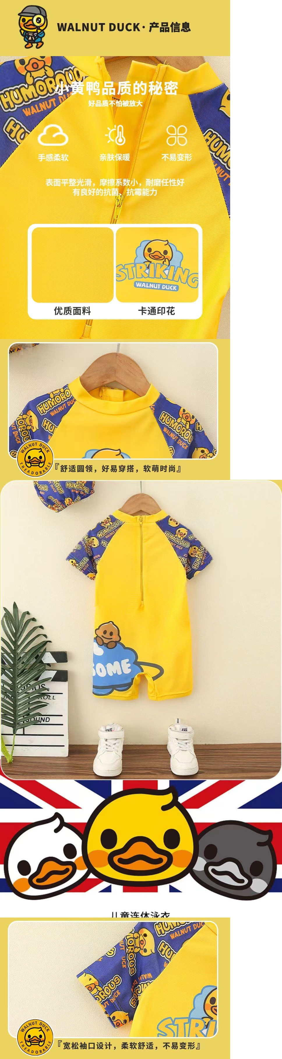 작은 노란색 오리 아동 의류 소년 수영복 여름 어린이 원피스 수영복 아기 수영복 소년 태양 보호 속건성 양복스토어 가기