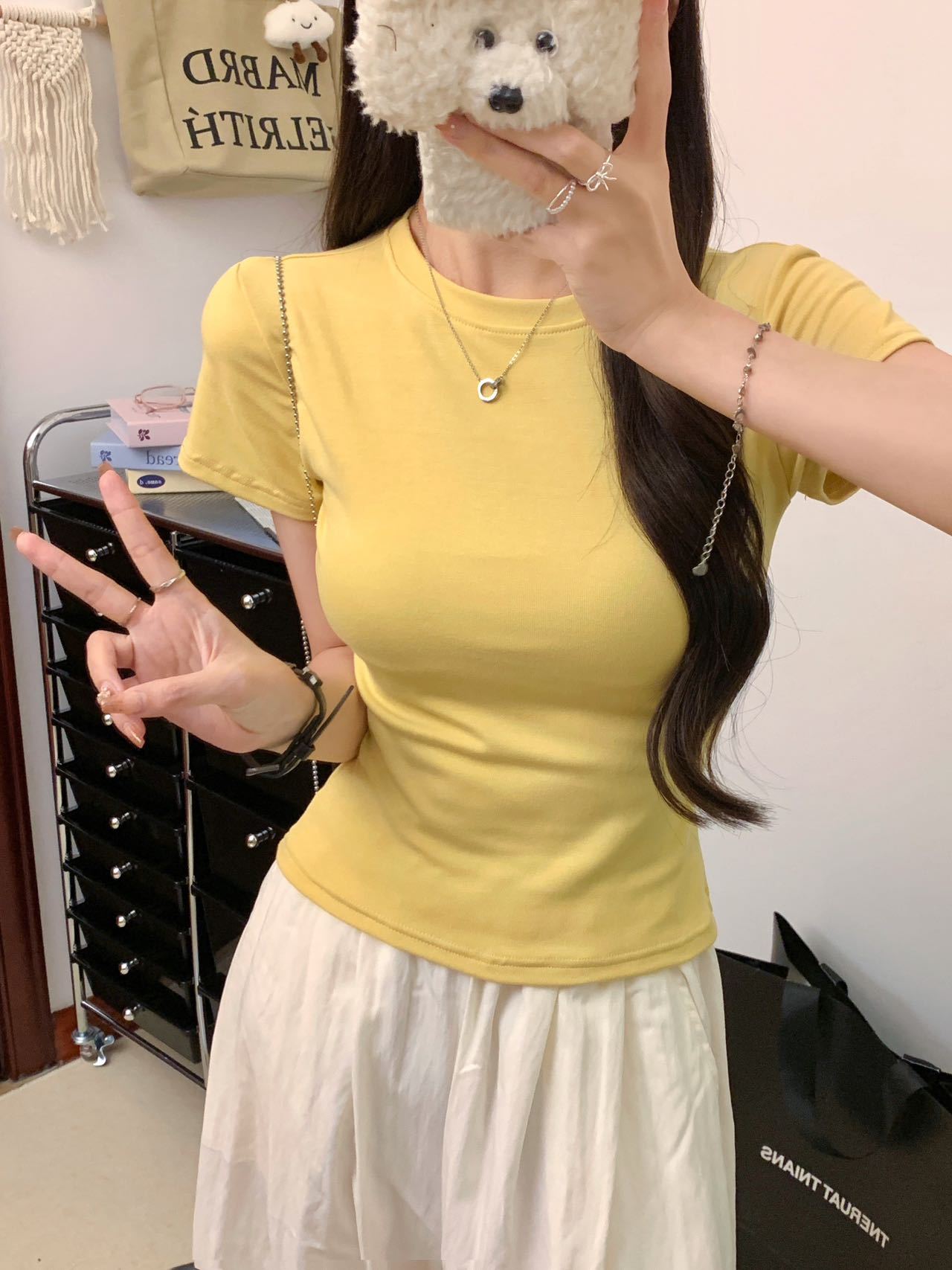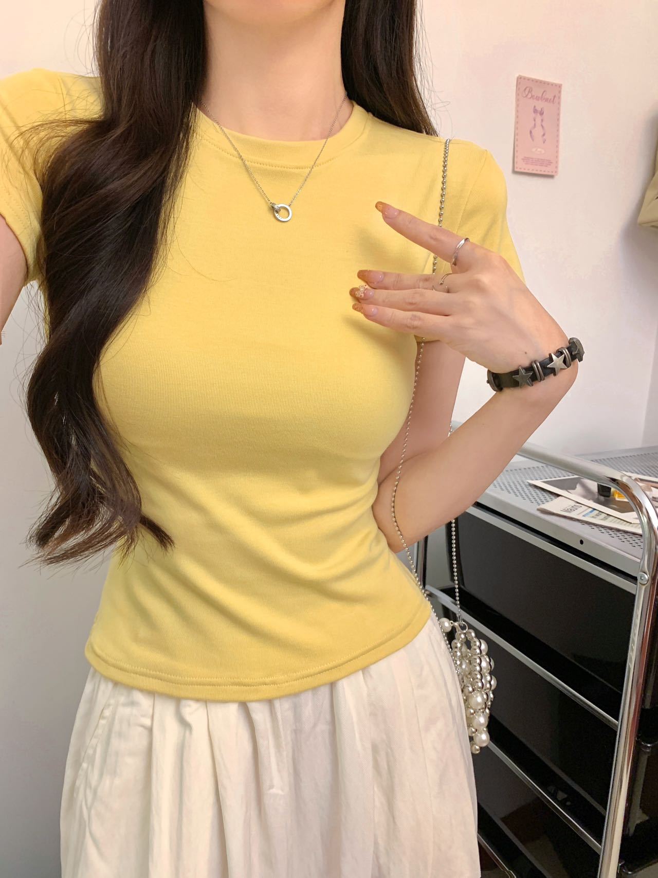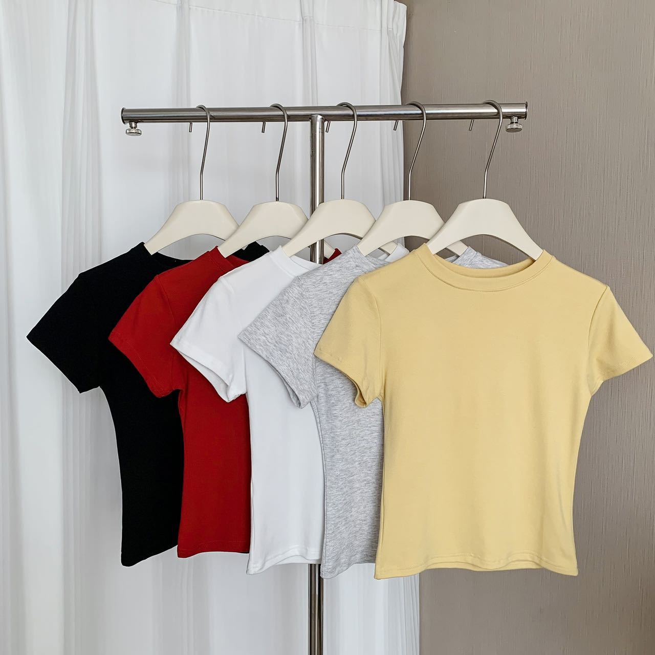 남성용 코튼 크루 넥 어깨 반팔 티셔츠 여성용 짧은 단색 타이트 허리 슬리밍 기본 한국 캐주얼베이스 셔츠 탑스토어 가기