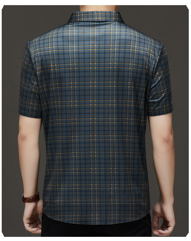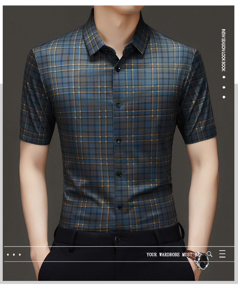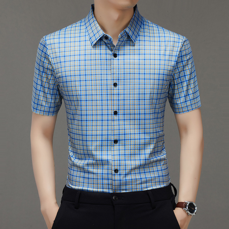 여름 인기 심리스 체크 무늬 셔츠 반팔 남성 캐주얼 패션 다용도 통기성 노다림질 셔츠 도매스토어 가기