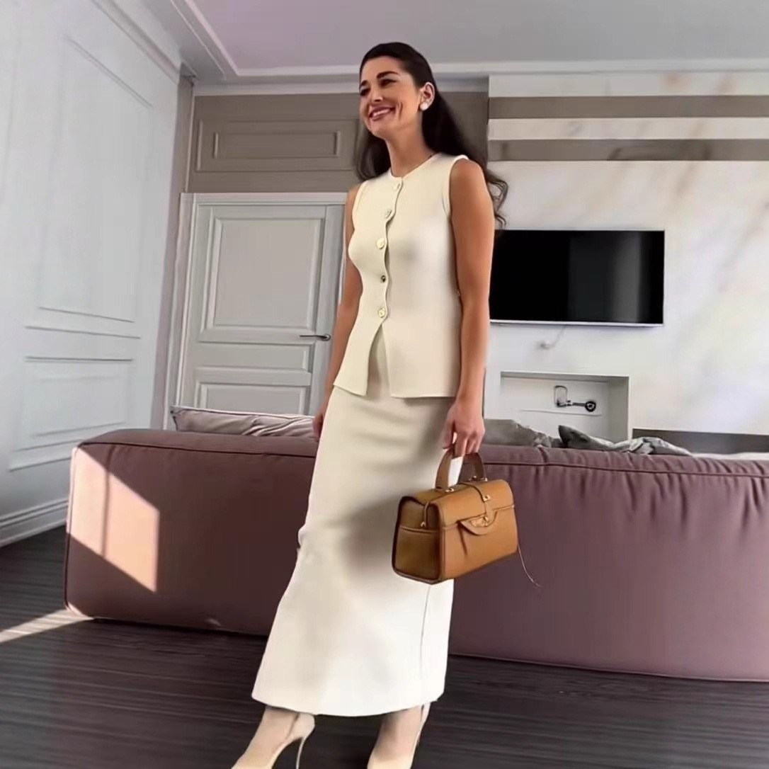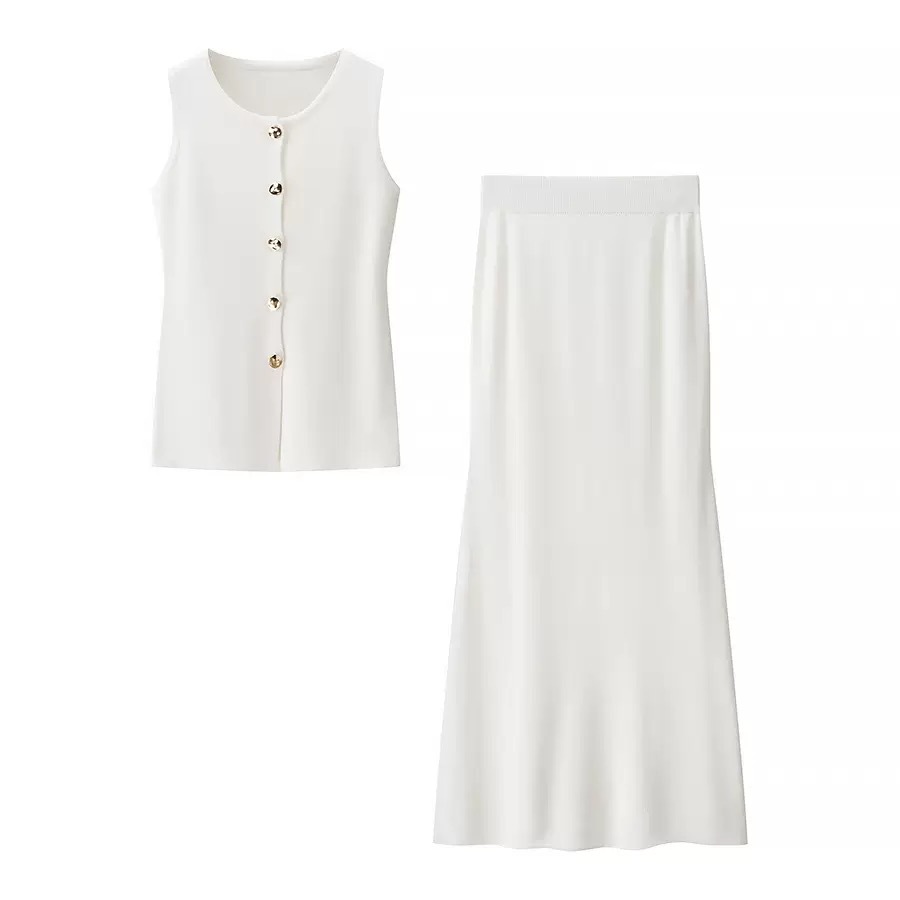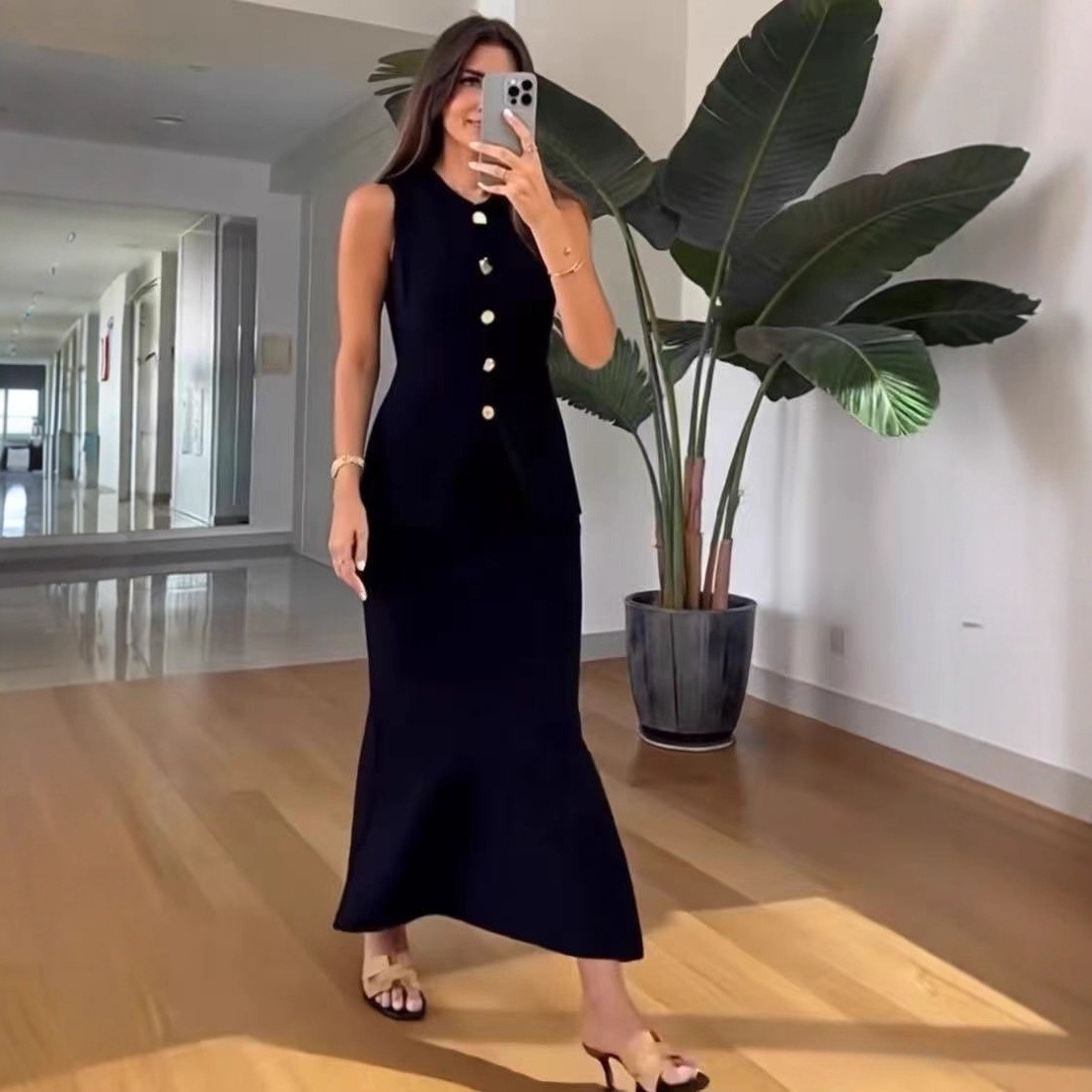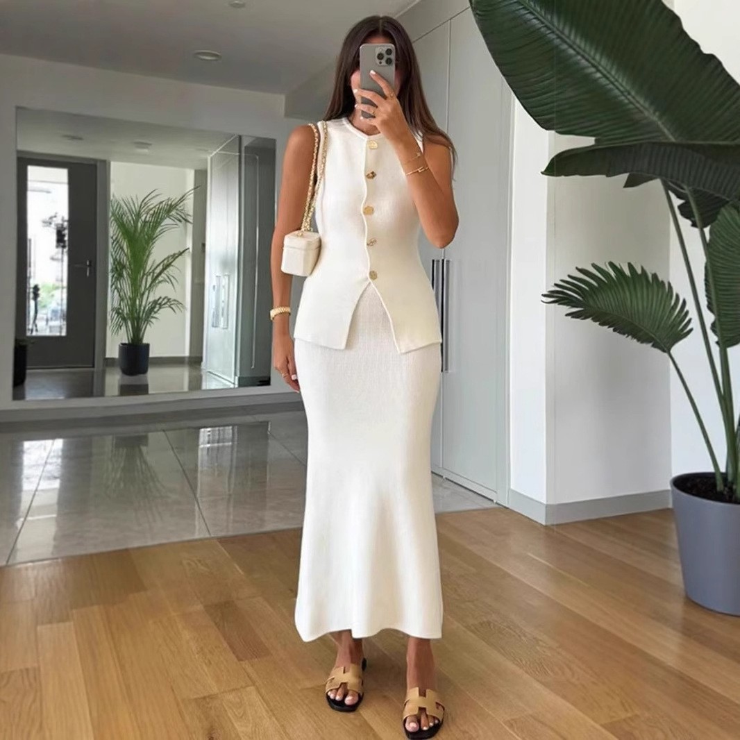 국경 간 대외 무역 여름 여성 패션 슬림 핏 조끼 솔리드 컬러 슬림 핏 힙합 투피스 니트 원피스 세트 여성